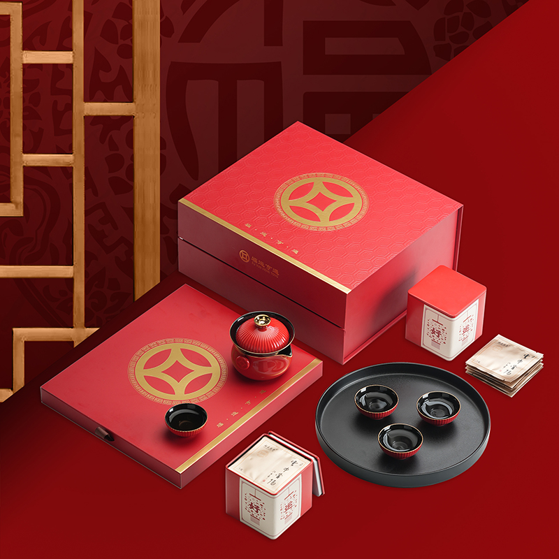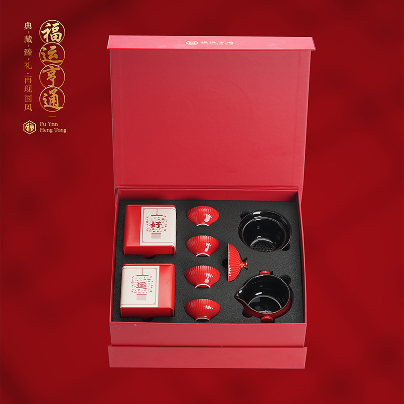 包装规格:32*27.5*13.5cm 定制:产品包装均可定制logo 材质:高白瓷 颜色:故宫红 组件:一壶四杯+茶盘+茶叶+精品礼盒