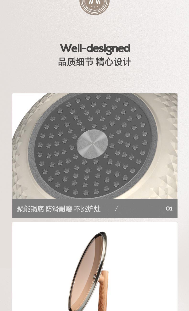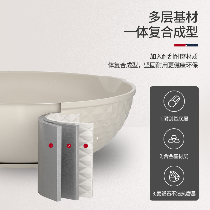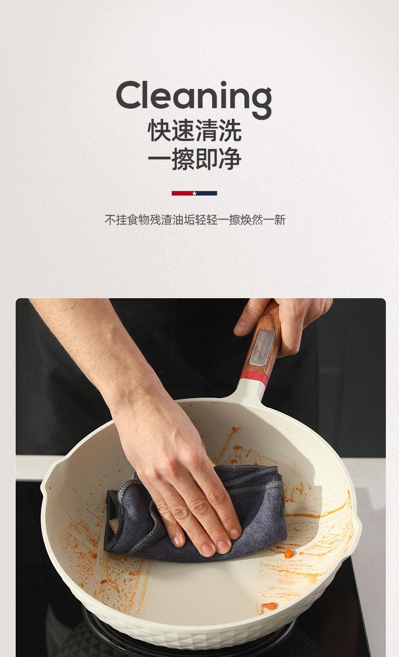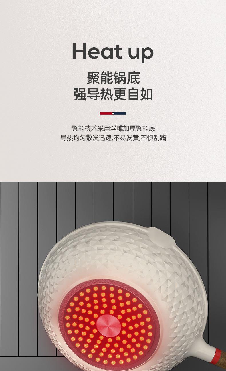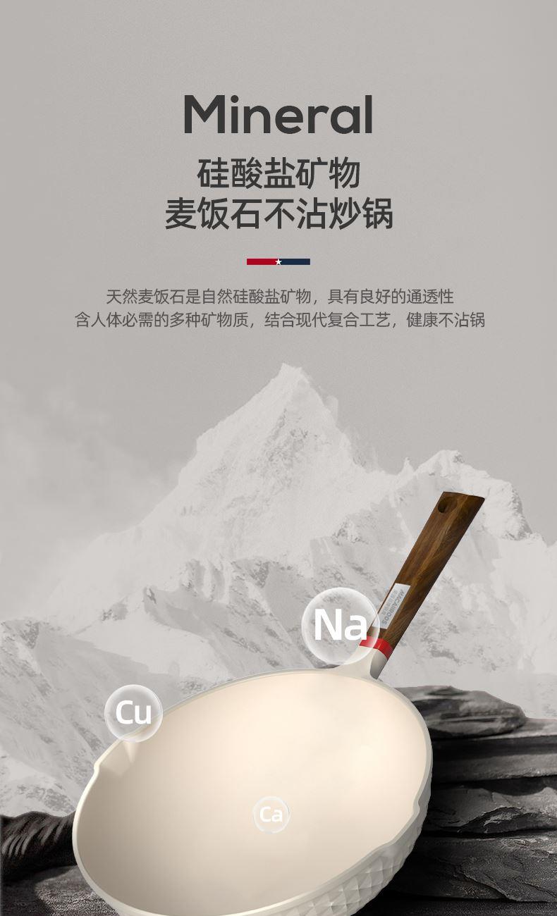 煎炒不粘麦饭石与不粘工艺结合,健康不粘易清洁;
