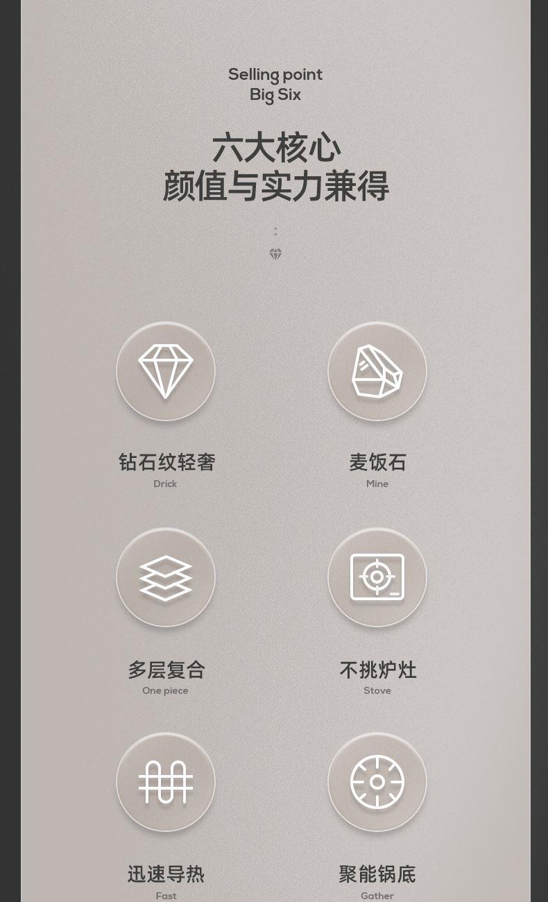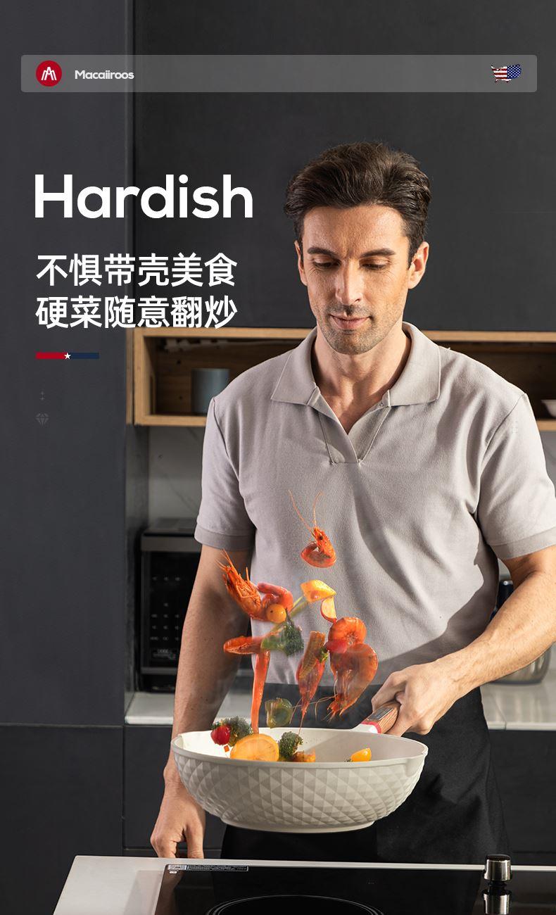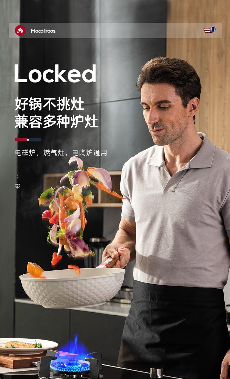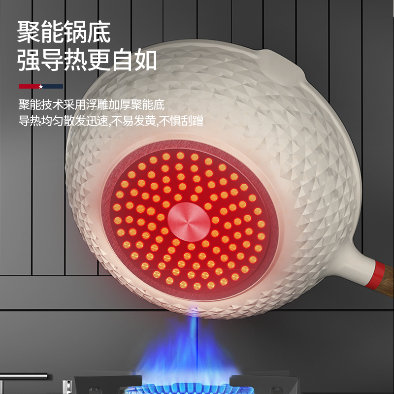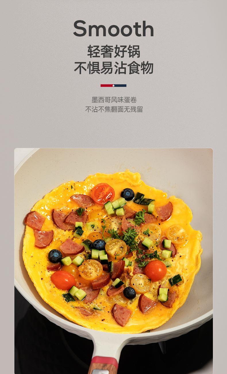 煎炒不粘麦饭石与不粘工艺结合,健康不粘易清洁;