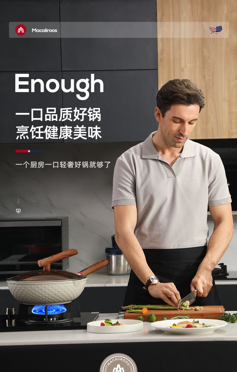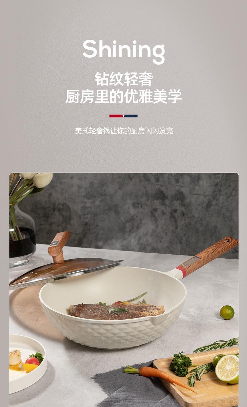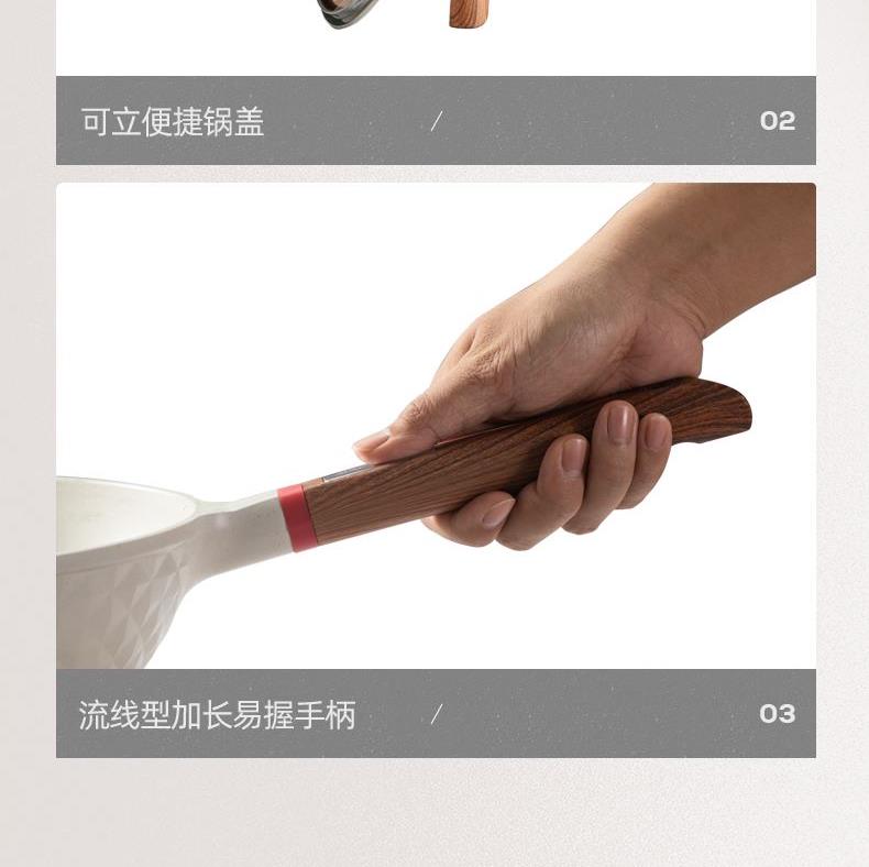 轻量设计轻量锅身单手颠锅炒菜更轻松,举锅盛菜不费力,可立锅盖不占地方;