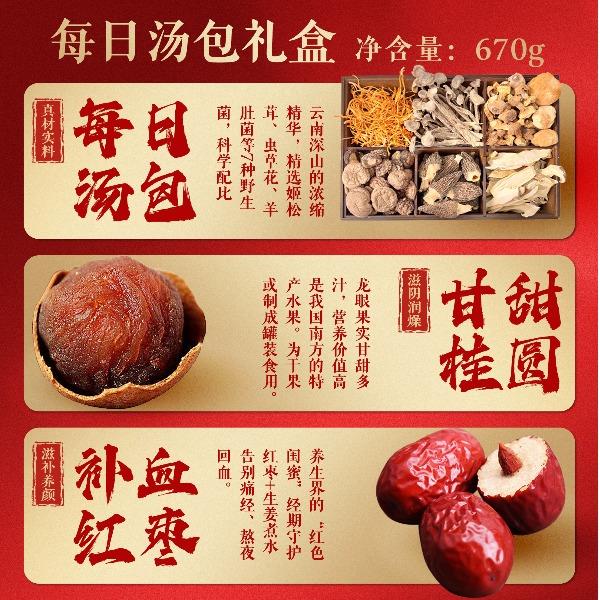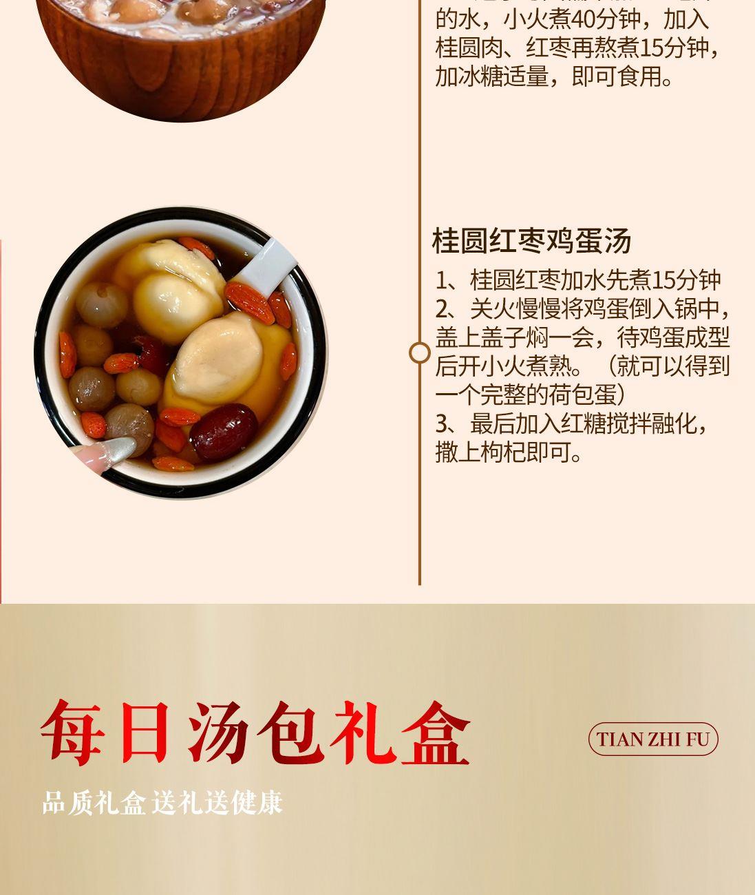 配置:七珍汤包60g*4、桂圆干180g、红枣250g 商品规格:778g/盒 产品尺寸:375*300*15mm 保质期:12个月 京东自营旗舰店销量好评1w+,源头工厂,支持项目授权,项目保护。