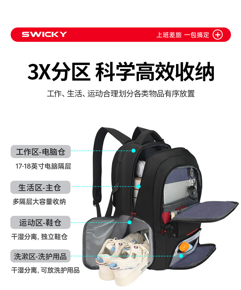 SWICKY双肩包88179黑色80L带鞋仓+干湿分离黑色