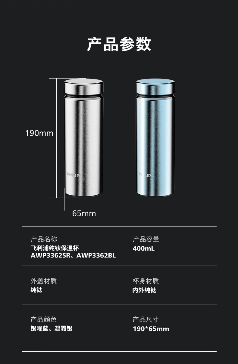 飞利浦(PHILIPS)纯钛保温杯AWP3362