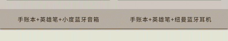 1.注:商城报价对应首张主图款式! 2.其他套装参考细节图,费用另计! 3.咨询下单请备注好产品信息! 4.手账本+英雄笔+纽曼蓝牙耳机