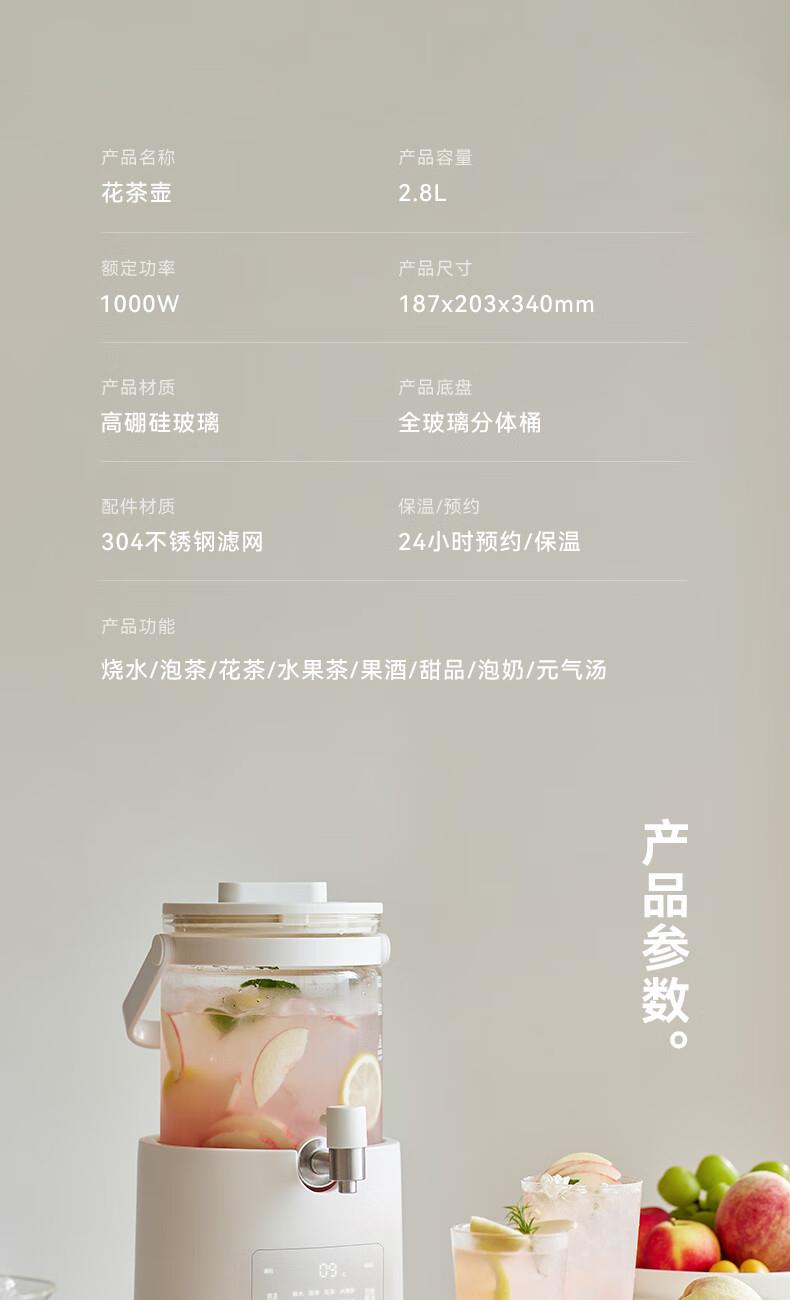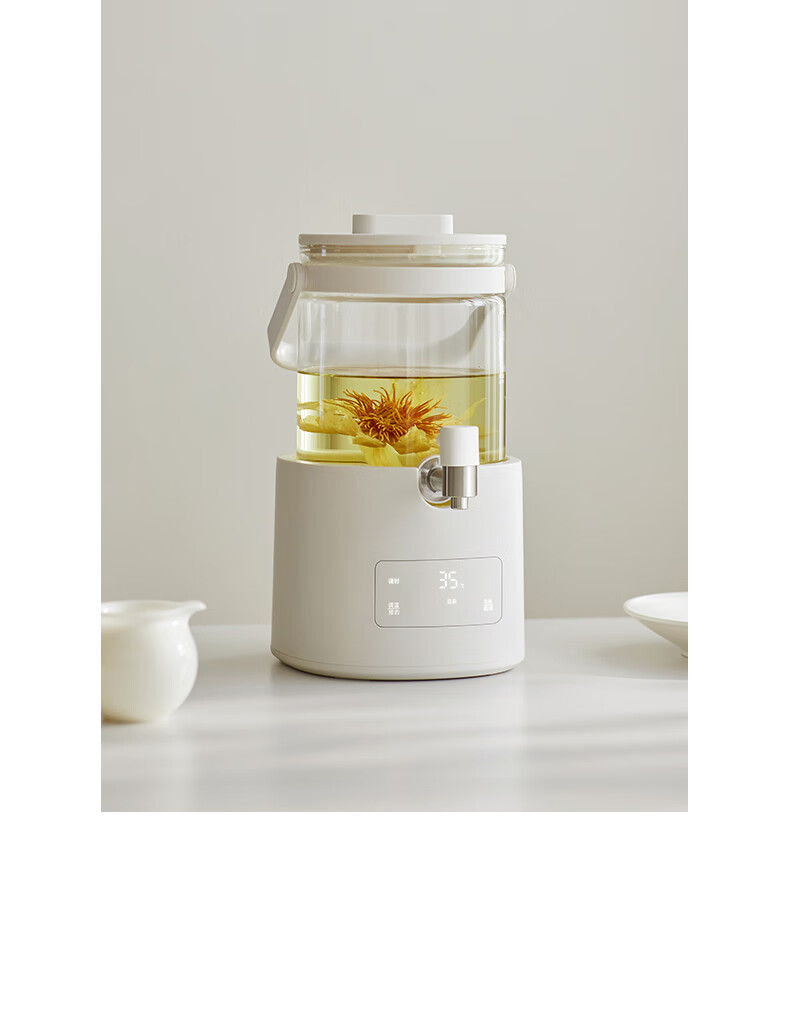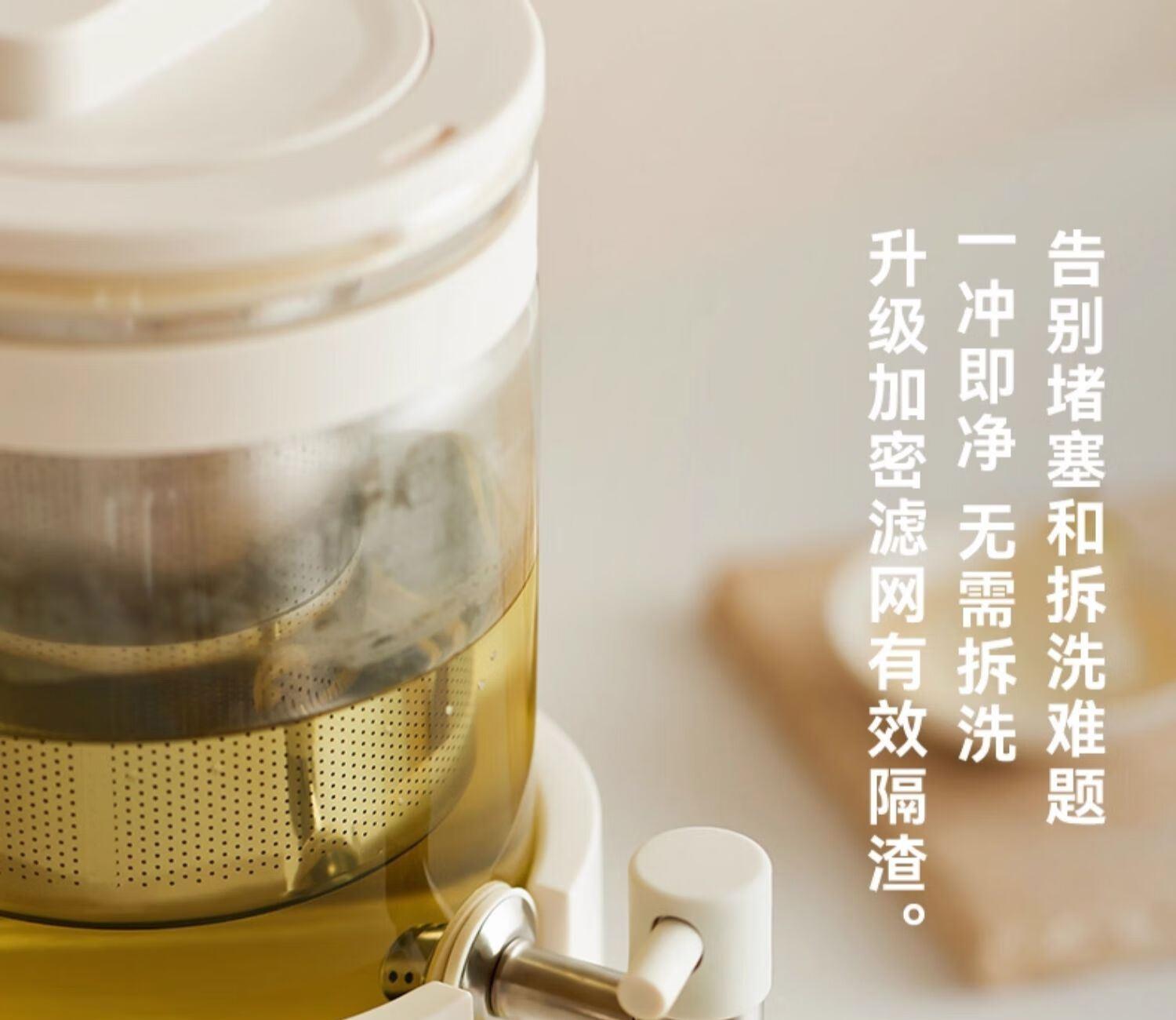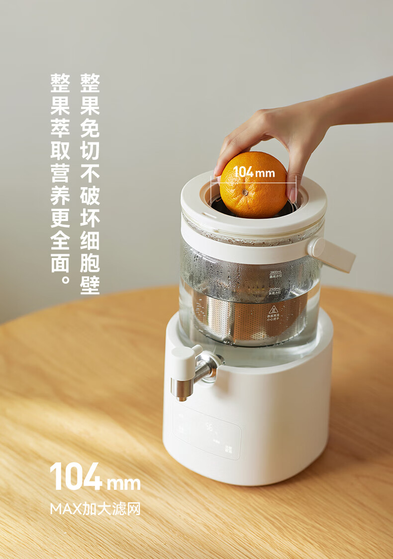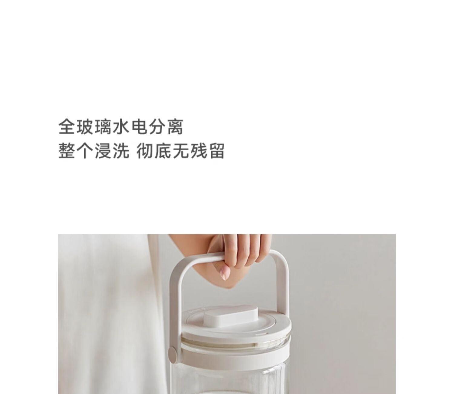 颜色:陶白色 重量:3.5kg 容量:2.8L 额定功率:1000W 产品尺寸:187*203*340mm 包装尺寸:442*250*259mm 条码 : 6977735713120 1. 0涂层全玻璃,无缝一体式壶身 2. 104mmMAX加大304不锈钢滤网 3. 盖中盖设计,中途加料更方便 4. 1.8mm加厚高硼硅玻璃 5. 分体式设计,免提取水 ,一拧即出 6. 35-85°C 11段调温,24H持久保温