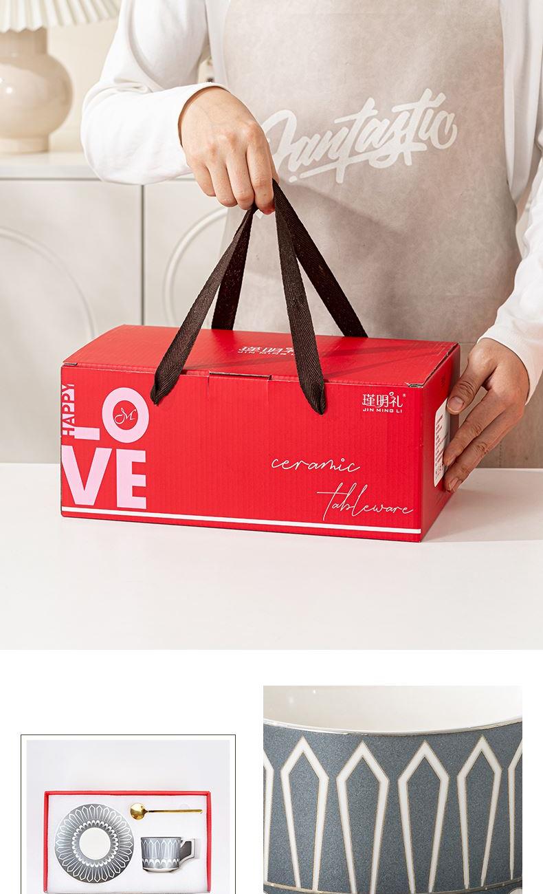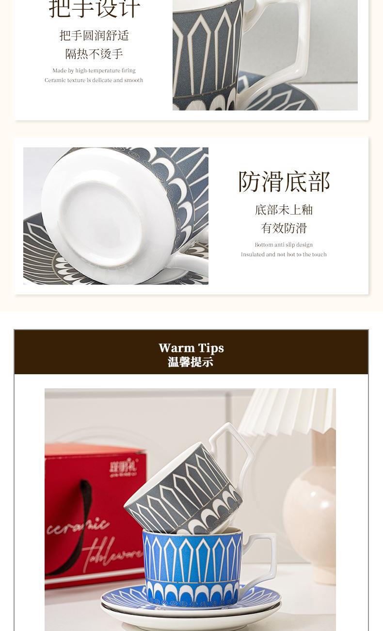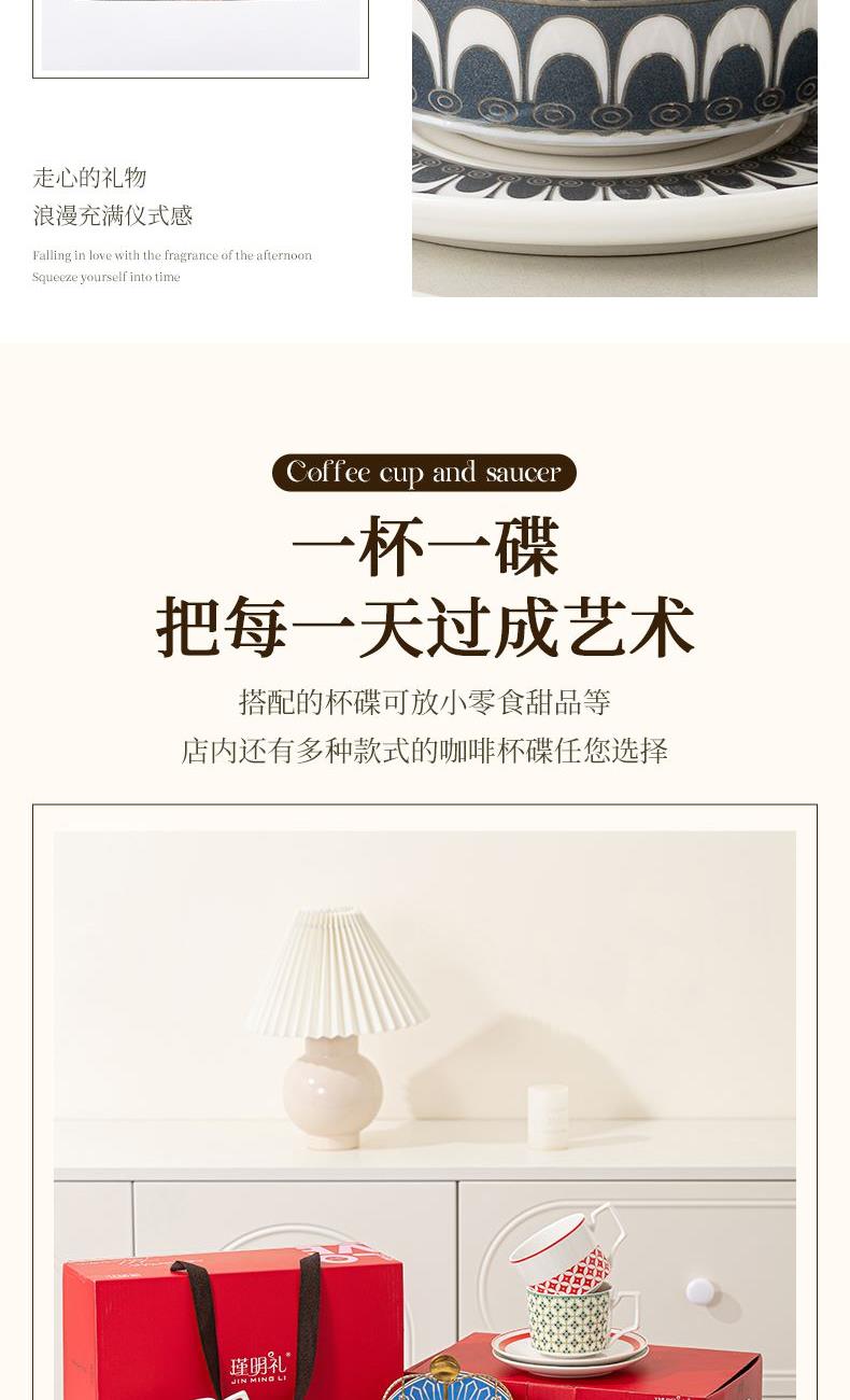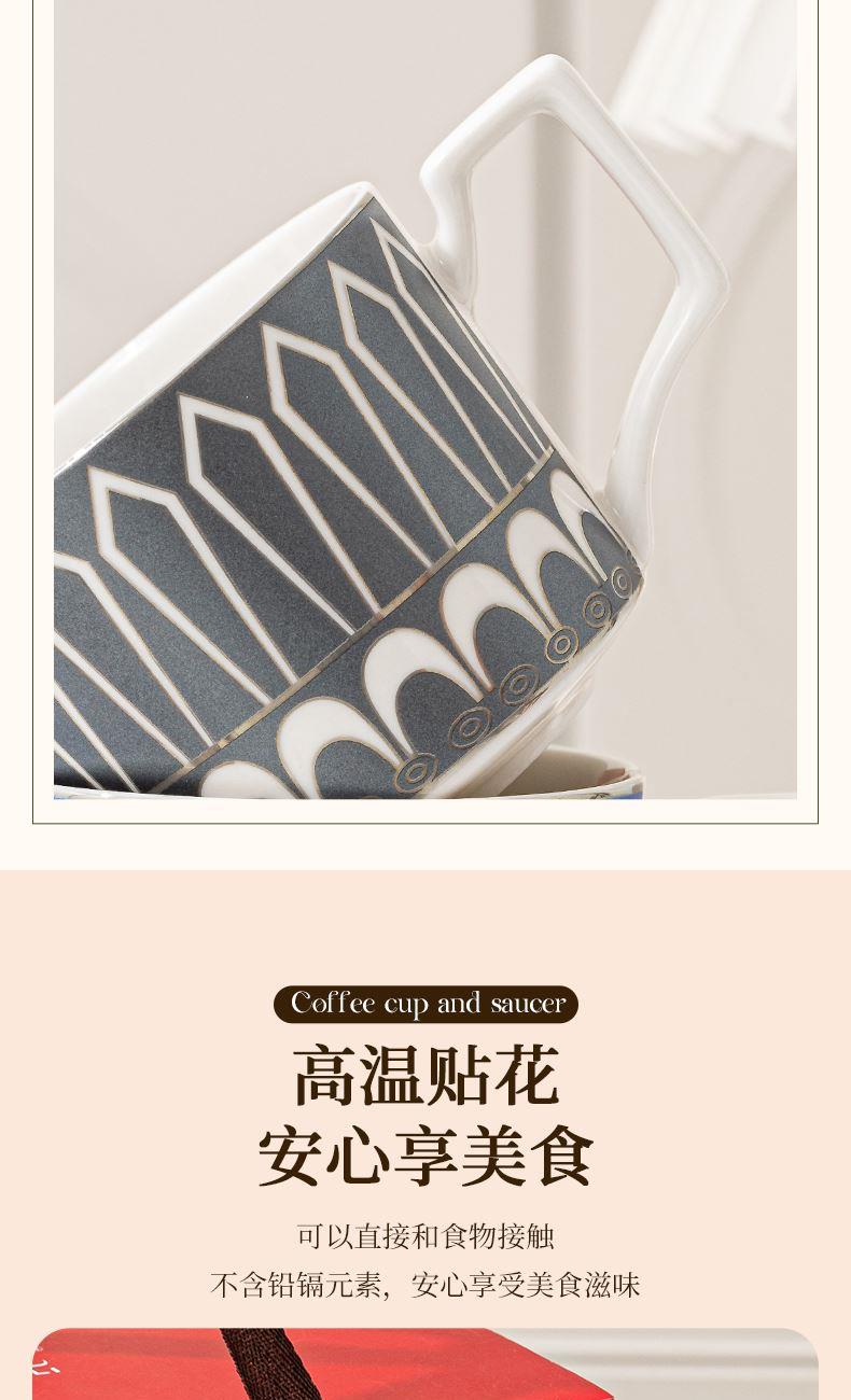 瑾明礼-银跃灰-咖啡杯碟-1杯1碟1勺 - 产品组成:整套=1杯1碟1勺+彩盒 产品材质:新骨瓷 产品规格:咖啡杯=口径8.5cm,高度6.8cm,容量240ml;碟=直径15cm,高2cm;金勺=长度13cm; 彩盒尺寸:30.5*18.5*13cm 产品毛重:0.8kg 整箱毛重:18kg 外箱尺寸:63*39*68cm - 线条和几何形状的设计往往带有一种抽象艺术的风格,能够满足消费者对于时尚和艺术的追求。这种设计不仅适合现代家居环境,还能成为时尚人士展示个性的单品。