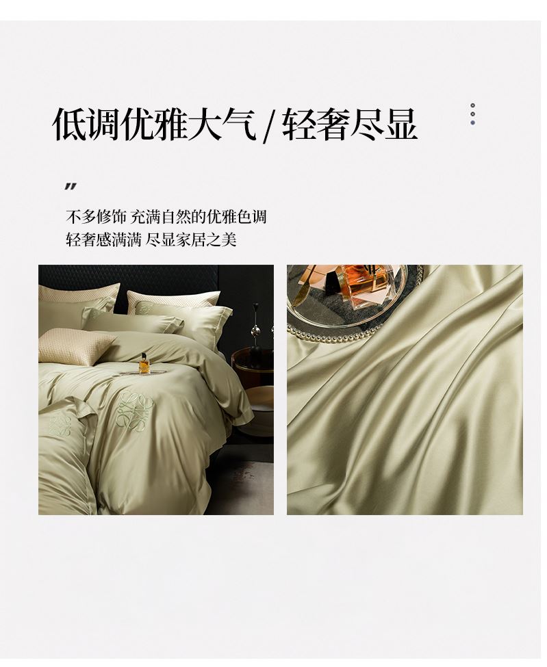 被套:200*230cm 床单:230*250cm 枕套:48*74cm*2 面料: 兰精天丝 产品包装:精美礼盒 产品特点: 兰精天丝面料似乎注定就为盛夏而生,清爽飘逸垂坠丝般的光泽具有湿气管理功能,可自然地吸收和释放人体湿气亲和肌肤,提供持久的舒适感受,持久柔软、抑制细菌滋生色泽稳定持久亮丽即使经过多次洗涤也不易褪色。