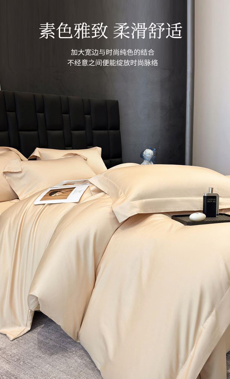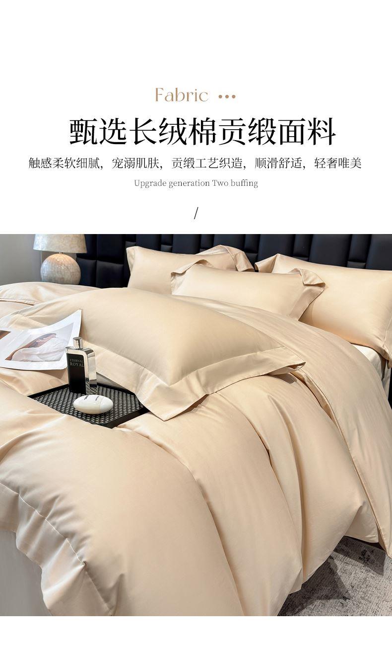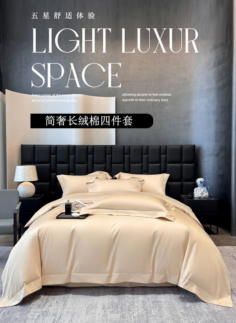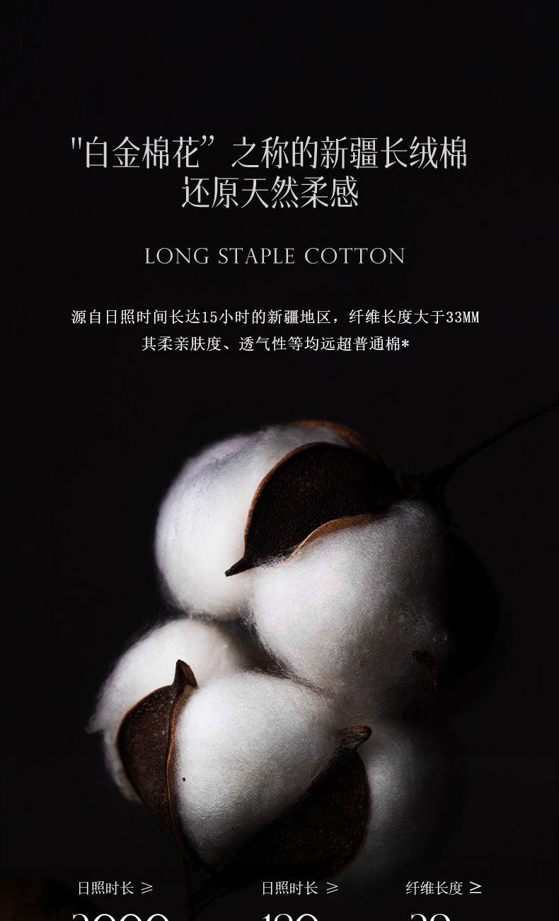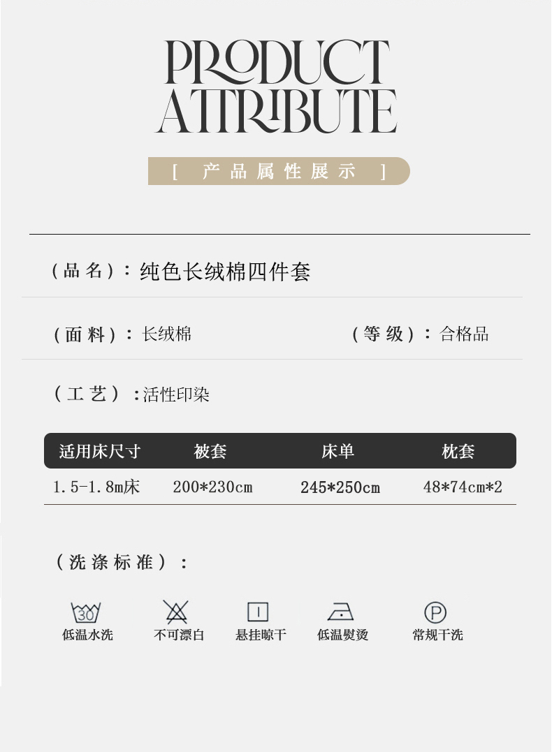 被套:200*230cm 床单:245*250cm 枕套:48*74cm*2 面料:长绒棉 产品包装:精美礼盒 包装尺寸:43.5*33*10cm 特点:长绒棉具备非常高的舒适度及“质感”,纤维柔长。具有丝绸般光滑、垂感好,面料色牢度高,久洗不褪色,耐磨耐用,抗皱性好,不易起球。