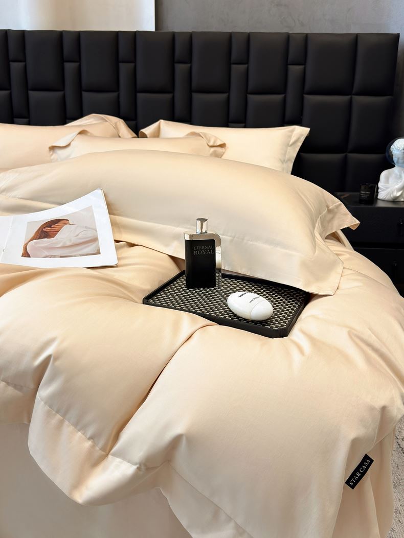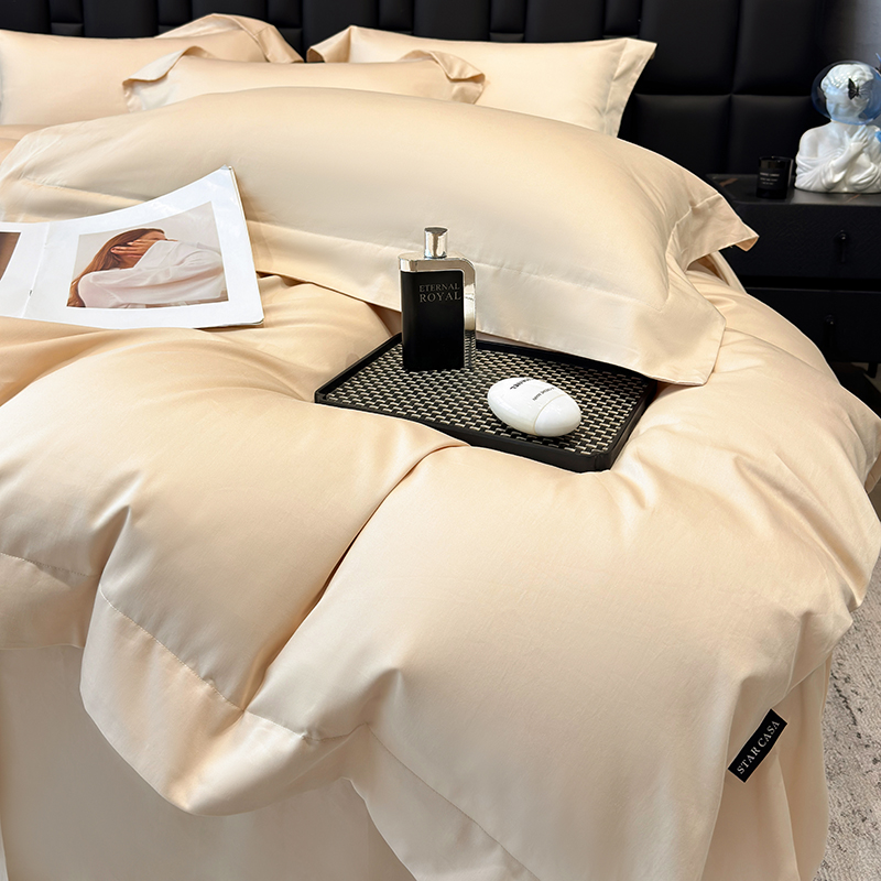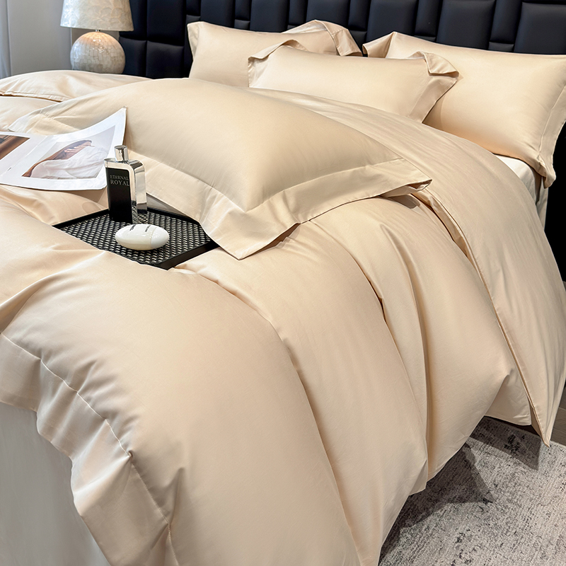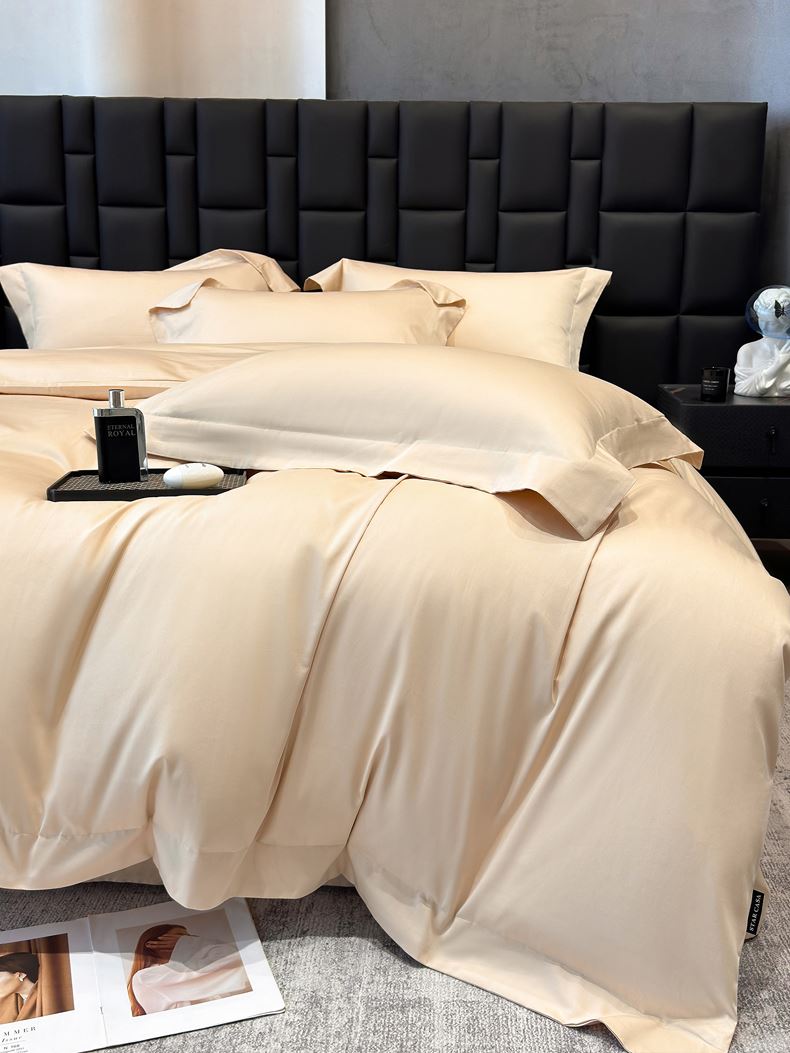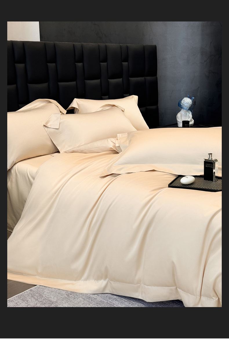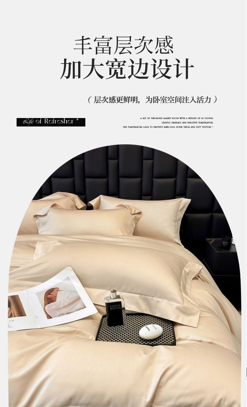 被套:200*230cm 床单:245*250cm 枕套:48*74cm*2 面料:长绒棉 产品包装:精美礼盒 包装尺寸:43.5*33*10cm 特点:长绒棉具备非常高的舒适度及“质感”,纤维柔长。具有丝绸般光滑、垂感好,面料色牢度高,久洗不褪色,耐磨耐用,抗皱性好,不易起球。