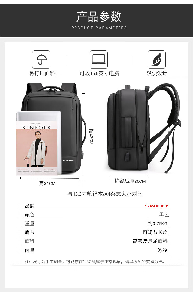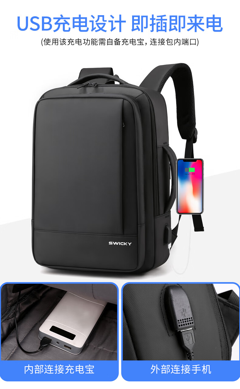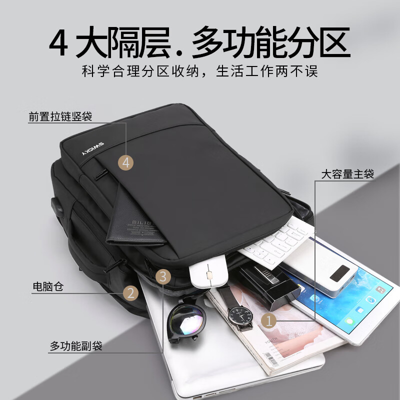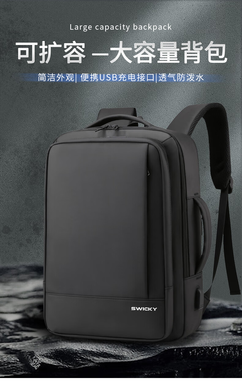 SWICKY瑞驰多功能休闲商务双肩包可扩容99002