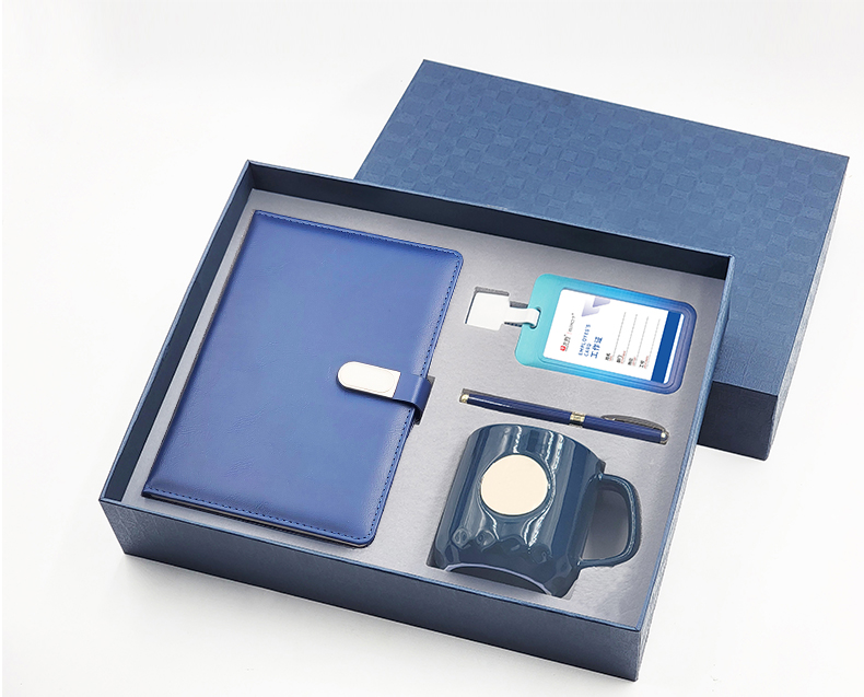 礼盒配置: 1、A5搭扣硬皮PU皮笔记本 2、挂绳工牌(110x68x5mm) 3、陶瓷马克杯(400ML) 4、金属烤漆签字笔 5、包装盒尺寸:350x270x106mm 6、手提袋尺寸:360x300x116mm 7、重量:20kg/箱