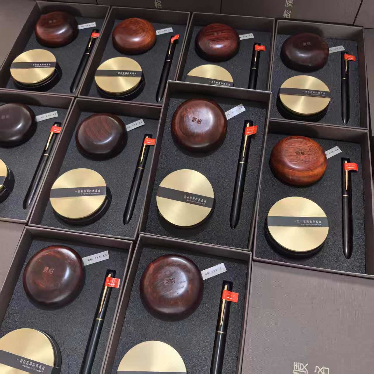 主要材质:檀木、黄铜 、老羊角 水笔尺寸:11*136MM 薰香尺寸:68*28MM 香罐尺寸:55*18MM(配香) 梳子尺寸:65*42MM 包装尺寸:195*130*48MM 合作:10套起可定制 说明:我司采用红木原木制作,无漆工作,匠心打磨,树木本身有细小纤维孔,属自然现象,用久可包浆,每一个产品的树纹都是不一样的。