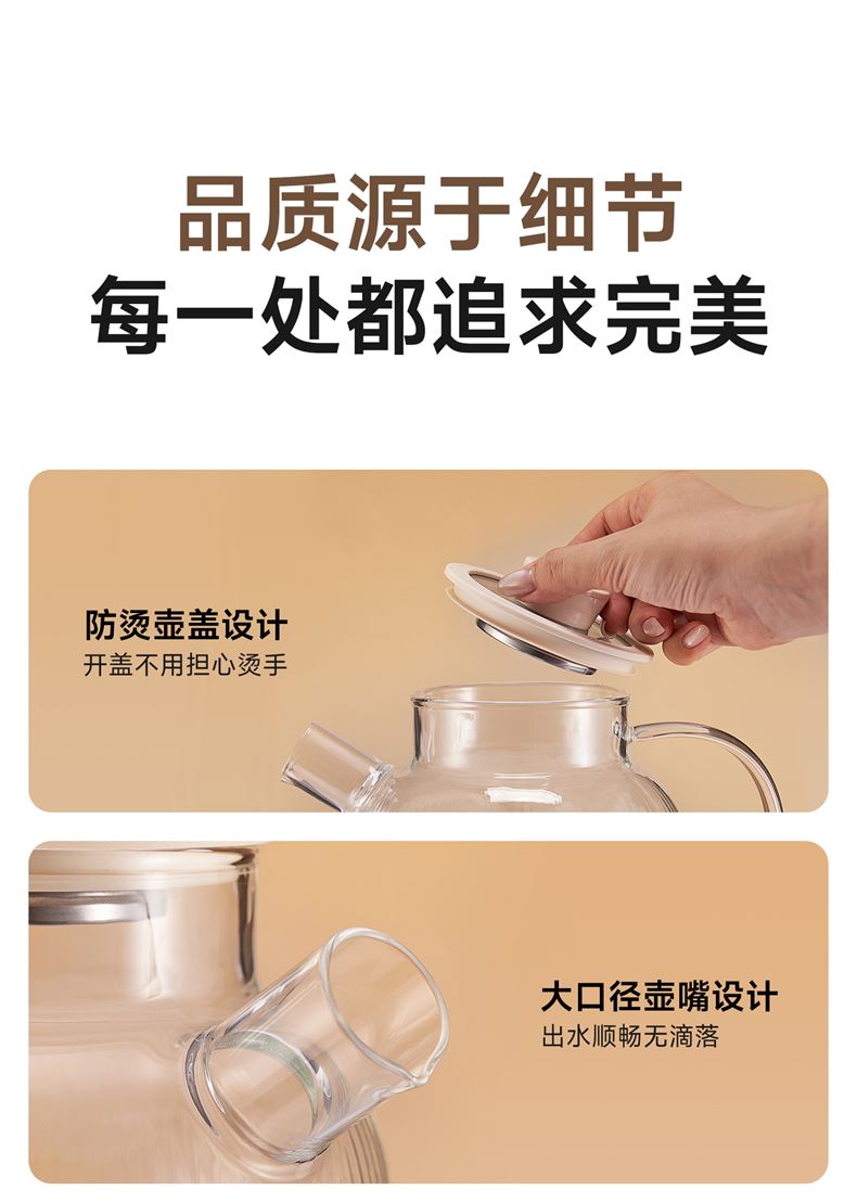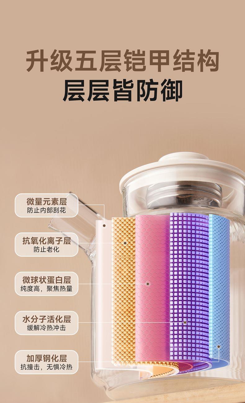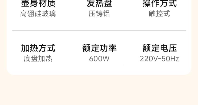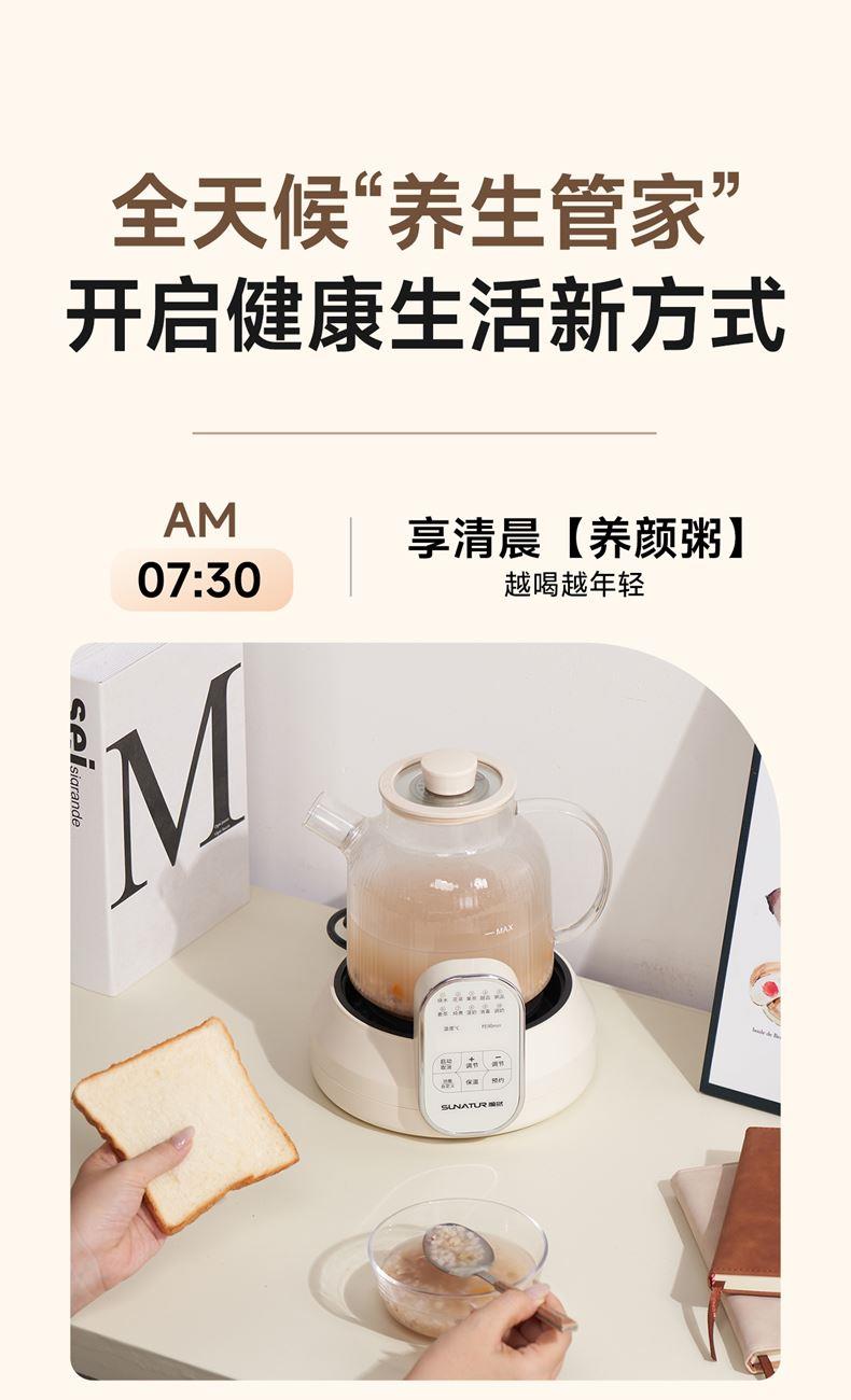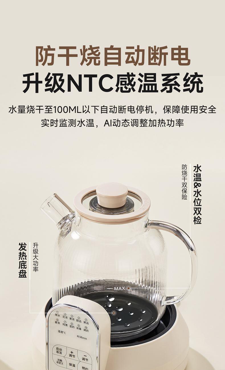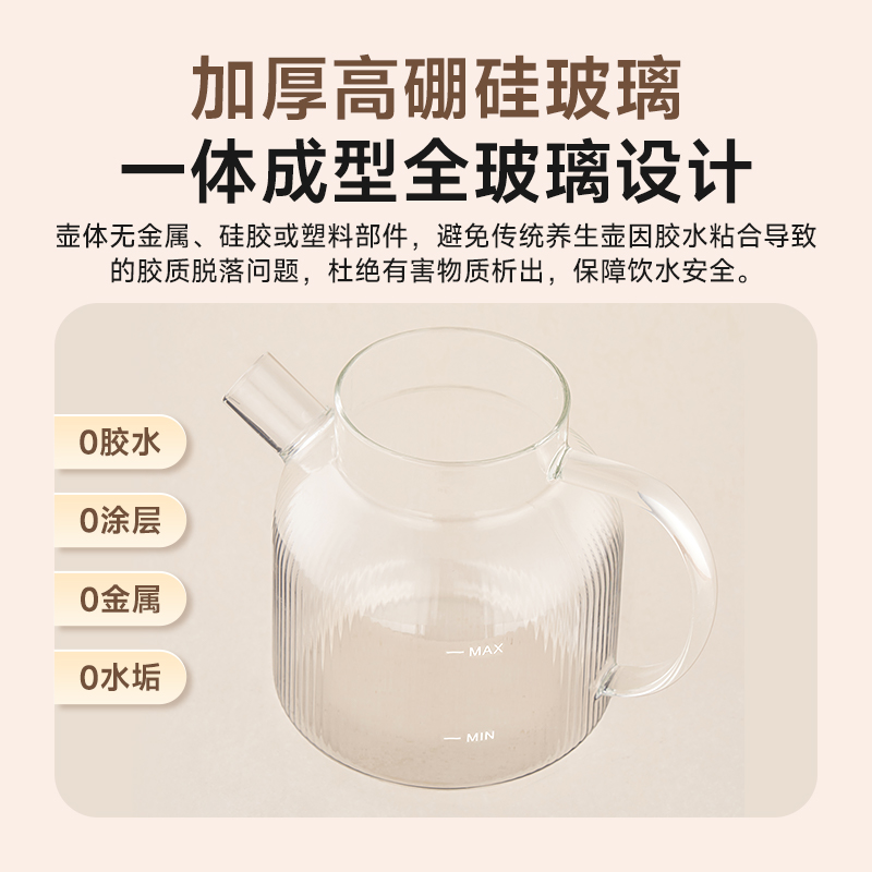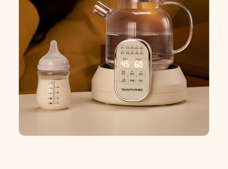 1.2L大容量,高硼硅玻璃壶体,无缝一体式密封设计 600W 功率发热技术; 分体式结构,搭配玻璃炖盅和不锈钢滤网,满足炖煮、过滤等多样需求; 10大智能菜单加持,支持全自动炖煮、恒温保温,适配花茶、养生汤等多种场景;