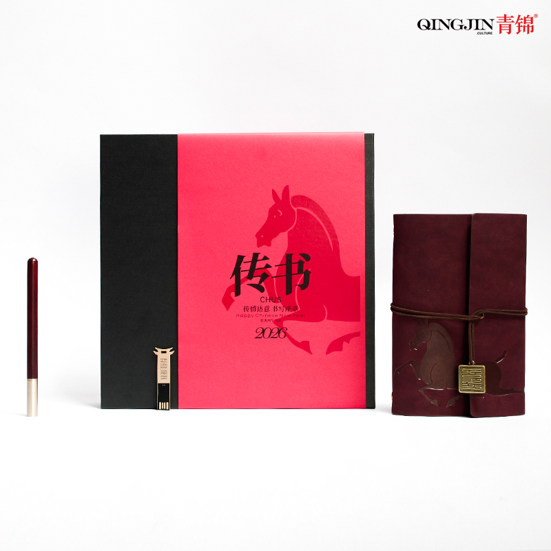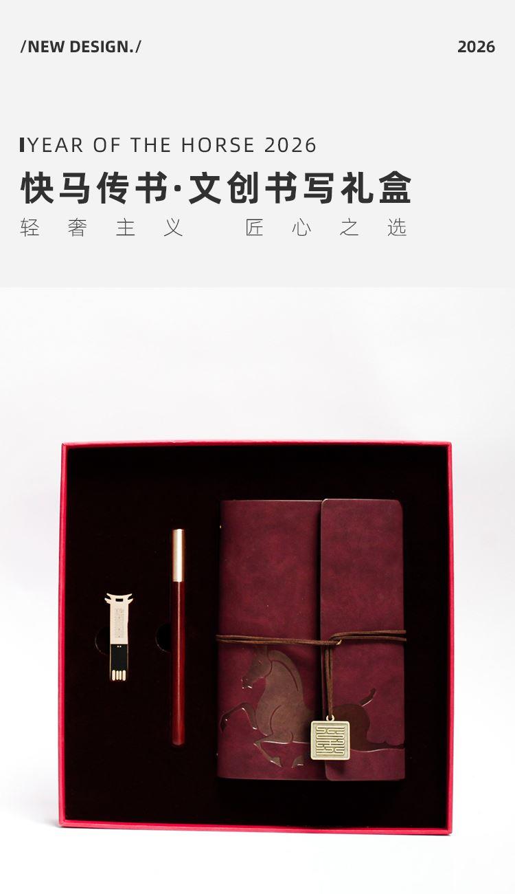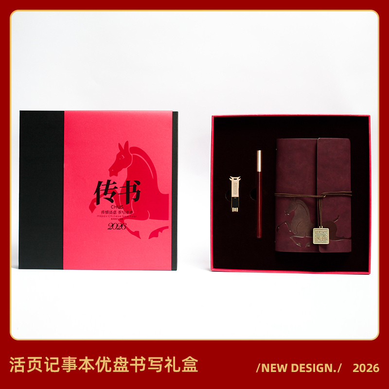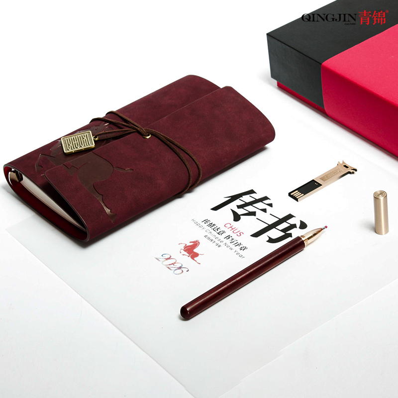 青锦2026【快马传书】活页记事本实木签字笔64G优盘文创礼