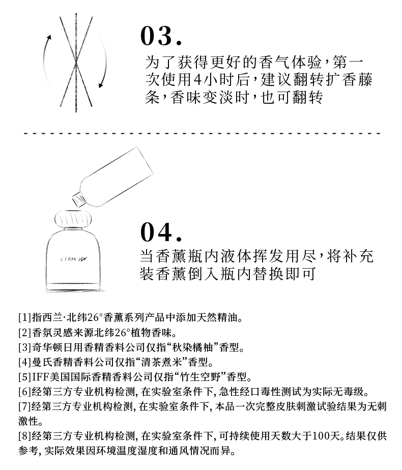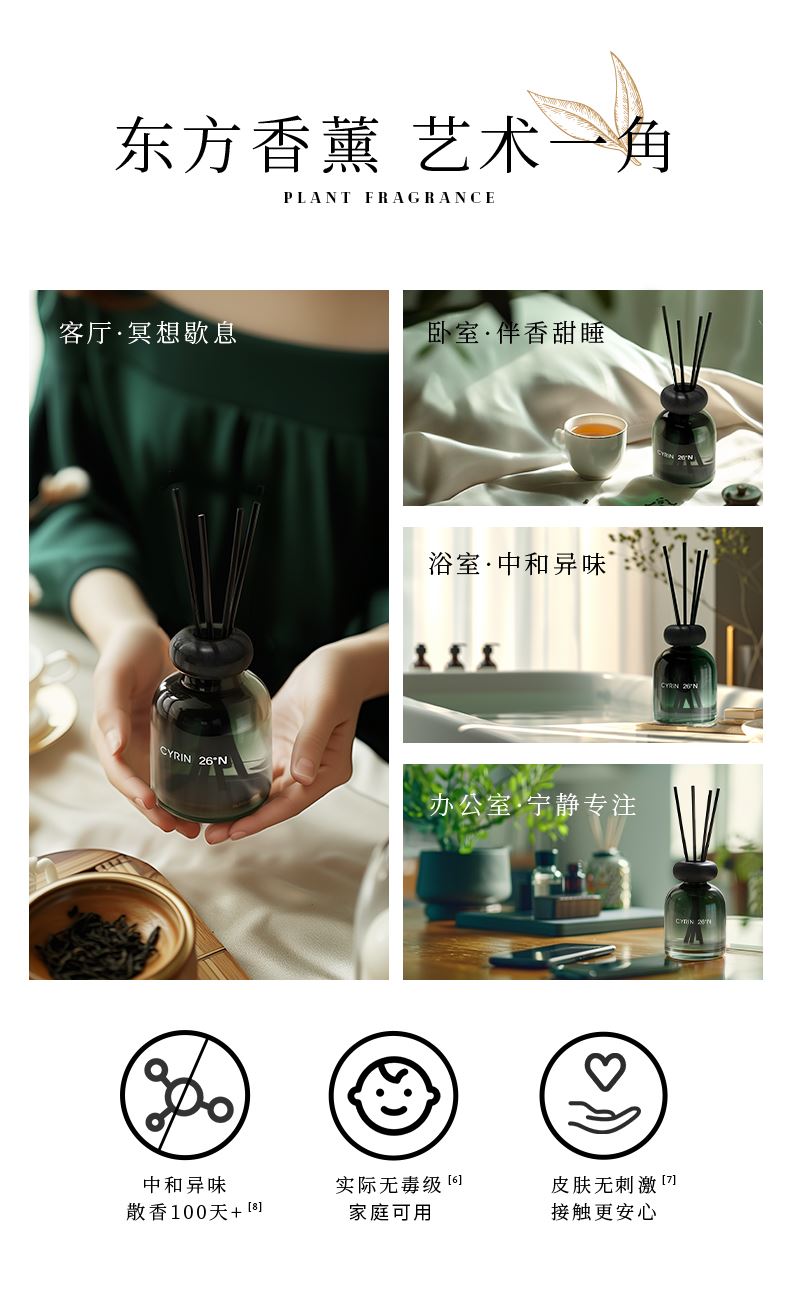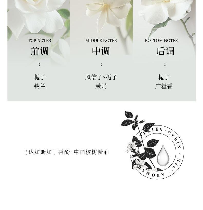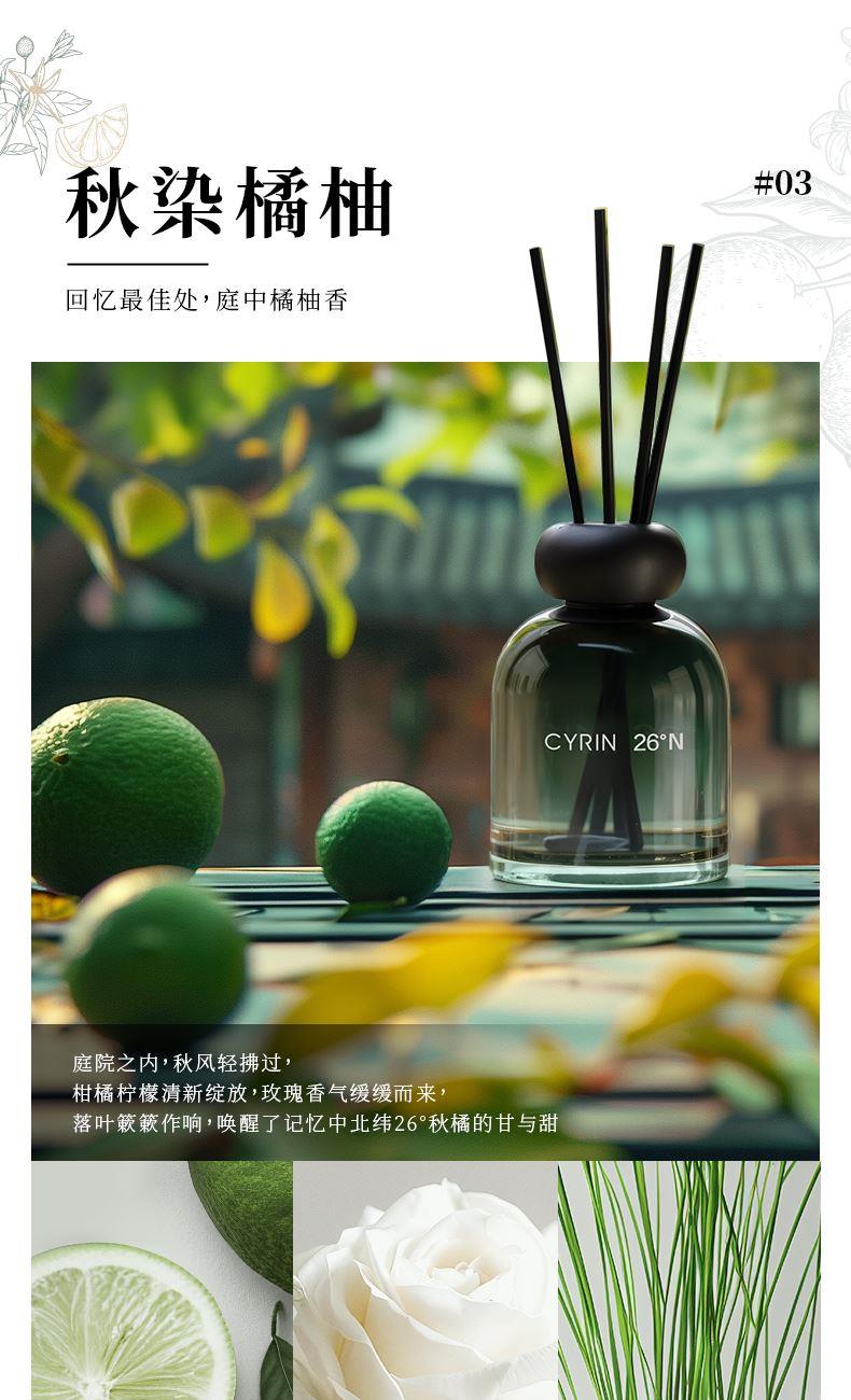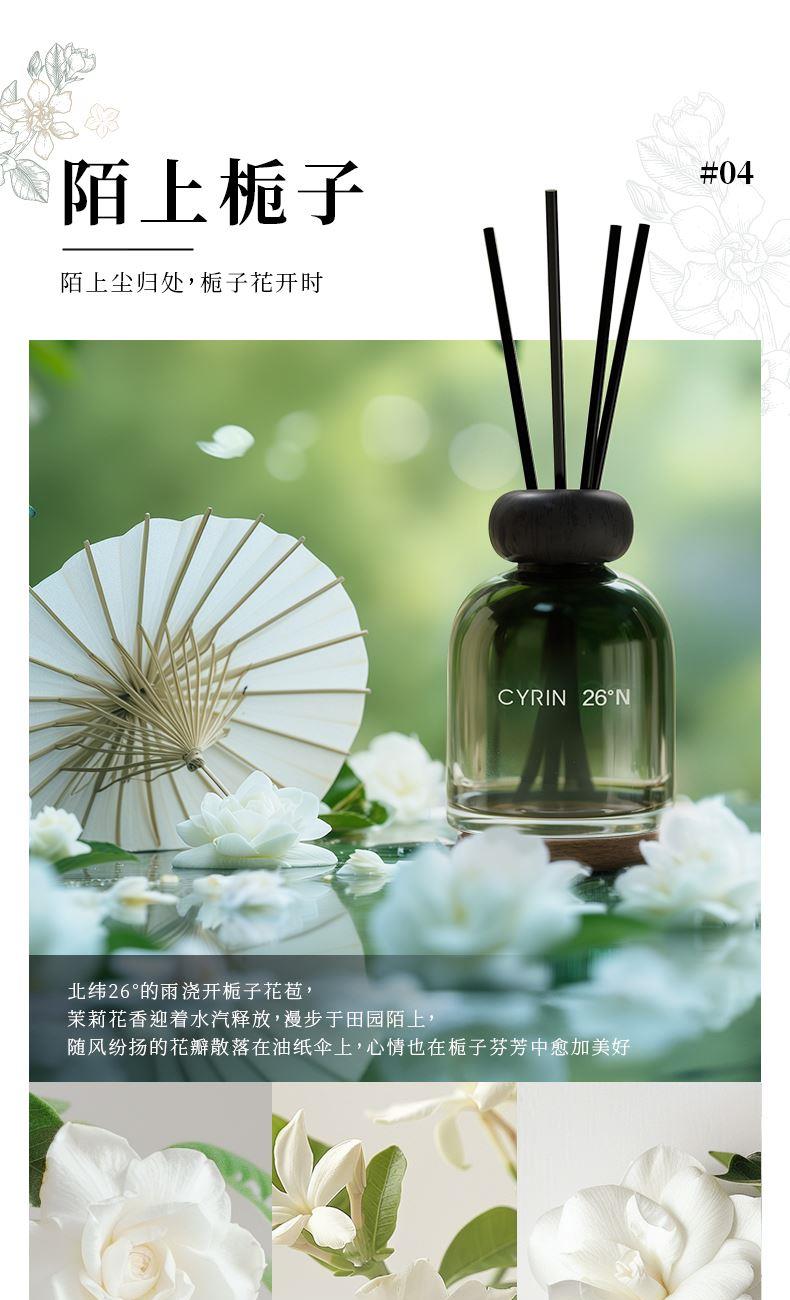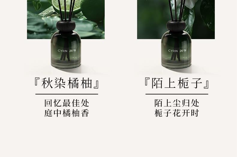 参数: 产品规格:150ml 香型:陌上栀子/秋染橘柚 成分:天然植物精油 使用面积:10m2 卖点: 北纬26°青山绿水,阳光雨露,四季且分明。 弥散大自然馈赠的植物香 西兰谙熟植物的生长脉络与天然气息以植香为灵感,赴一场山野嗅觉之旅以北纬26°自然馈赠为引原创独特植香。