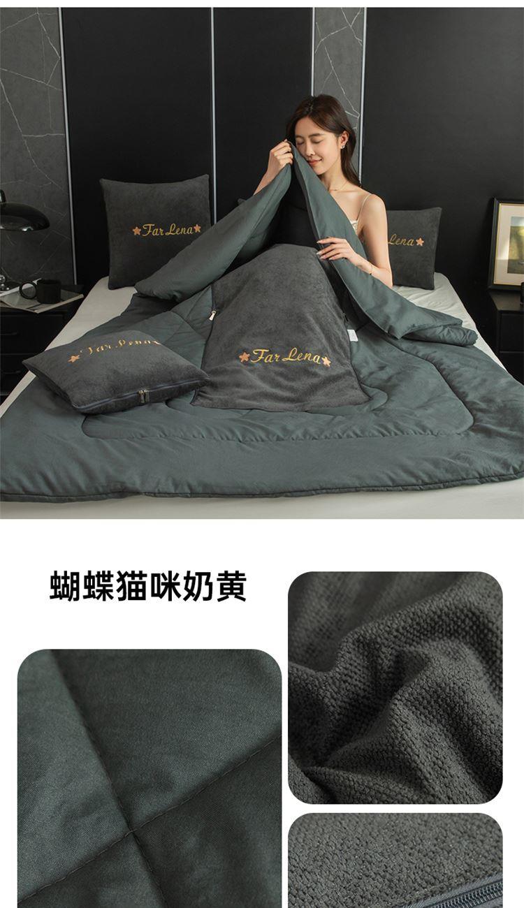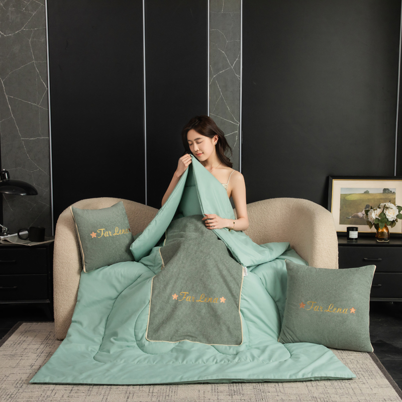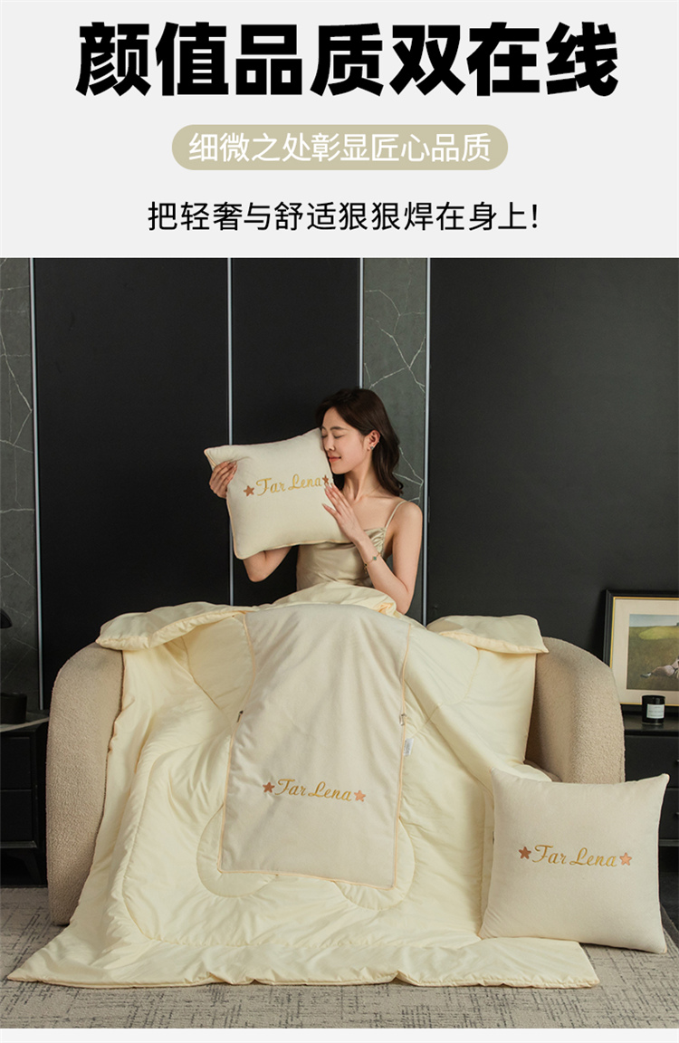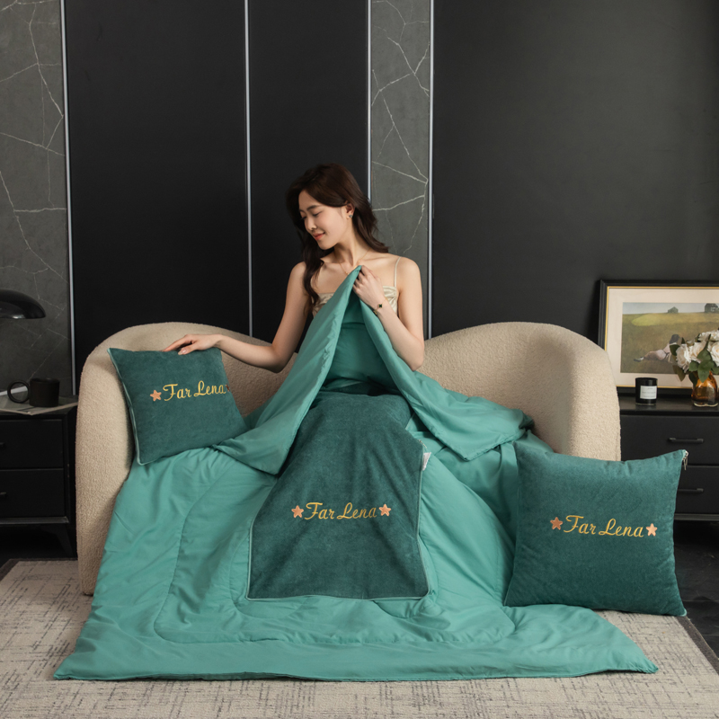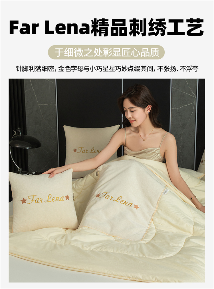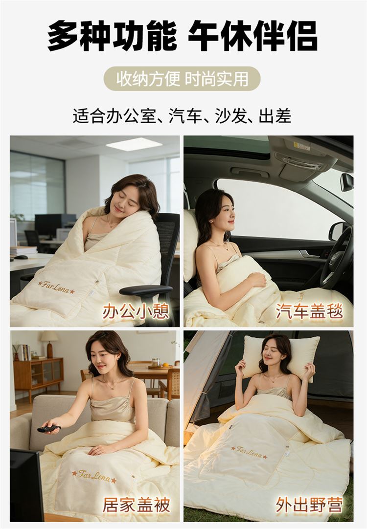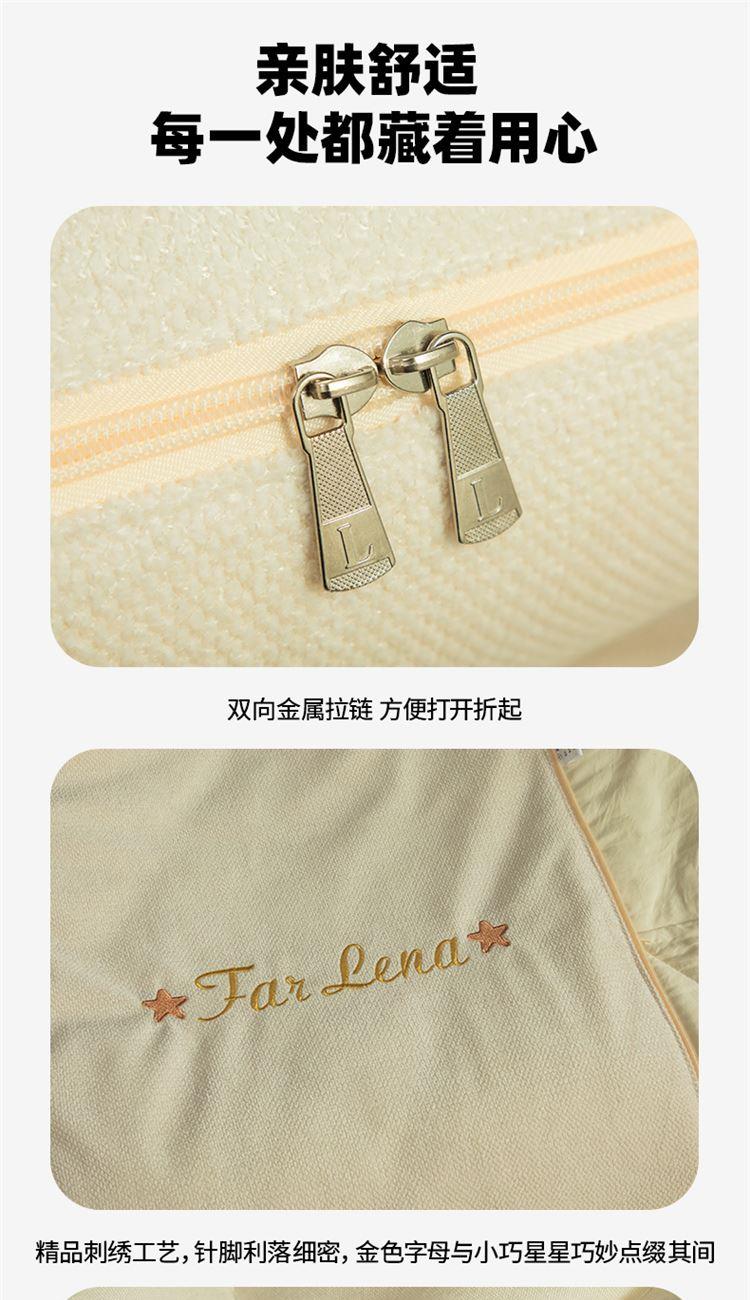 本品采用活力优质雪尼尔面料+高密度水洗磨毛面料制作而成 !独特的Far Lena 精品刺绣工艺,彰显品质|颜值与实用双在线! 一枕多用,场景全覆盖 抱枕+被子二合一,隐藏拉链设计,秒变舒适小被子。 午休盖腿、靠腰护颈,告别空调冷意。沙发追剧、床头靠卧,柔软包裹感拉满。车载应急、差旅便携,折叠后小巧不占空间。 一个顶俩,性价比超高,解决多场景需求! 表面面料:雪尼尔 被子面料:水洗磨毛 尺寸:40*40cm 打开105*150cm