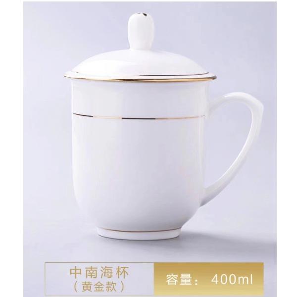 产品组成:整套=1杯+1盖+牛皮纸盒 产品材质:骨质瓷 中南海会议杯产品规格:杯=口径8.7cm,高度13.3cm 将军会议杯产品规格:杯=口径8cm,高度13.5cm 纸盒尺寸:11×10×11.5 cm 产品容量:400ML