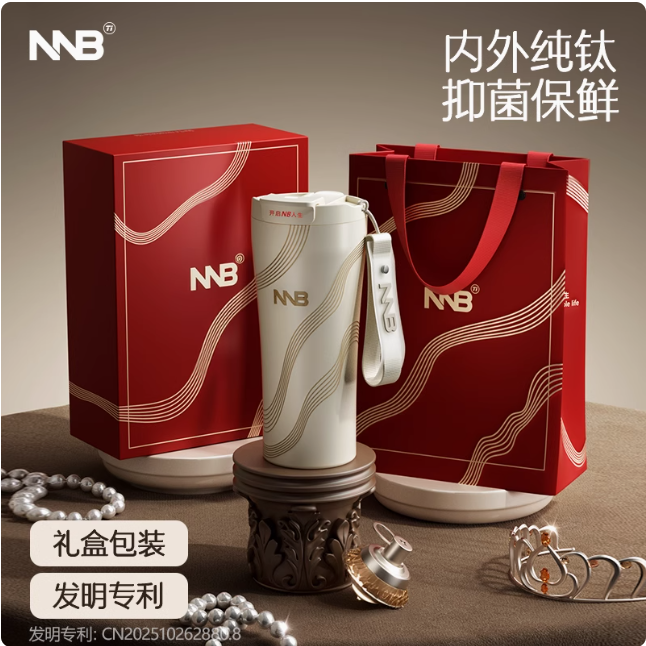 NNB内外纯钛咖啡杯NB15猫猫鱼礼盒装