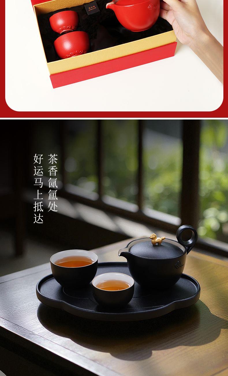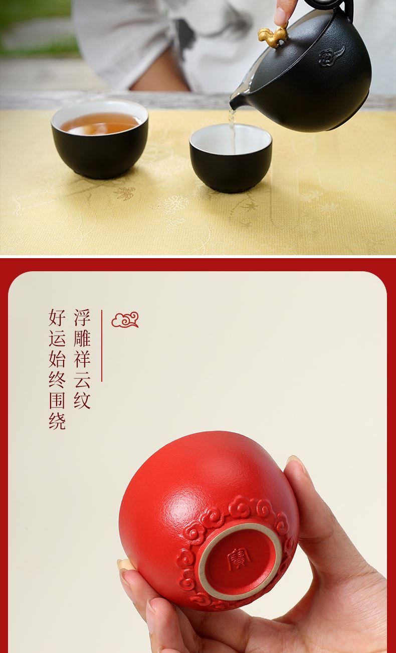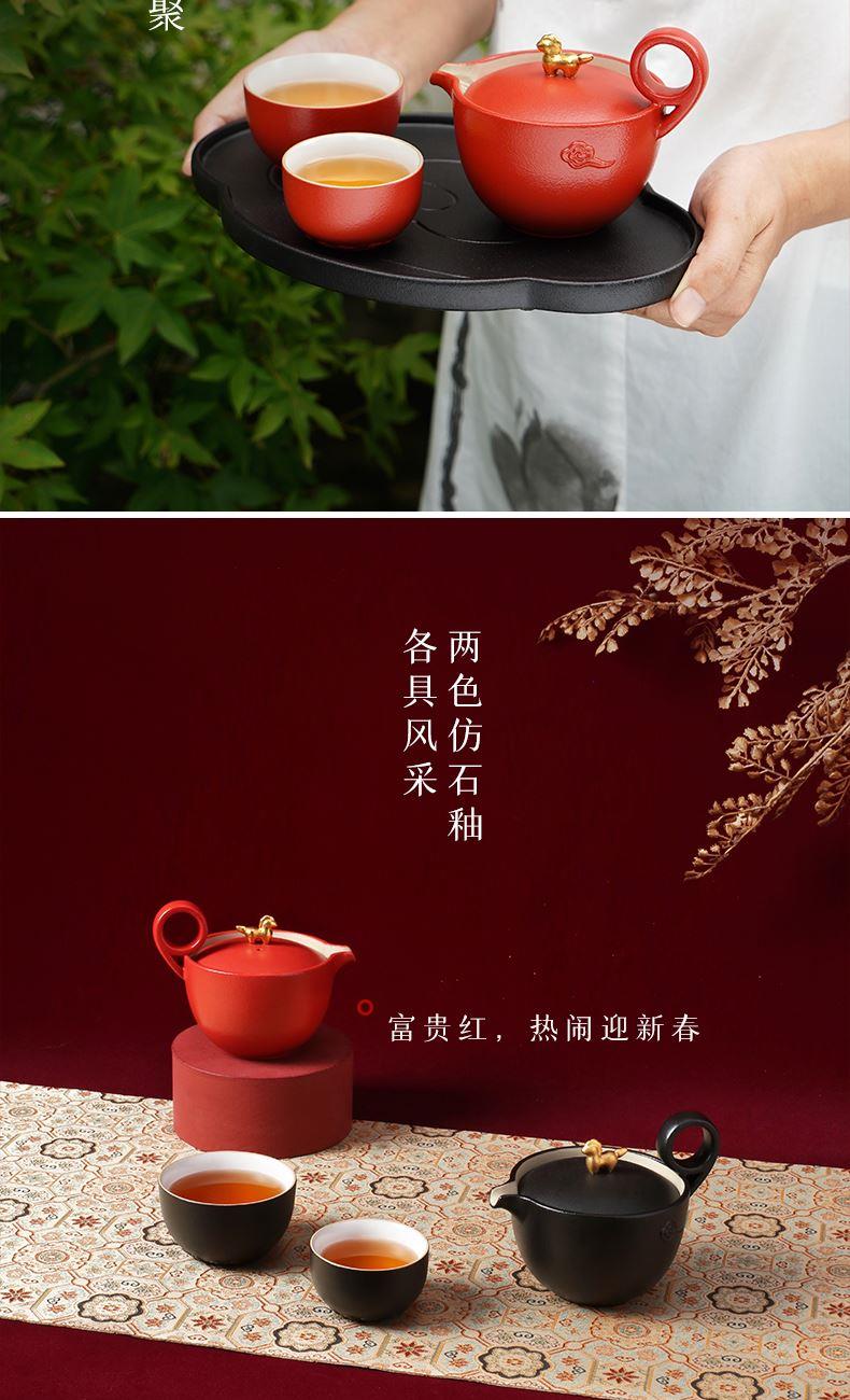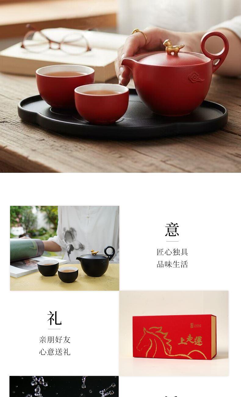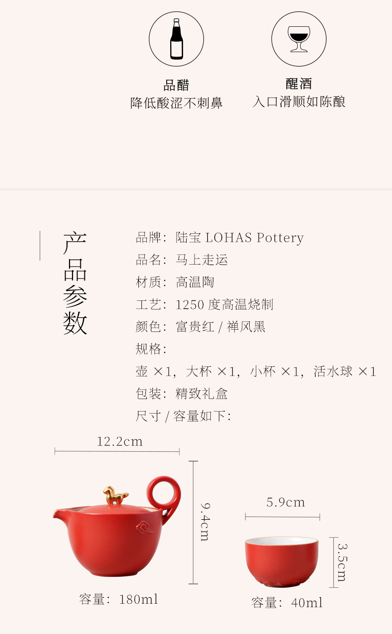 以金马和祥云入器,创作「马上走运」茶组,为茶生活注入鸿运当头、如意年年的吉祥美意。萌趣马驹立于茶器上,彷佛自茶香中跃出,洋溢蓬勃朝气与无限喜悦。细致雕琢的祥云纹,喻示好运马上来、福气马上到。大小双杯,巧妙套叠于壶中,寓意圆满叠至、福气相随。