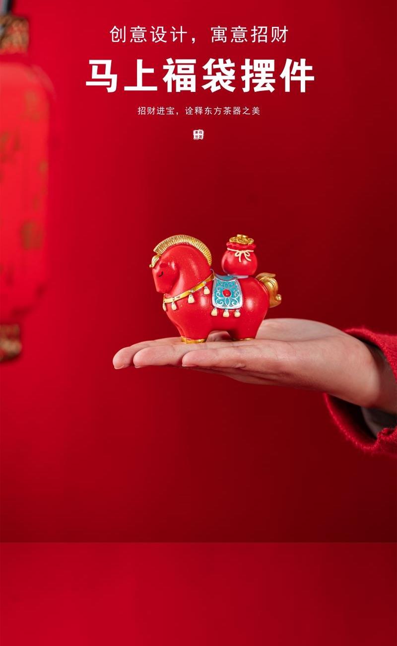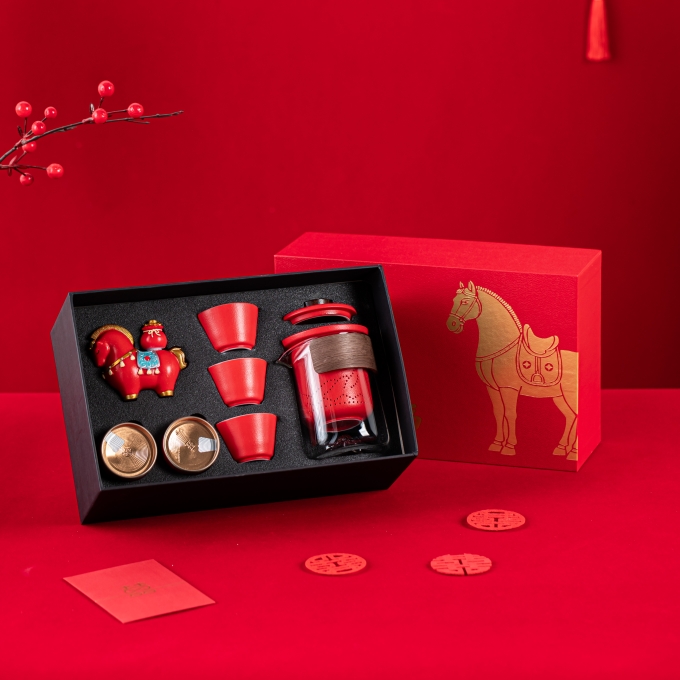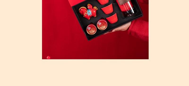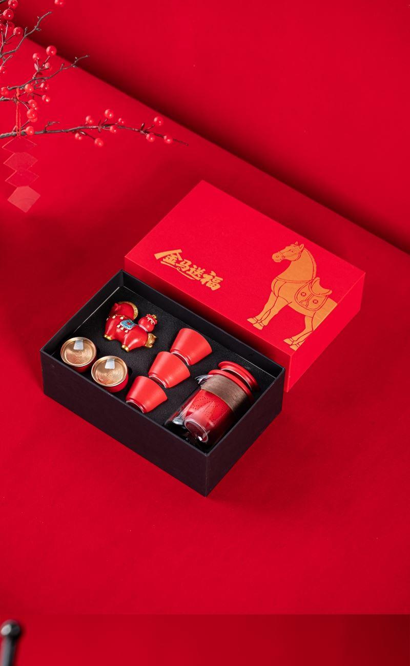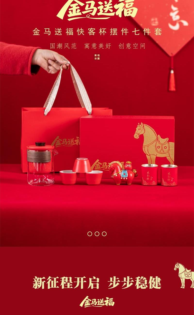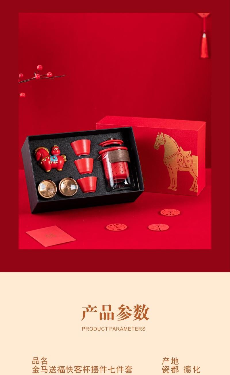 • 开门红年会茶具礼品金马送福快客杯摆件七件套