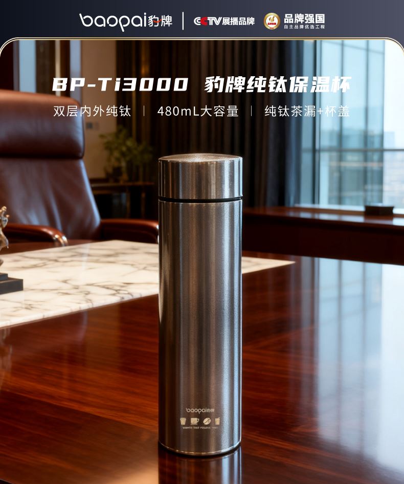 BP-Ti3000豹牌纯钛保温杯(彩盒+手提袋)