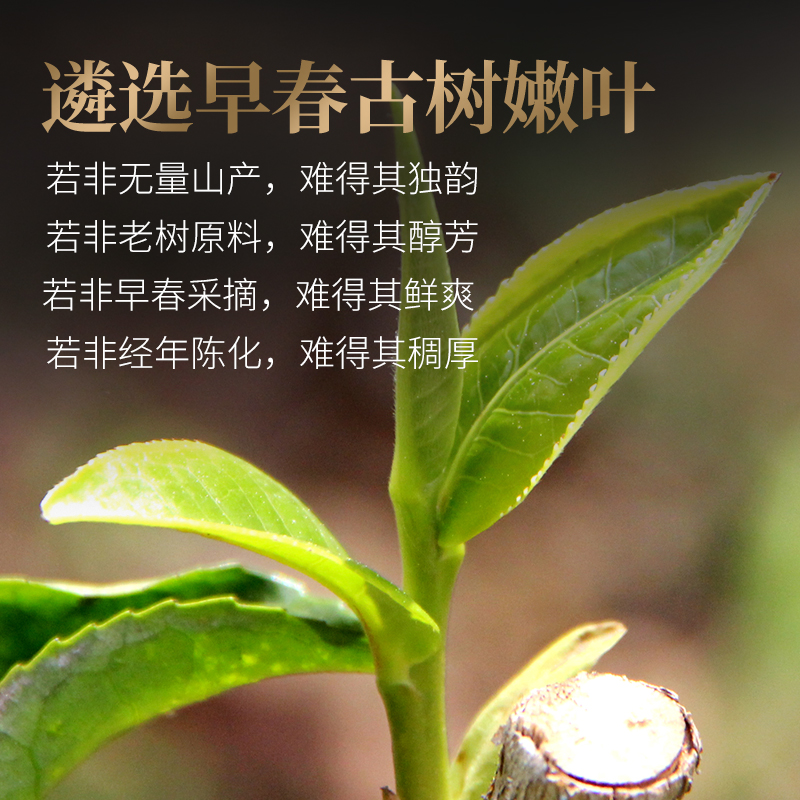 系列:无量山普洱熟茶357g 规格:357g/饼 工艺:传统石模压制、渥堆发酵、风选除尘 保 质 期:符合贮存条件下贮存,越陈越香 储存条件:清洁、通风、干燥、阴凉无异味 卖点: 1.无量山2009年原料,早春古树嫩叶,苍劲毕现 2.饼身圆润,松紧适宜,条索肥壮,金芽满身。 3.陈香满溢,入口苦而微涩,细柔绵润甜滑。 4.叶底肥润,叶片厚软如云,芽头细嫩如针。