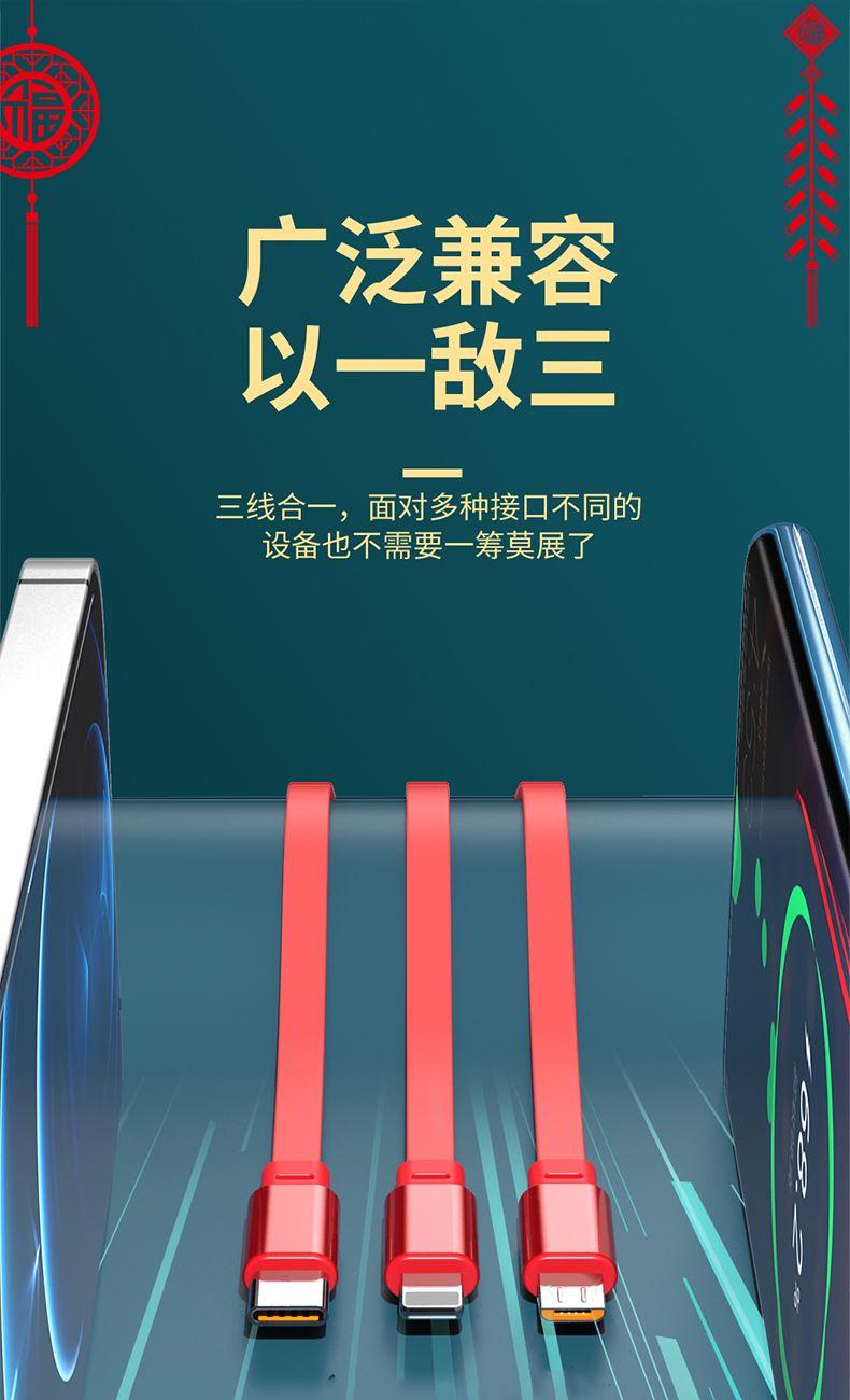 遥里逊马年一拖三快充数据线三合一充电线YLX-348