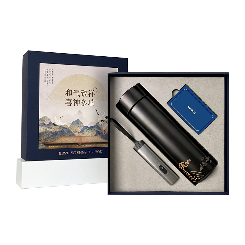 ❶ 数显保温杯 500ml 温度显示 ❷ 三合一数据线铝壳+TPE+纯铜 接口:USB/安卓/苹果/TYPE-C ❸ 说明书 ❹ 手提袋 尺寸:26*27*9cm