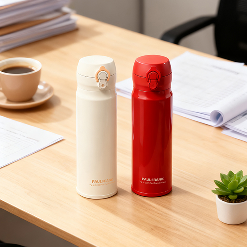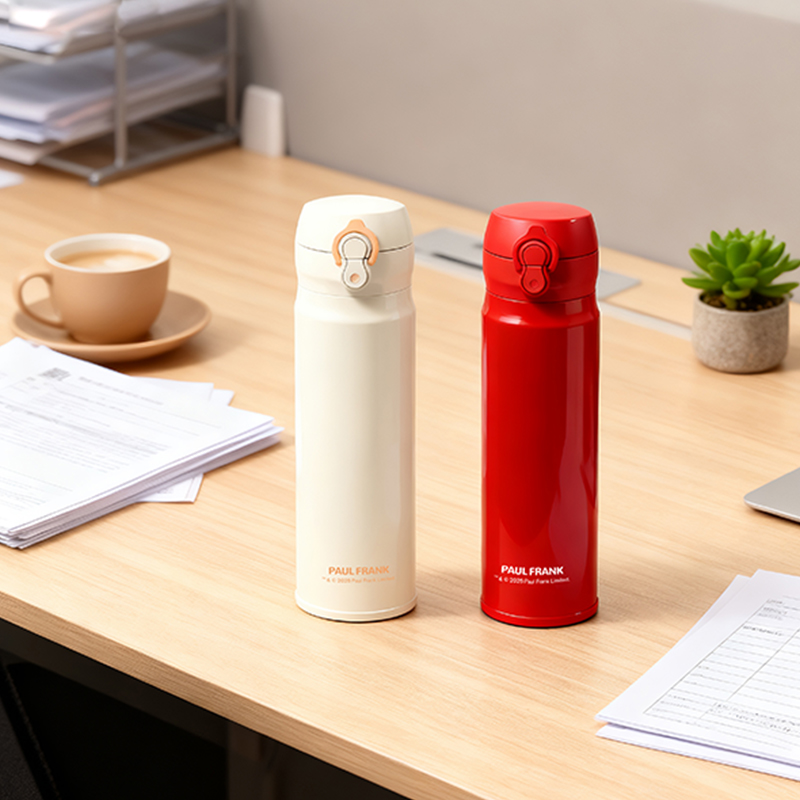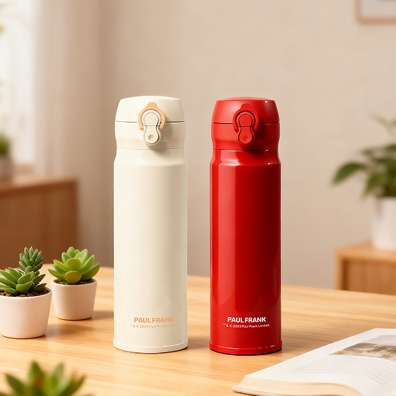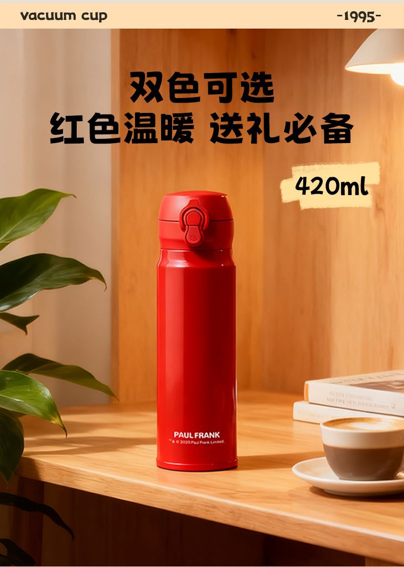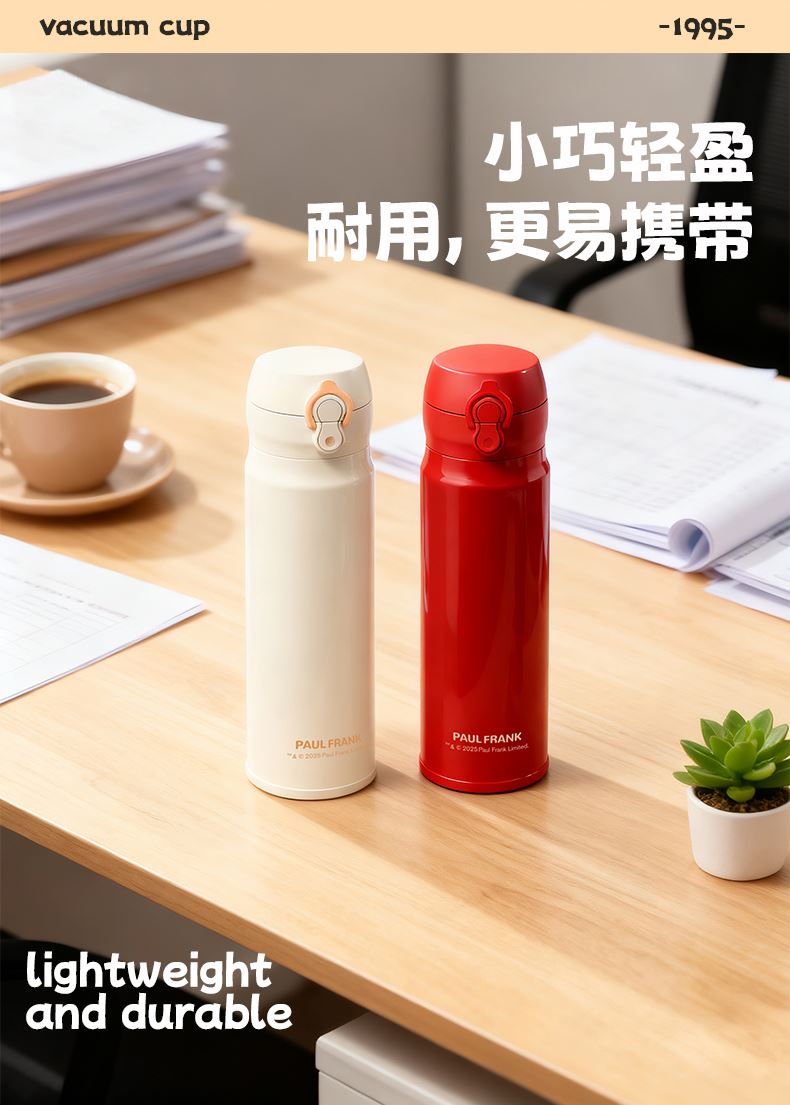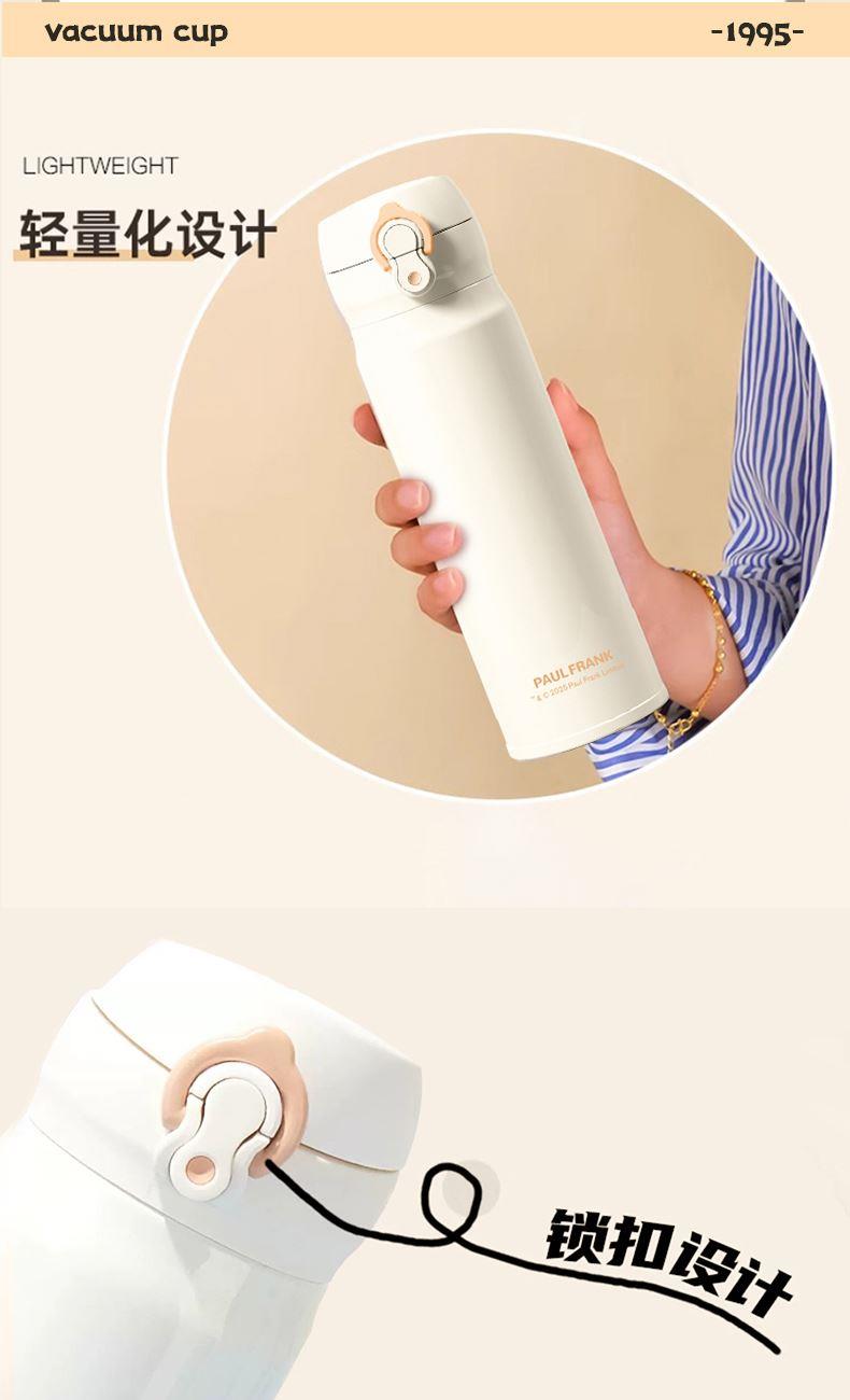 型 号:PF1003 颜 色:奶白色、红色 材 质:304不锈钢 容 量:450ml 69码: 6978198831659 彩盒尺寸:6.9*6.9*23.3 1.食品级304不锈钢内胆,耐腐蚀性更强,易于清洗; 2.6-12小时长效保温,无尾真空工艺; 3.双弹跳设计,直饮/吸管多种饮水方式; 4.双层杯口,触感舒适; 5.杯底硅胶垫设计,静音防滑防磨。