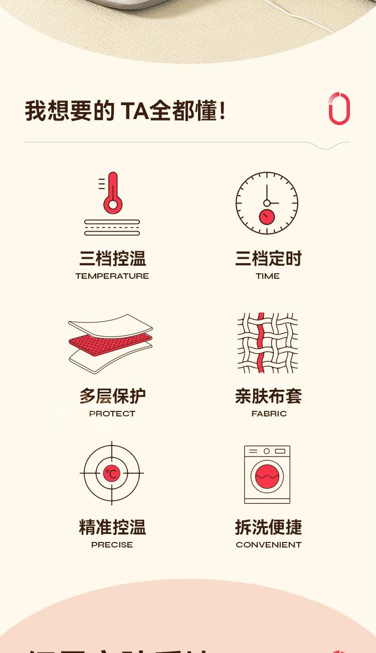 卖点 型号:NJB-1 功能:自动限温,适宜学习、居家、办公、休闲娱乐等场所使用 包装:纸盒 参数 1、全线路多重安全保护,自动限温 2、适宜学习、居家、办公、休闲娱乐等场所使用 3、舒适绒面料,外套可拆洗