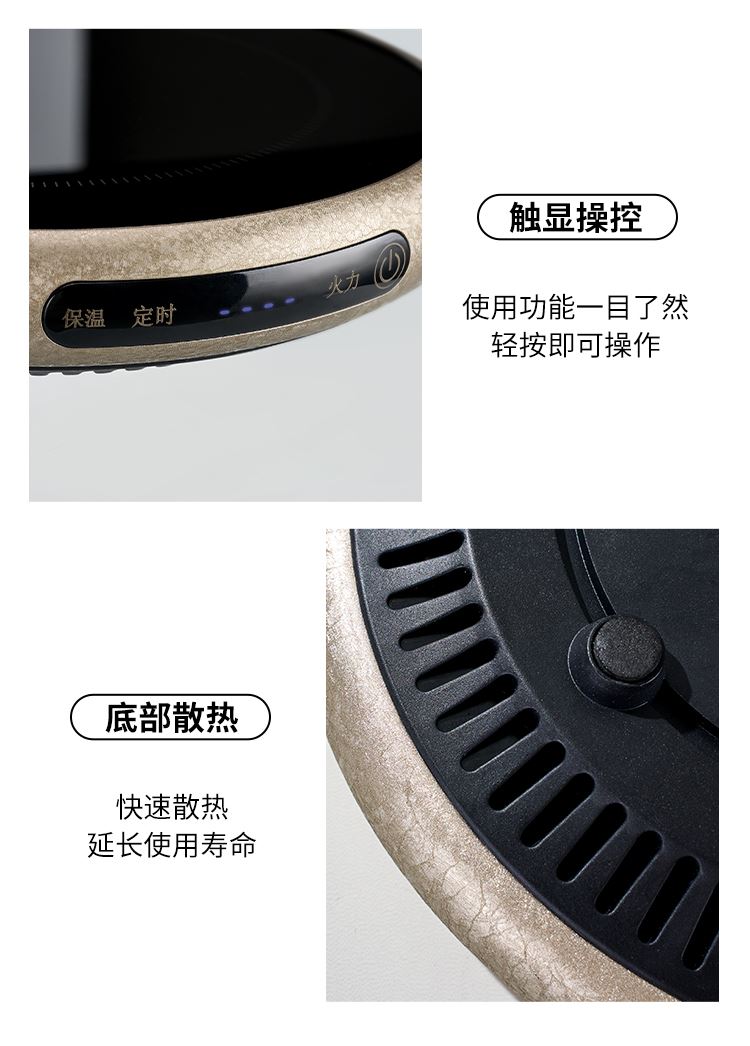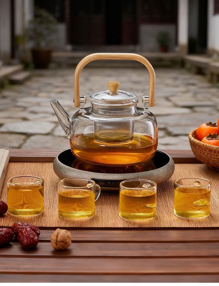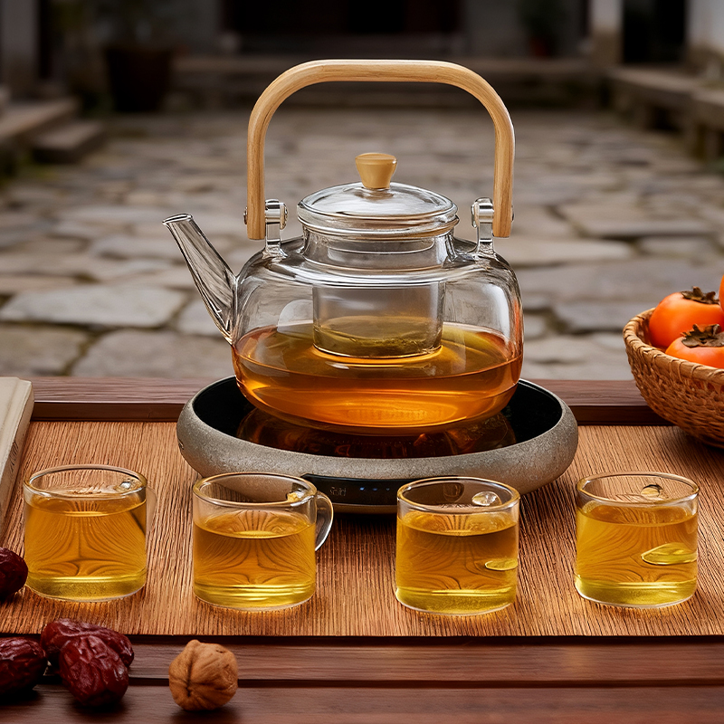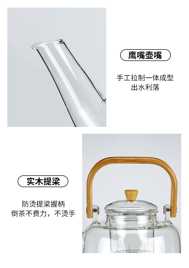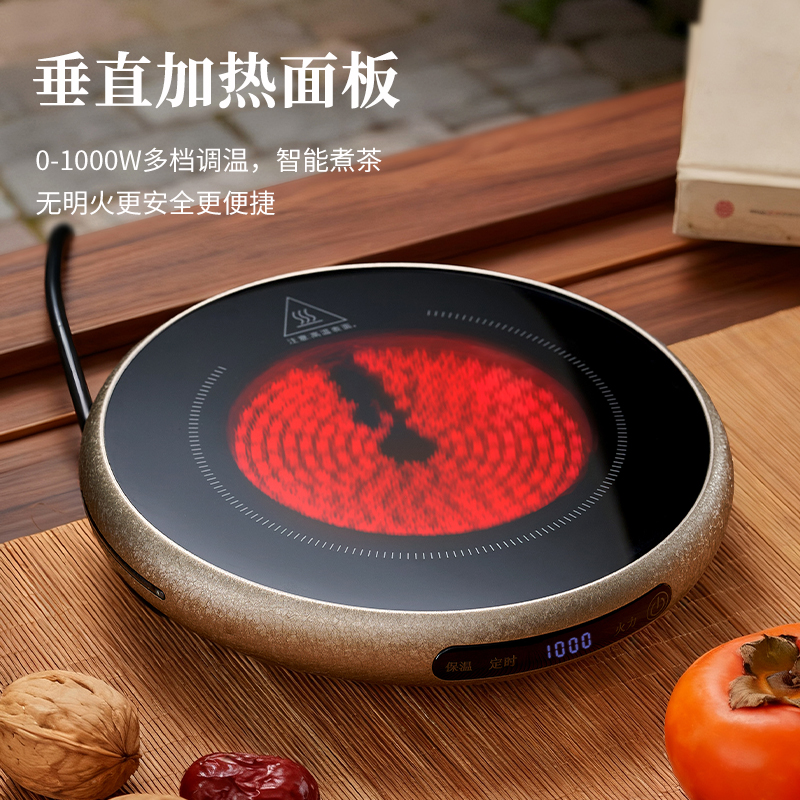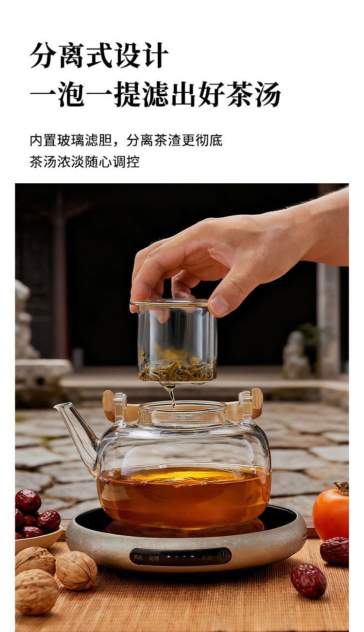 ·材质高硼硅玻璃、微晶板、镀锌板、PB 额定功率 1000W ●额定频率 50Hz ●套装清单 高硼硅玻璃提梁壶x1、高硼硅玻璃杯x4、炆火电陶炉x1