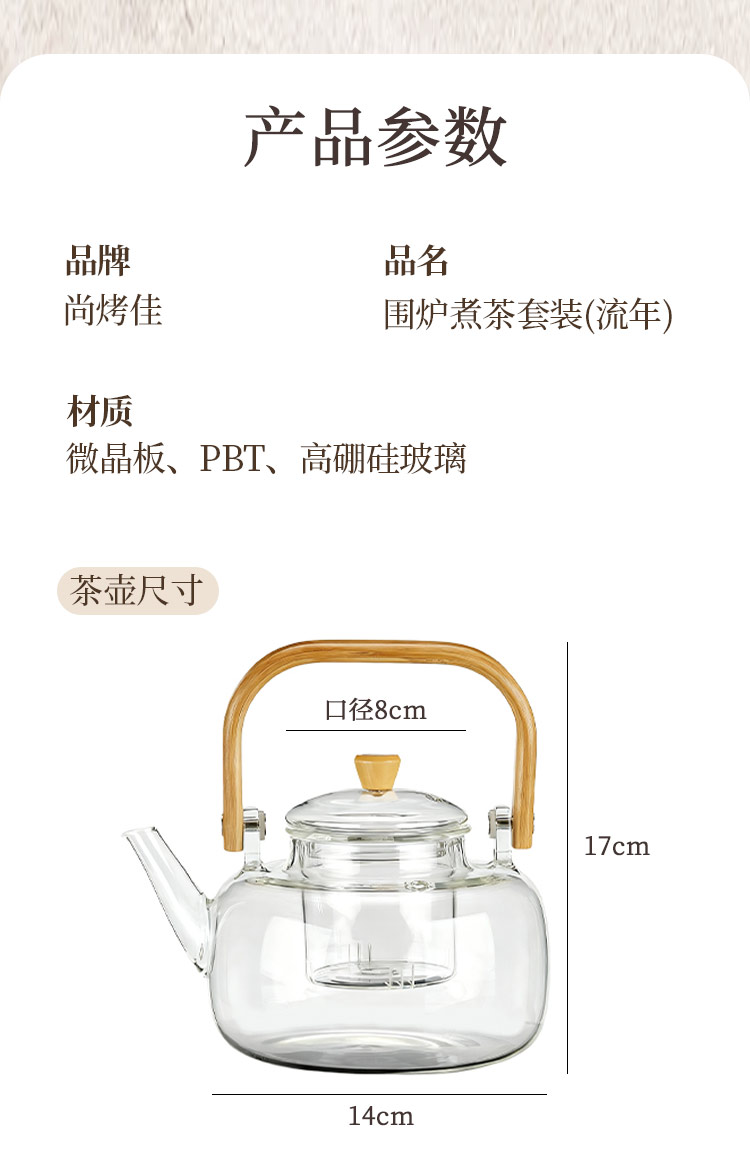 材质 微晶板、PBT、高硼硅玻璃 一壶4杯,电围炉