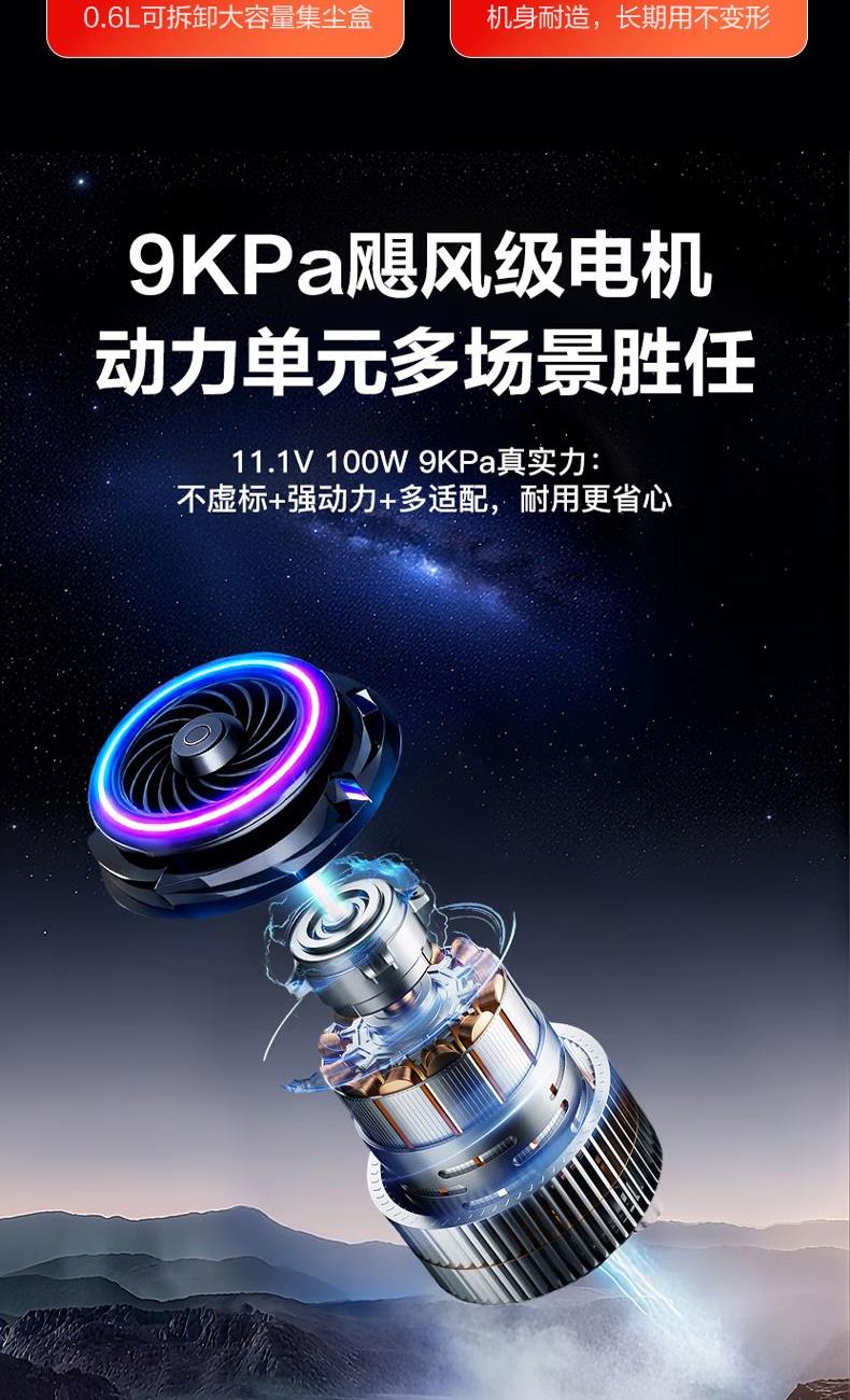 11.1V100W 9KPa真实力:不虚标+强动力+多适配,耐用更省心。