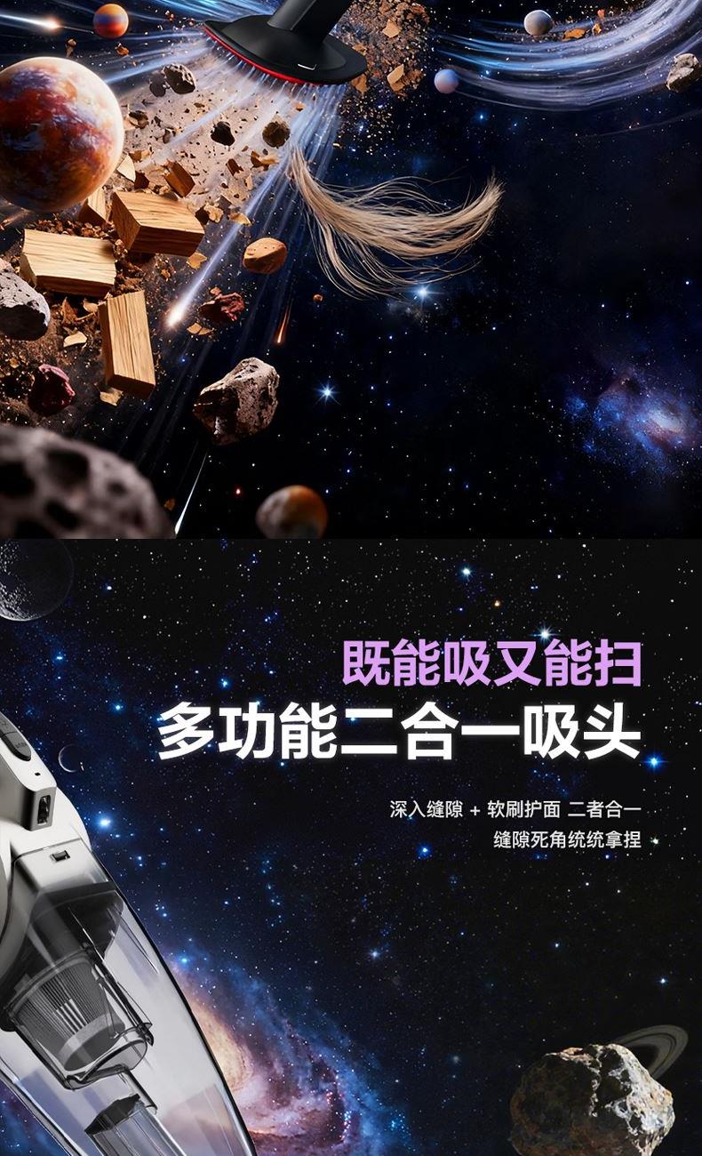 碎屑毛发一网打尽,强效吸嘴,扩大面积、快速清洁沙发/床垫/毛发/灰尘边角全搞定。