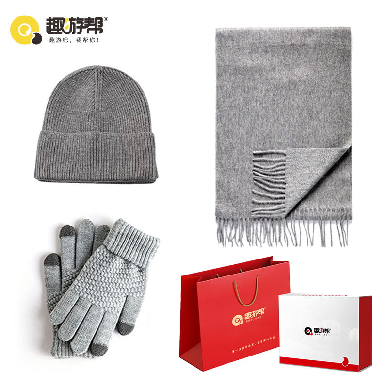 趣游帮户外御寒暖心帽子围巾手套三件套(S-3305)