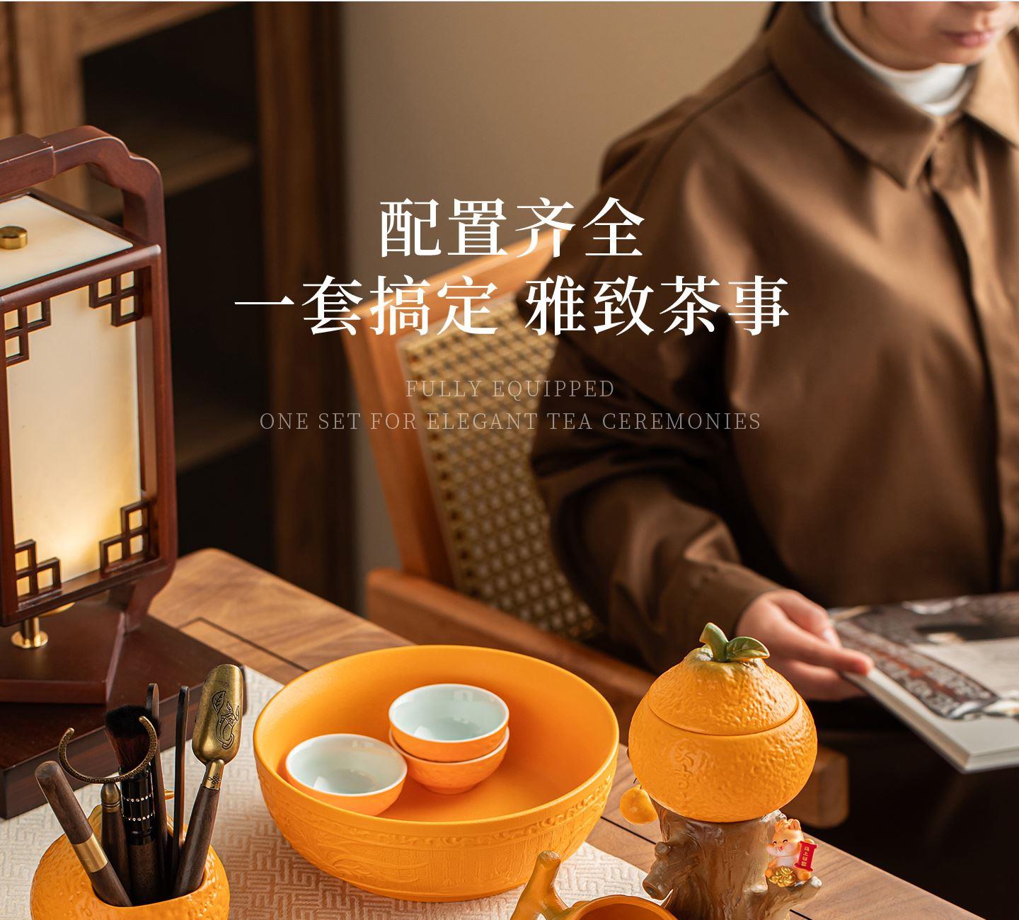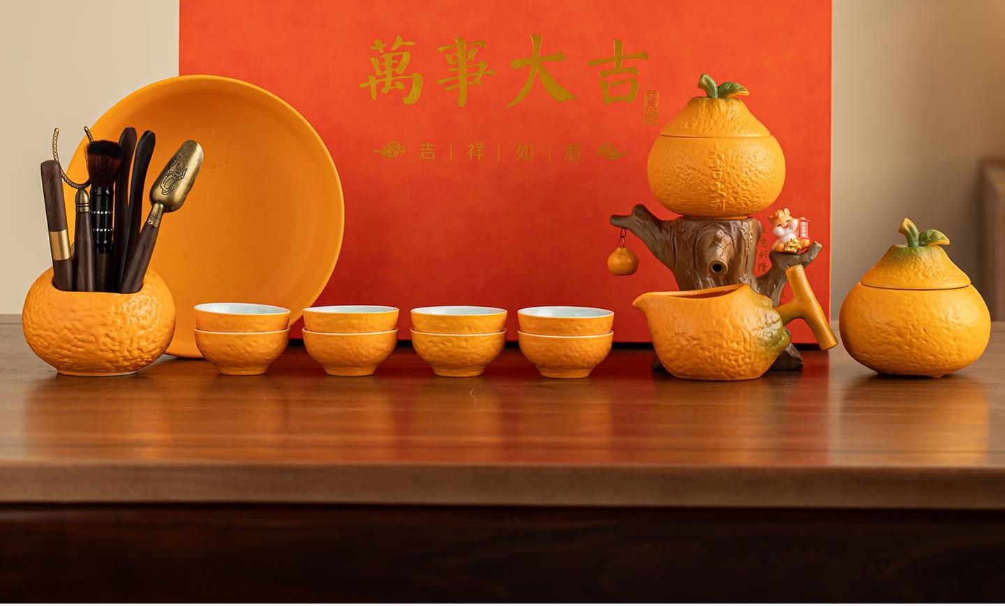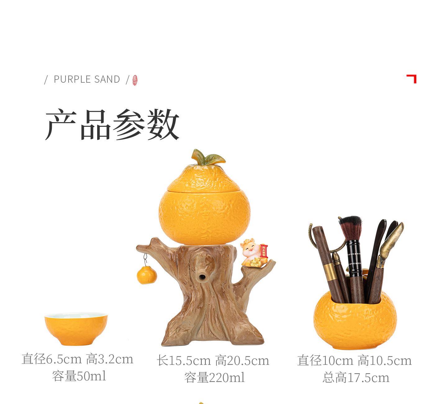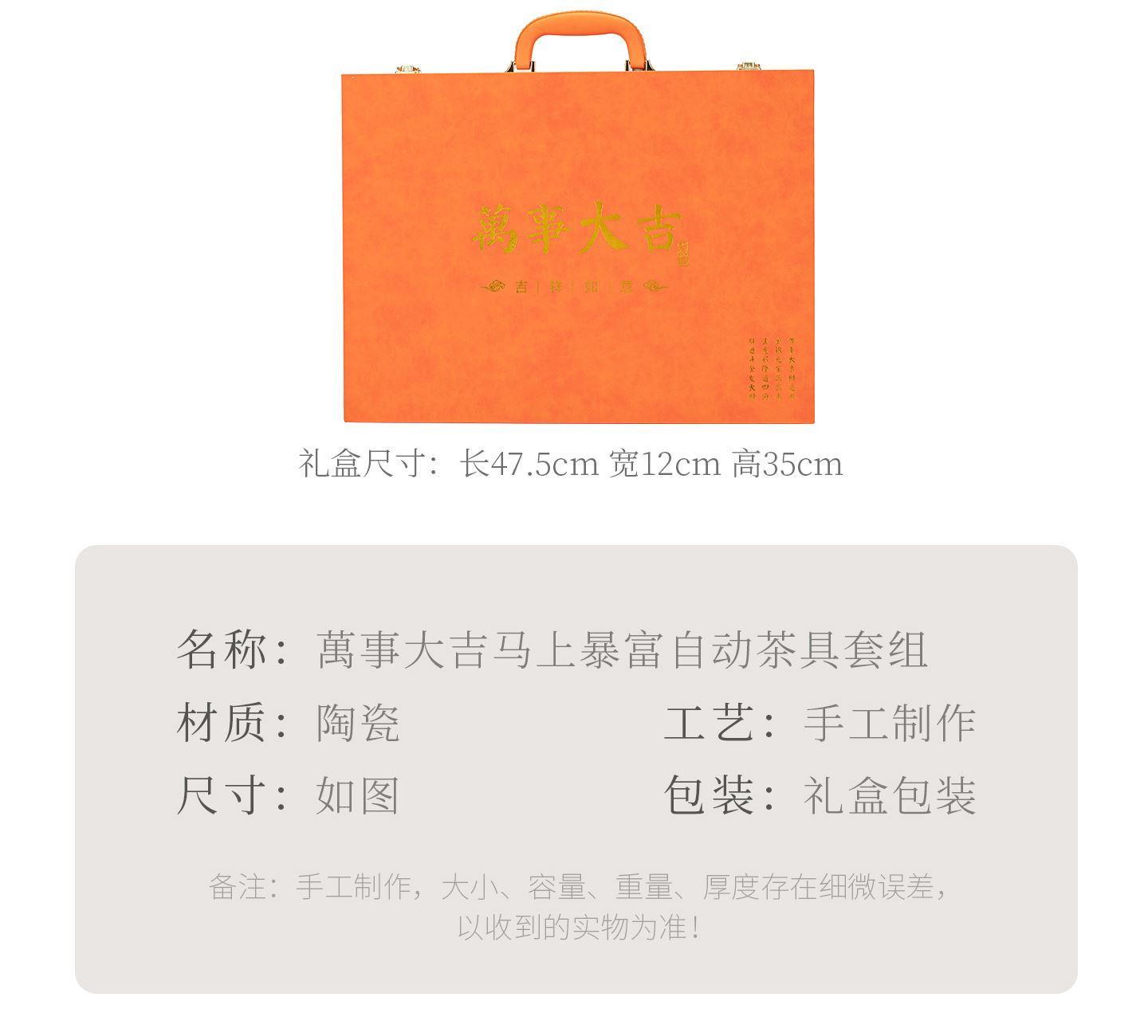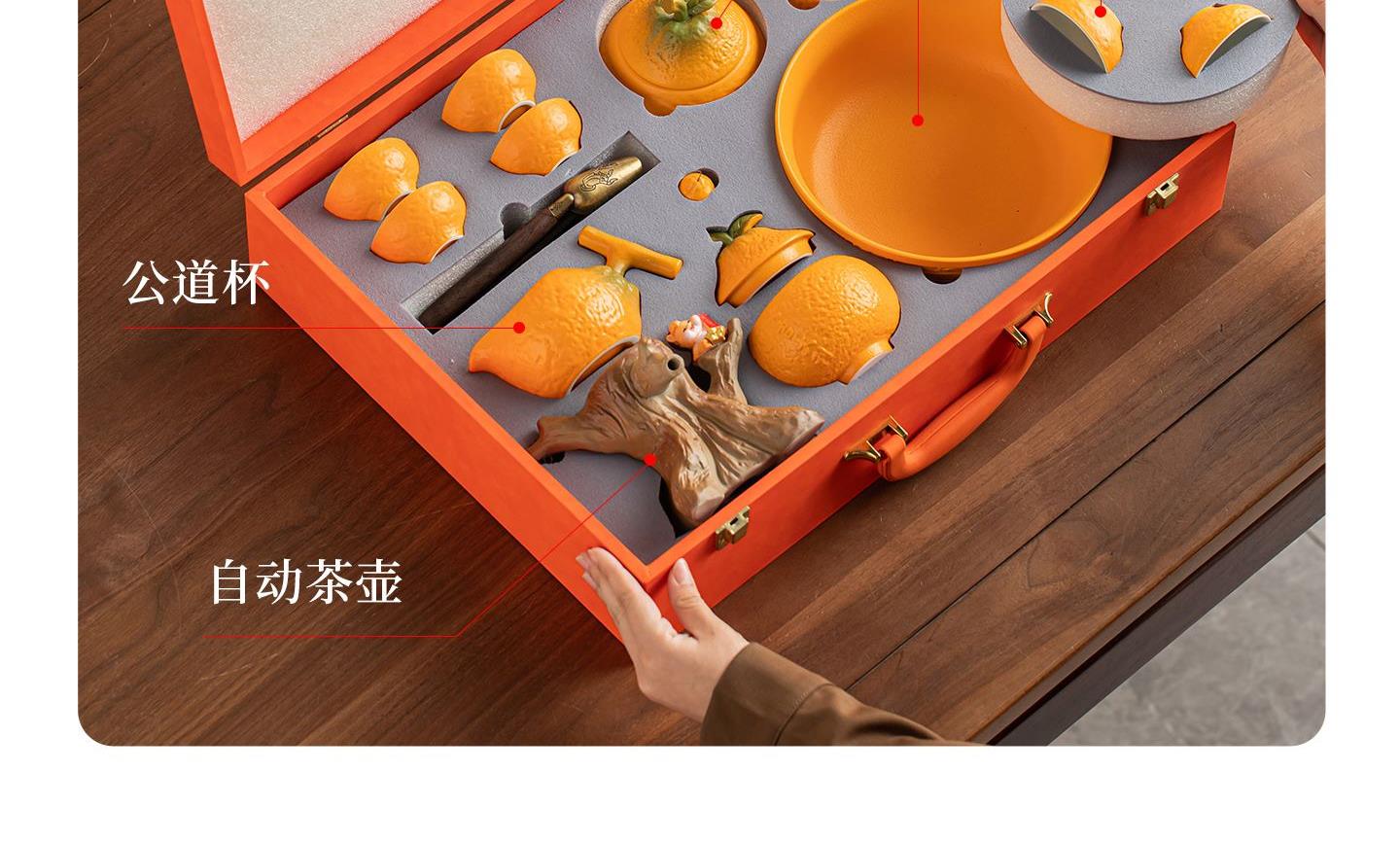泡茶台:20.5*15.5厘米 220ml 品茗杯:6.5*3.2厘米50ml 茶海:14*7.5厘米200ml 茶叶罐:11*10厘米300ml 茶洗:20.5*7厘米1000ml 造型形象生动,寓意美好,天然矿物釉,高温烧制无铅镉 ,配置齐全,商务实用,搭配礼盒包装,自用赠礼两宜,用陶瓷的温润,调和生活的棱角。
