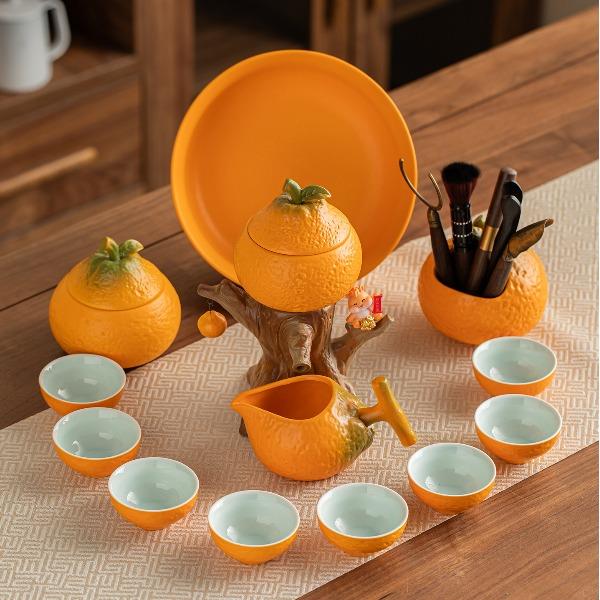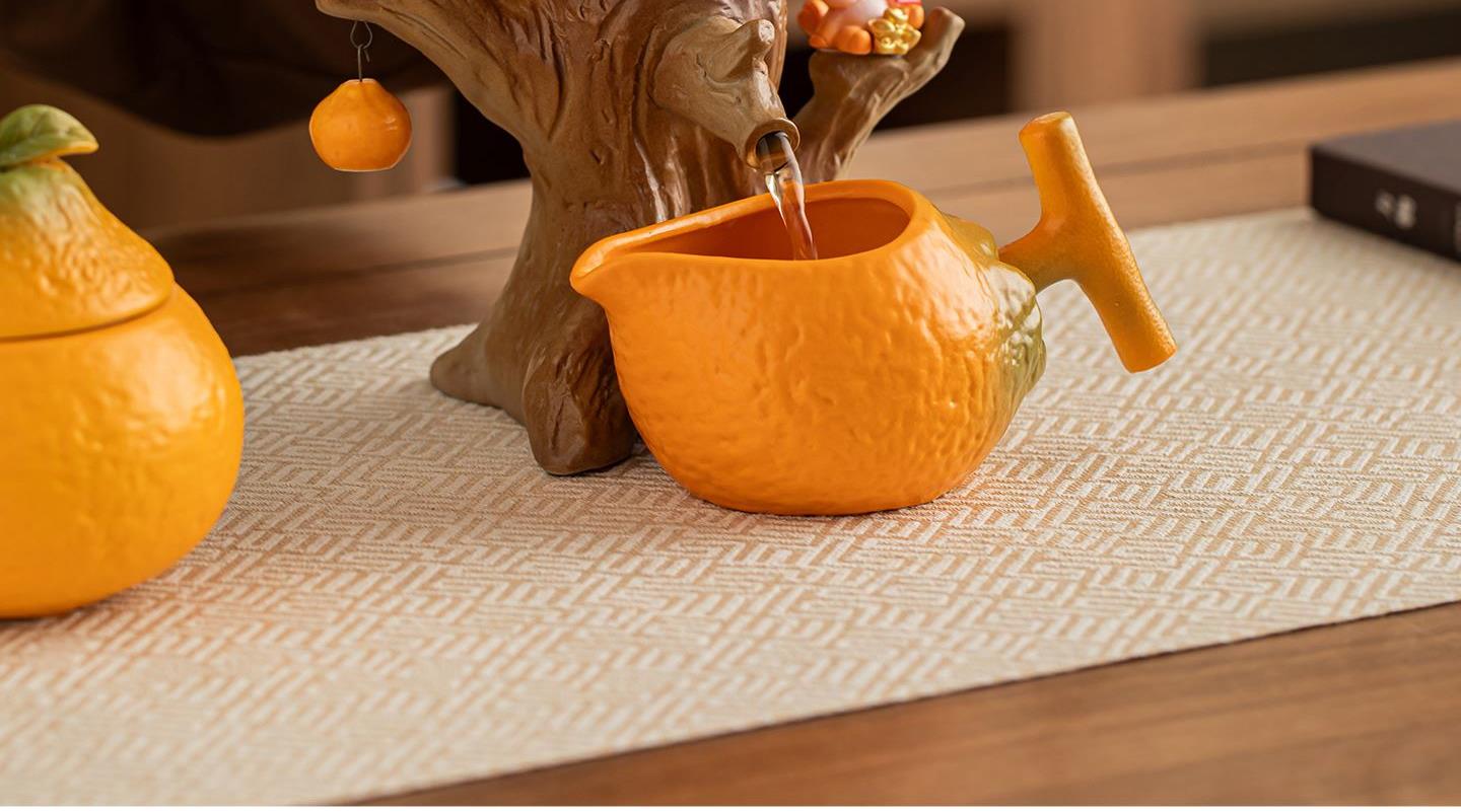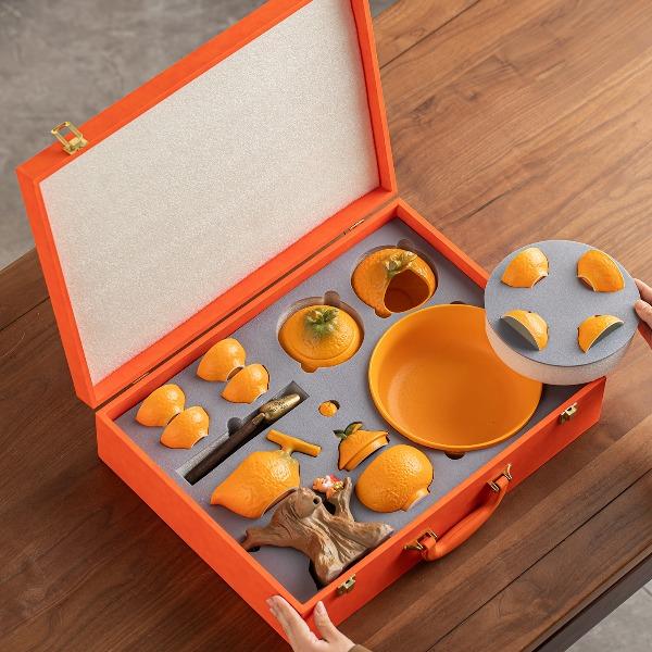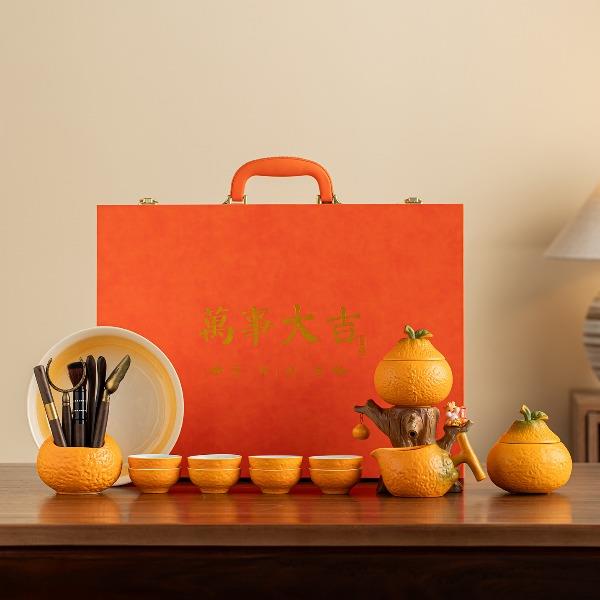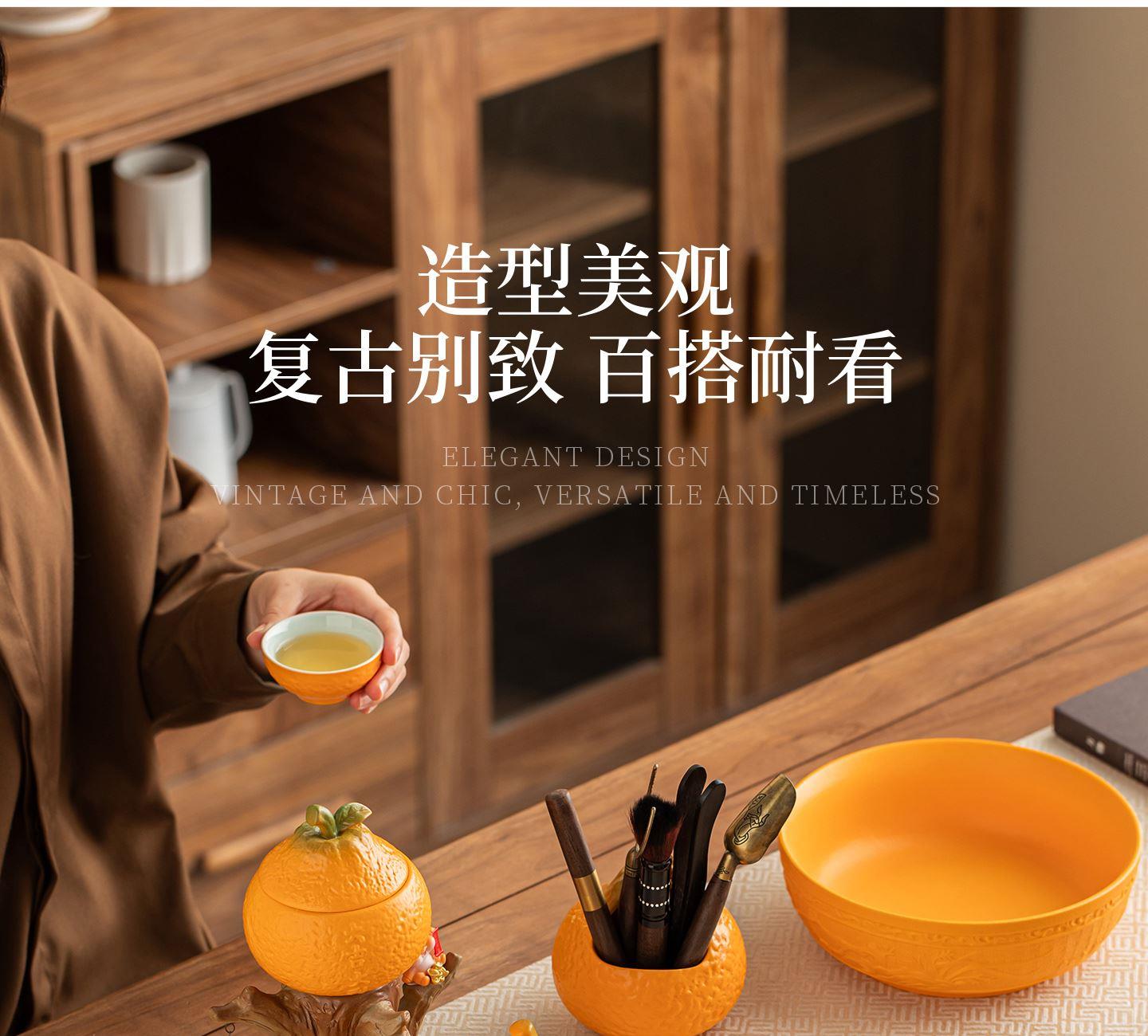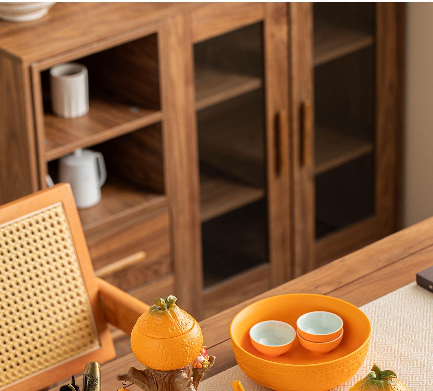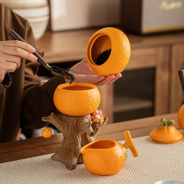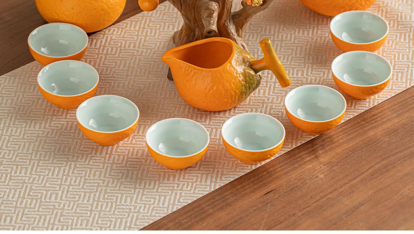 泡茶台:20.5*15.5厘米 220ml 品茗杯:6.5*3.2厘米50ml 茶海:14*7.5厘米200ml 茶叶罐:11*10厘米300ml 茶洗:20.5*7厘米1000ml 造型形象生动,寓意美好,天然矿物釉,高温烧制无铅镉 ,配置齐全,商务实用,搭配礼盒包装,自用赠礼两宜,用陶瓷的温润,调和生活的棱角。