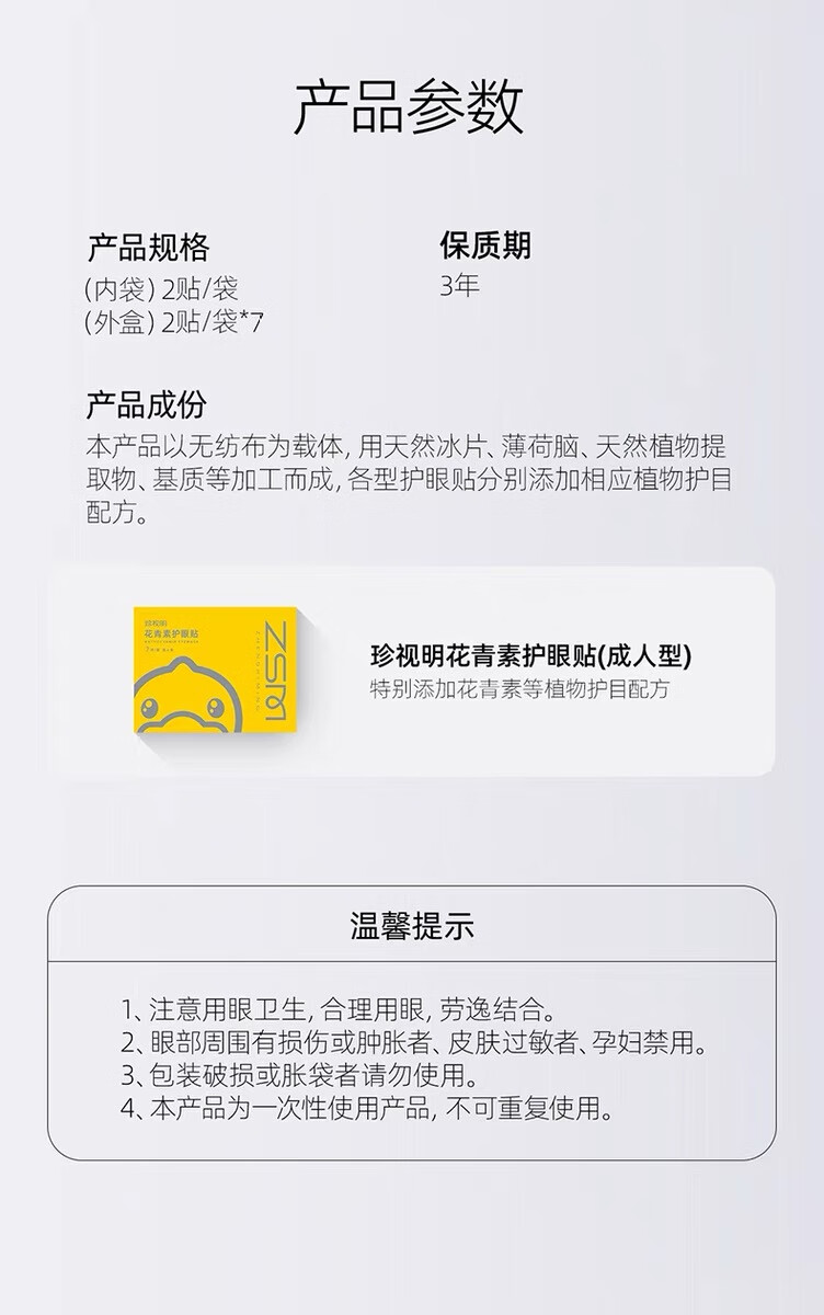 珍视明小黄鸭花青素眼贴(成人型)