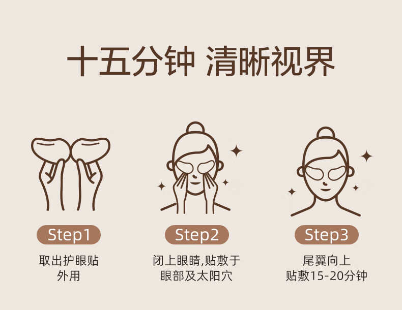 规格: 7对/盒 内袋2贴/袋(尾翼型) 本产品以无纺布为载体,用天然冰片、薄荷脑、天然植物提取物、基质等加工而成,特别添加花青素等植物护目配方。