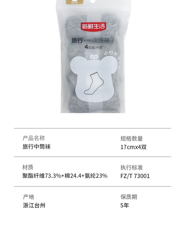 规格:17cm*4双 材质:聚酯纤维73.3%棉24.4%氨纶2.3%