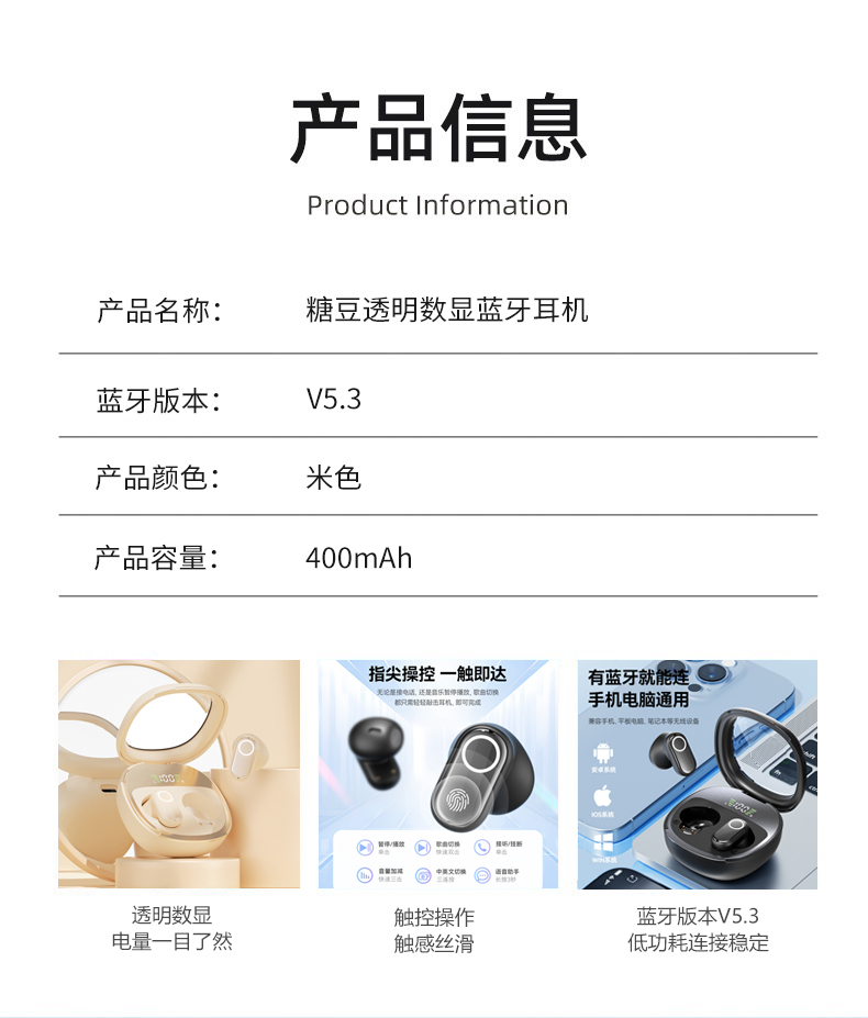 1、透明数显蓝牙耳机 5.3蓝牙方案,充电舱数显 50小时持久续航 触摸操控,丝滑触感 2、一万毫安自带四线移动电源 数字电量显示 内置四线 满足不同手机 3C符合民航局标准 3、66W铝合金超级快充一拖三伸缩数据线 兼容苹果15系列 五档伸缩调节 1.2米长度设计 铝合金面盖 三种充电接口满足各种手机