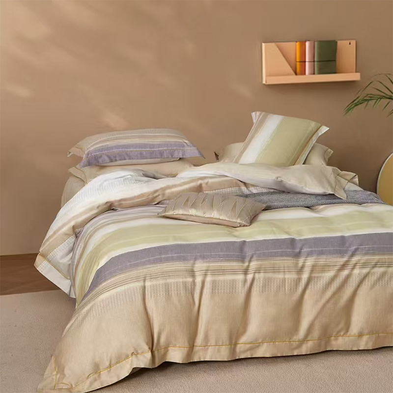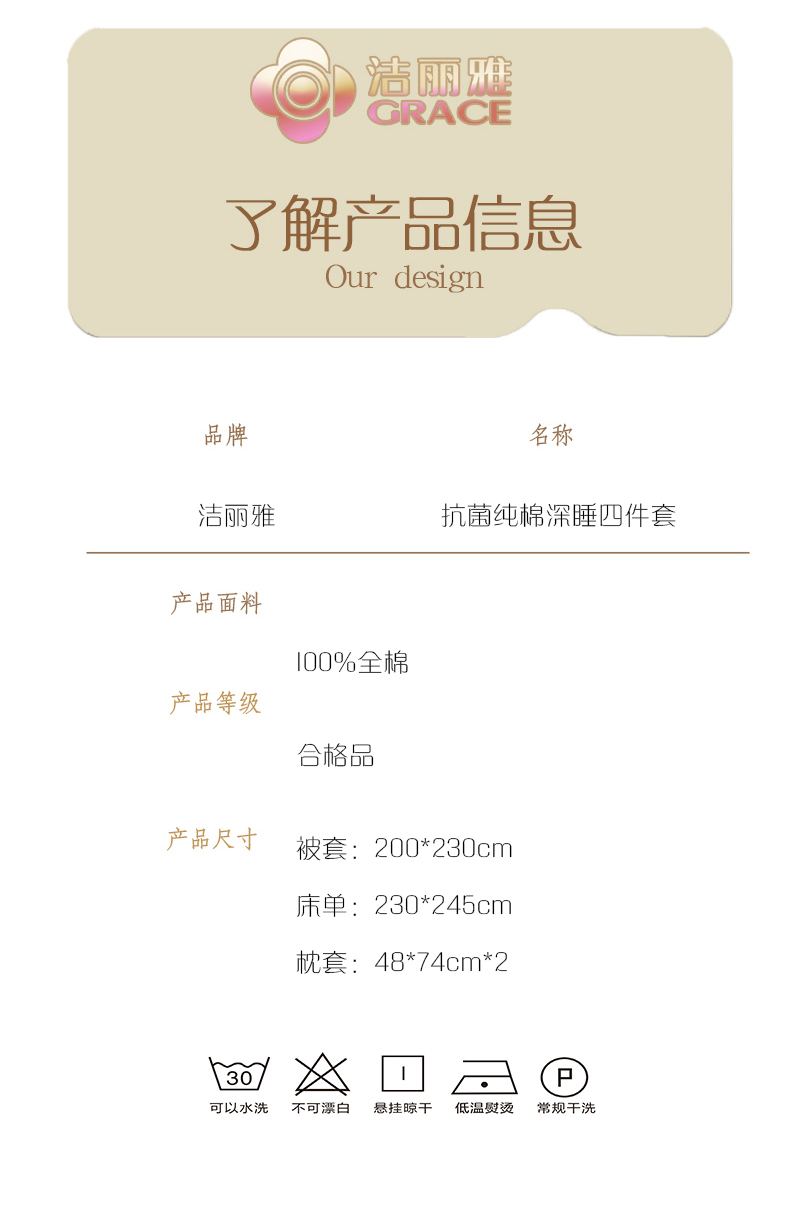 被套:200*230cm 床单:230*245cm 枕套:48*74cm*2 面料:全棉 执行标准:GB/T22796-2021 安全类别:GB18401-2010 B类 1.精选=优质全棉面料,以阳光般的天然柔润质感,打造会呼吸的睡眠体验。采用高支高密精梳工艺,触感柔软细腻却不失挺括,面料经纬交织间形成天然透气孔洞,睡眠时能自动调节湿度,保持肌肤整夜干爽舒适。