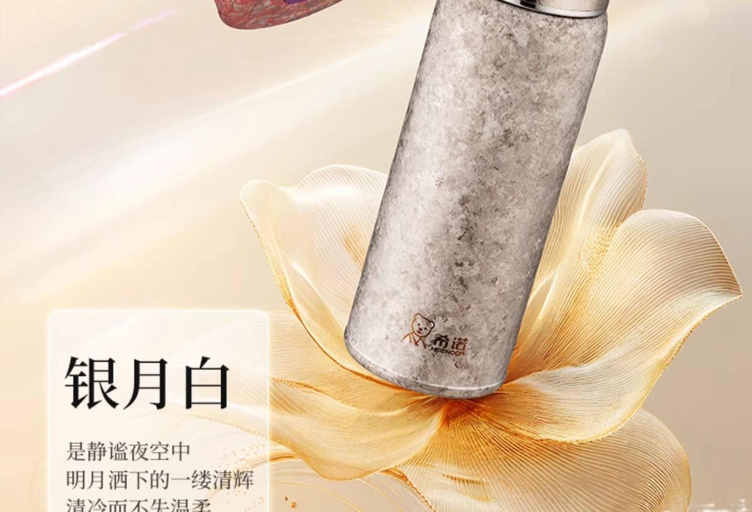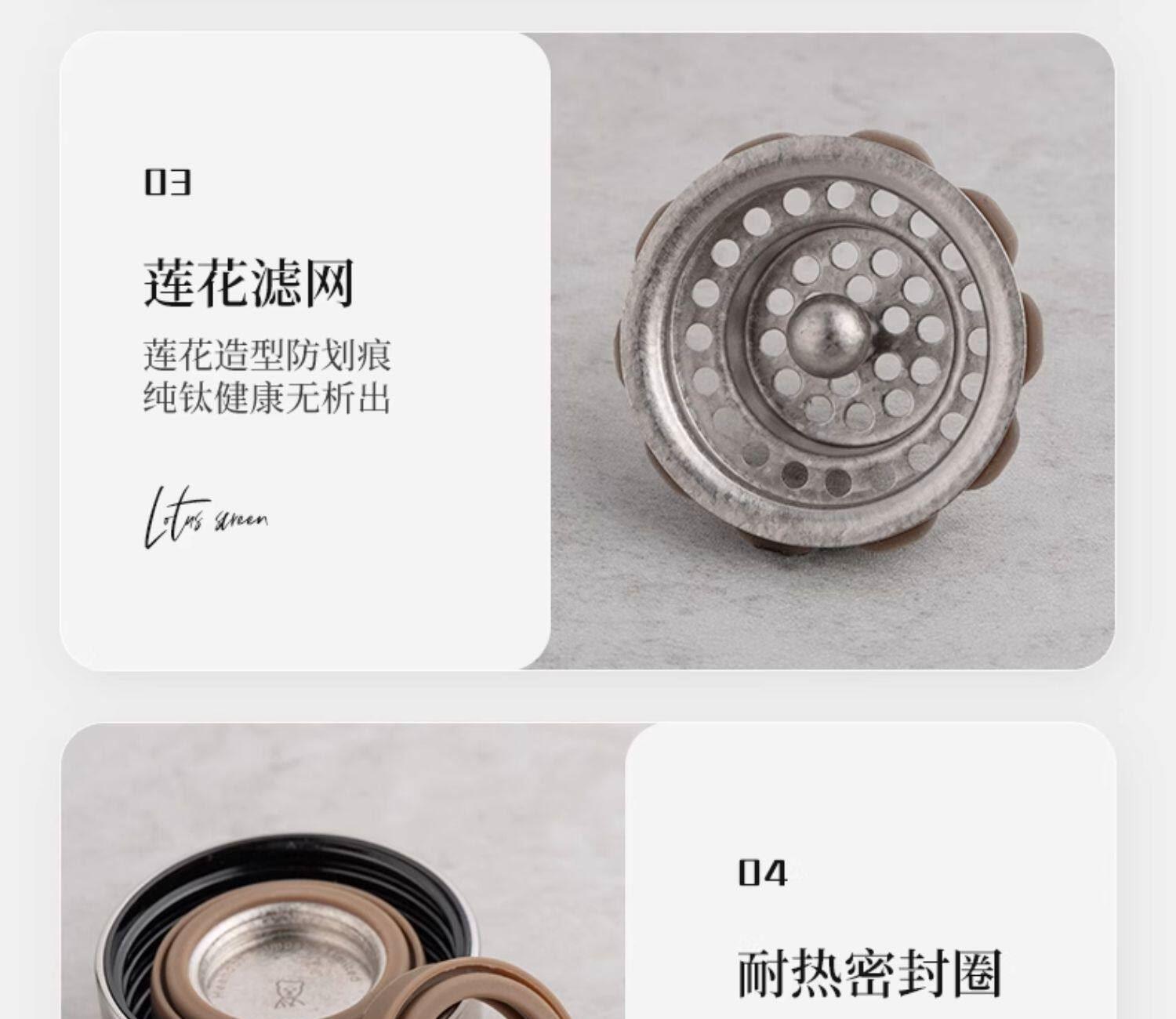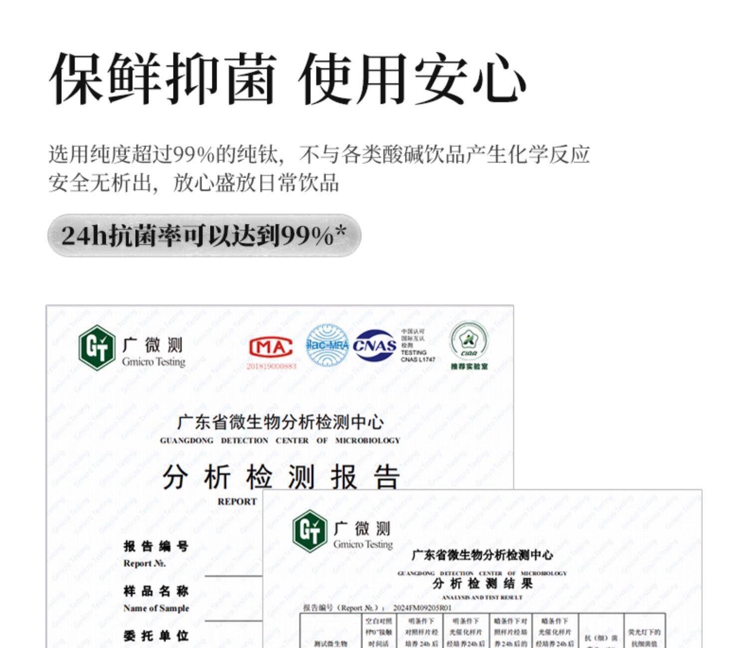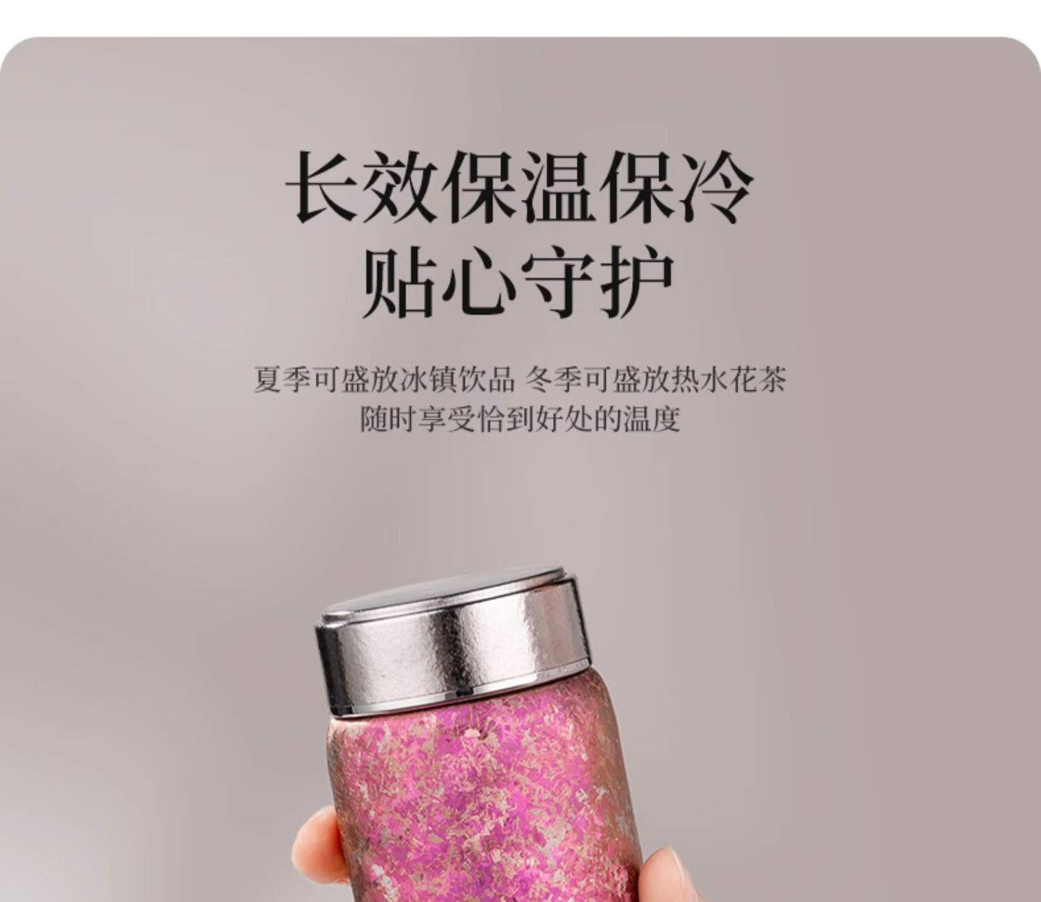 材质: 内胆-钛/杯身-钛 密封圈:硅橡胶 颜色:银月白/初荷粉 杯盖样式:旋盖 容量:215ml