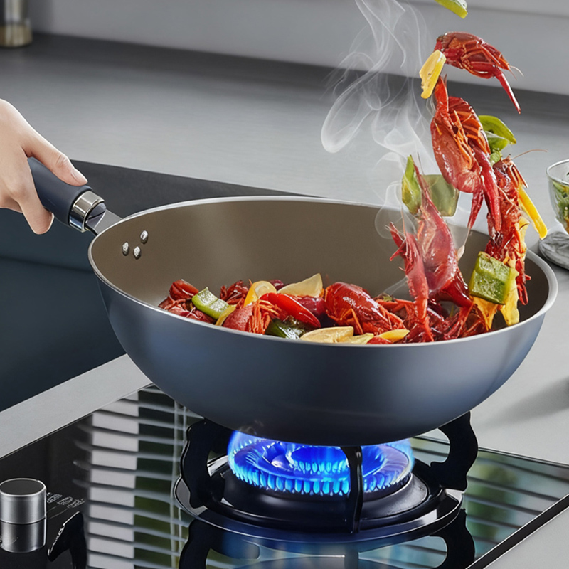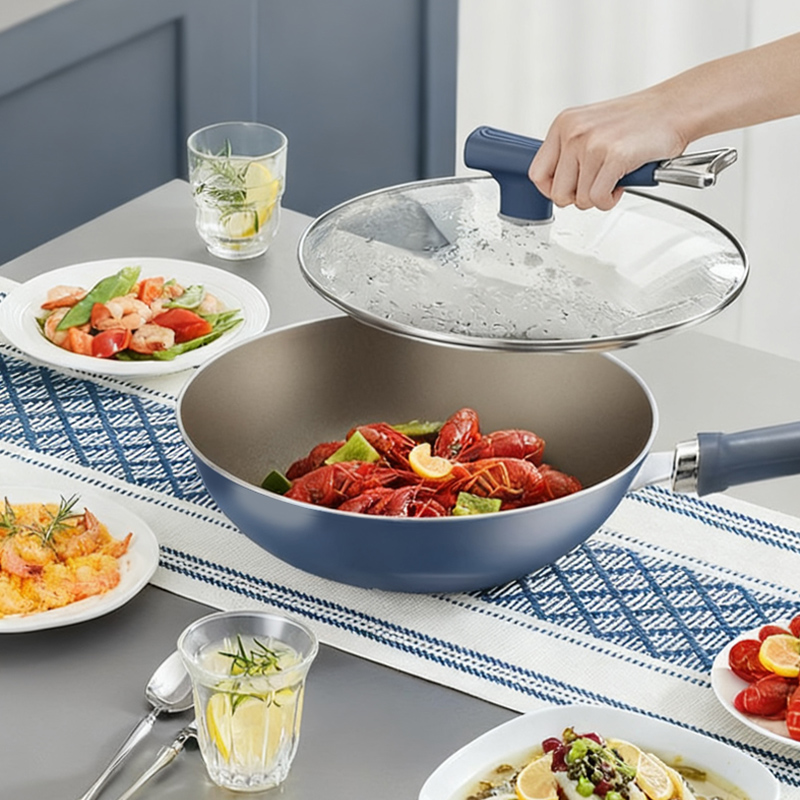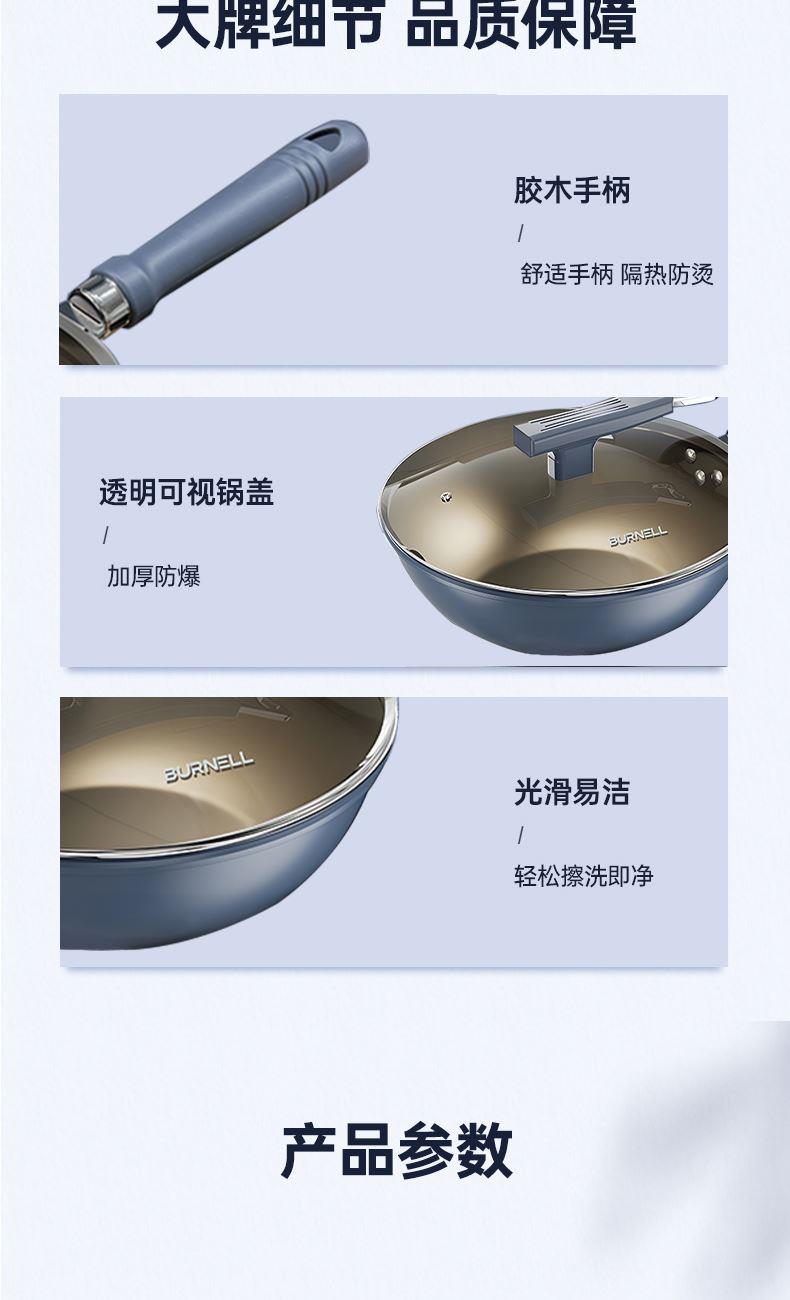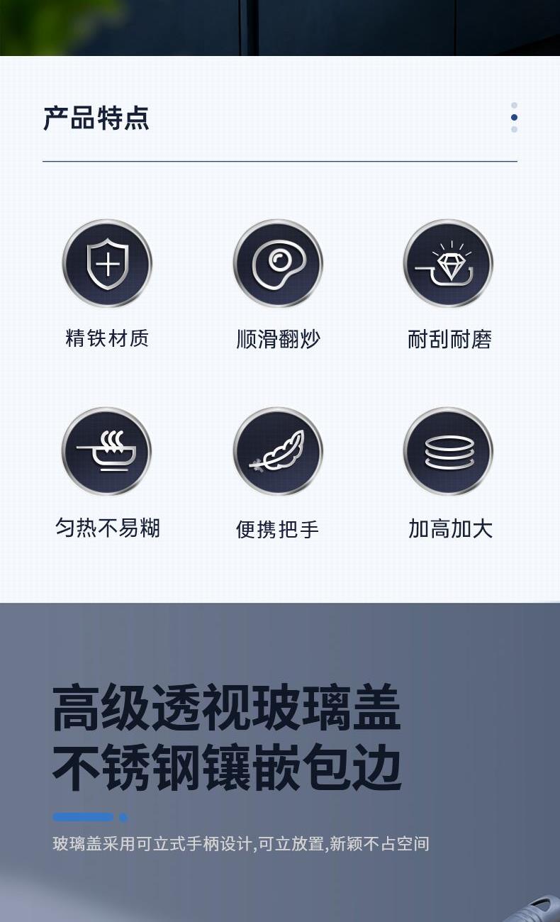 材 质:精铁 规 格:32cm 装 箱 数:8pcs/箱 包装尺寸:510*115*345mm 锅体采用精铁材质,独特工艺一次模压成型锅身。 不粘材料,省油少烟,光亮易洁,耐刮耐腐蚀。 玻璃盖采用可立式手柄设计,可立放置,新颖不占空间。 透视玻璃盖,不锈钢镶嵌包边,烹饪过程一目了然。 优质新型手柄,符合人体工程学设计,握感更舒适。