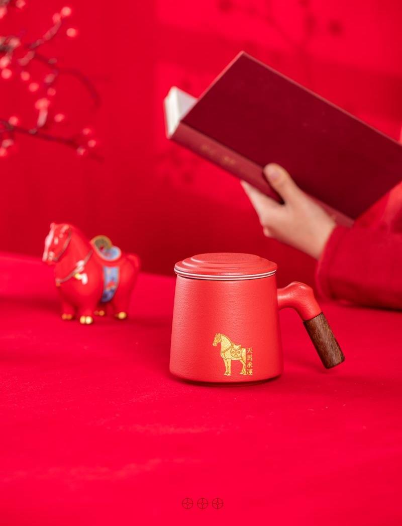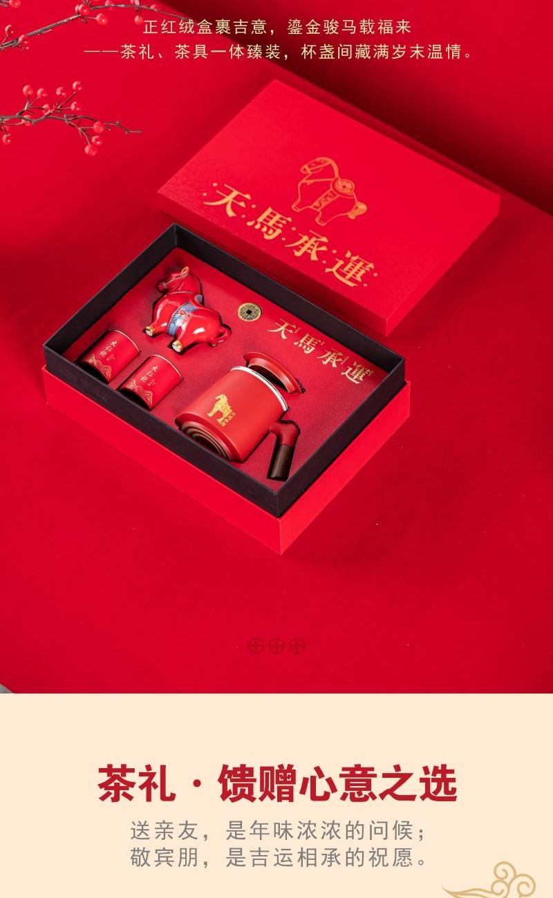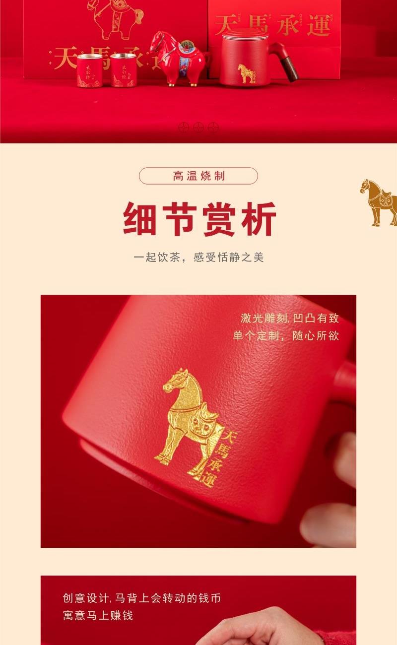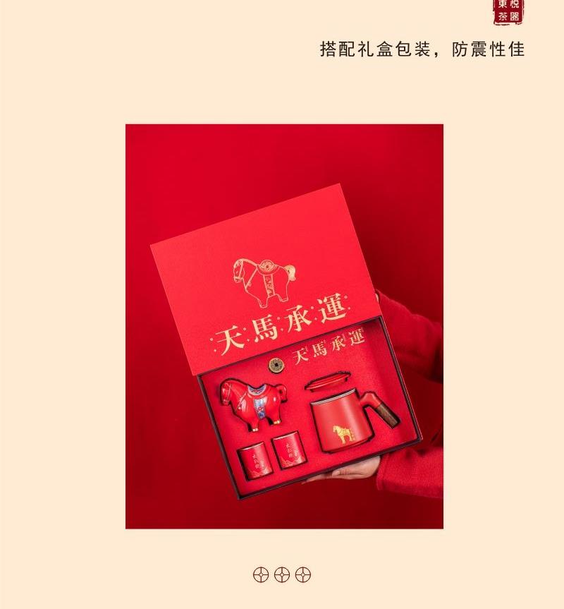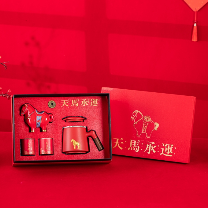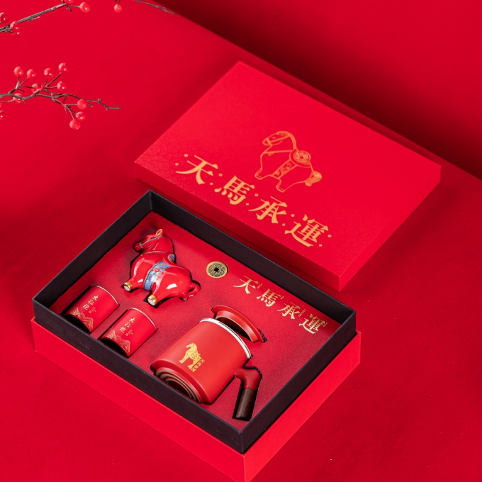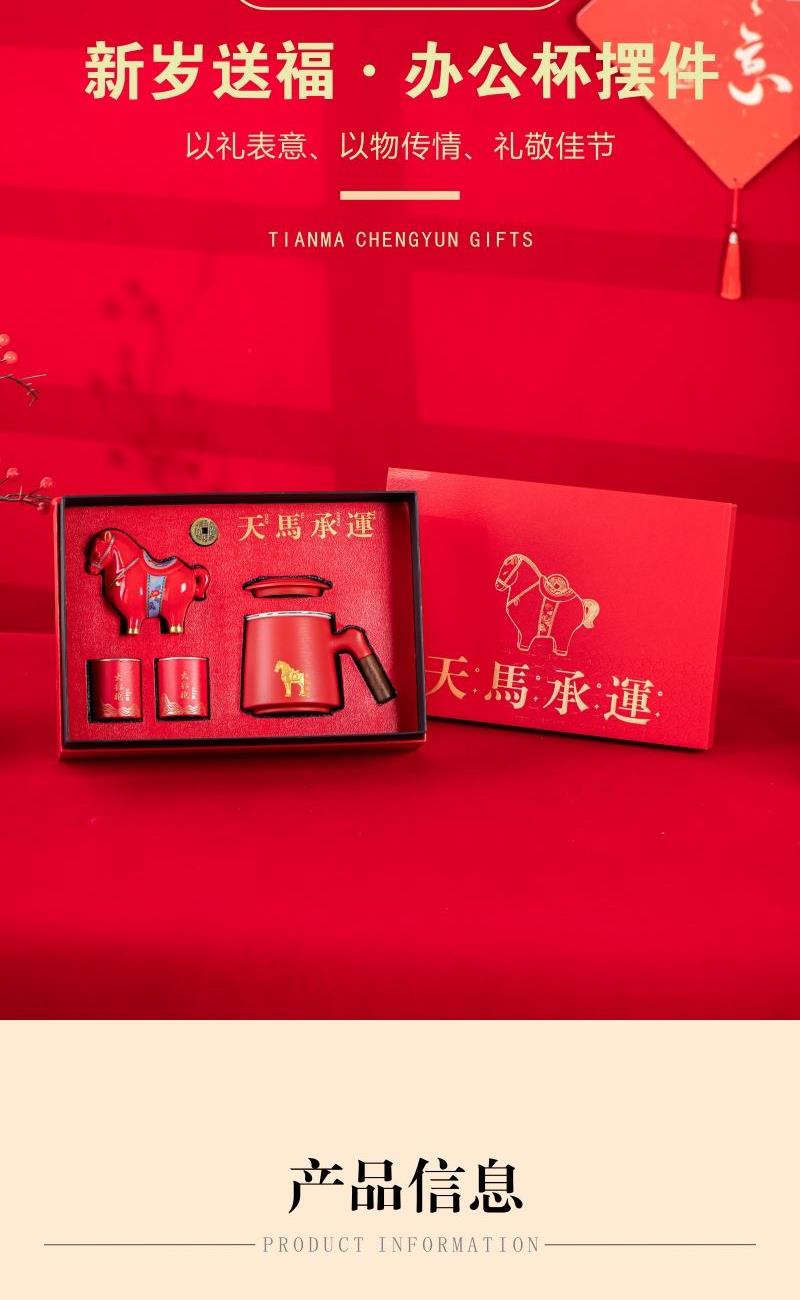 • 开门红年会茶具礼品天马承运办公杯摆件四件套