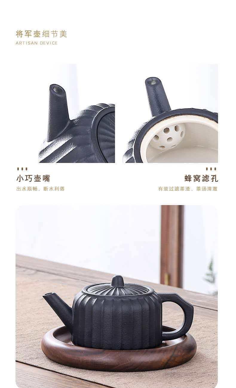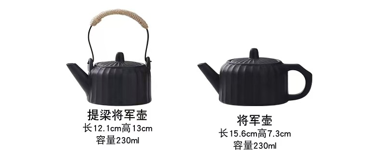 配制:1壶 6杯 1公道杯1茶托茶漏 茶道六君子 1礼盒 材质:粗陶 规格: 茶壶:11.7*9.5cm 杯: 6.3*3.3cm 公道杯:11.9*8.5cm 推荐说明:红、蓝、黑三色可选,多款壶型。亚光磨砂釉茶具,手感舒适。13头一应俱全,大气实用。