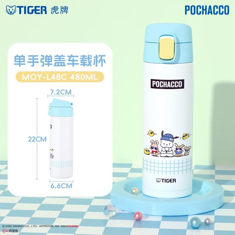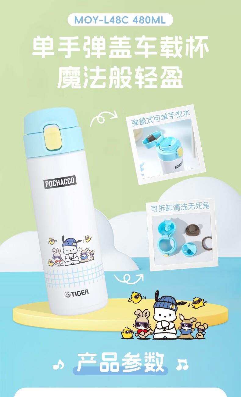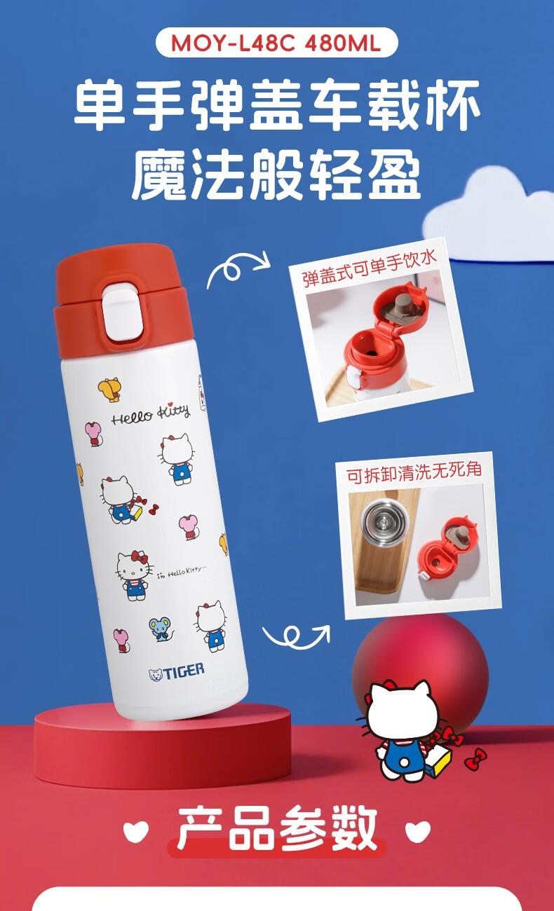 虎牌三丽鸥单手弹盖车载保温杯MOY-L48C480ml