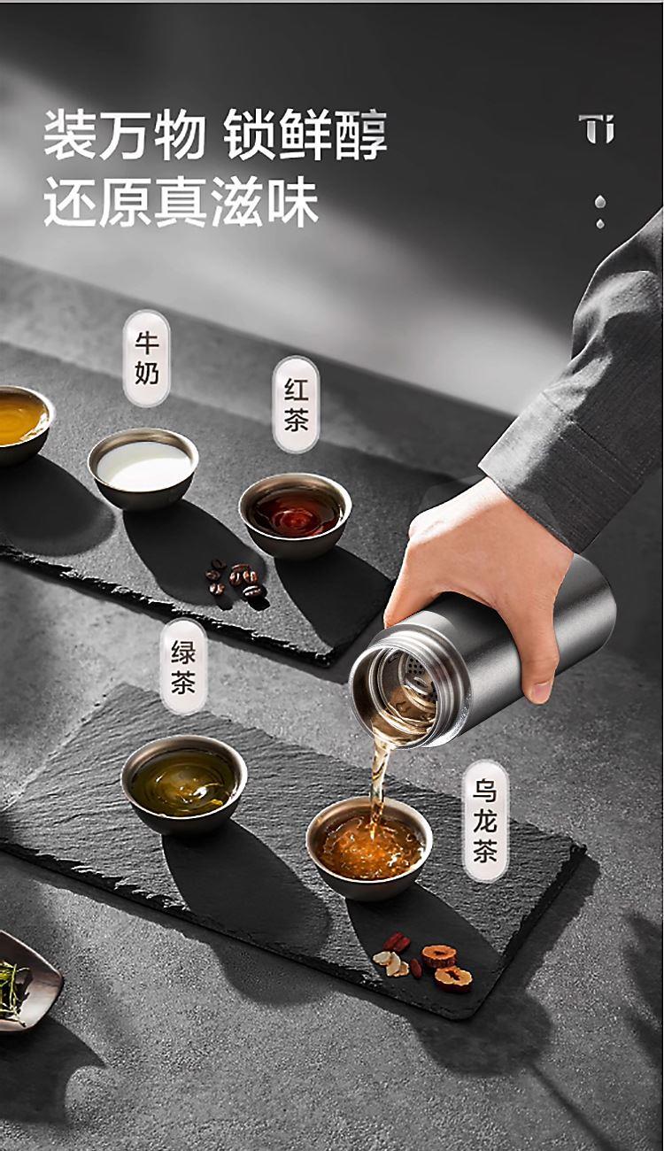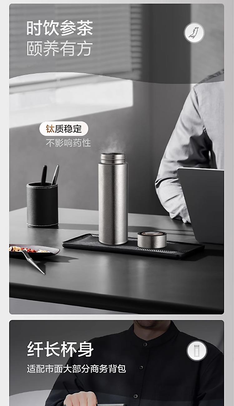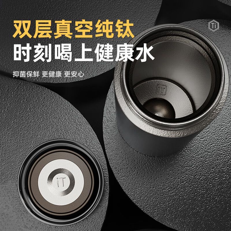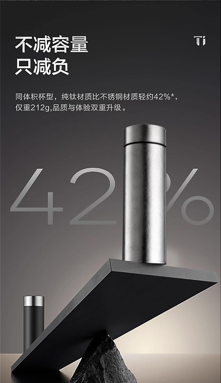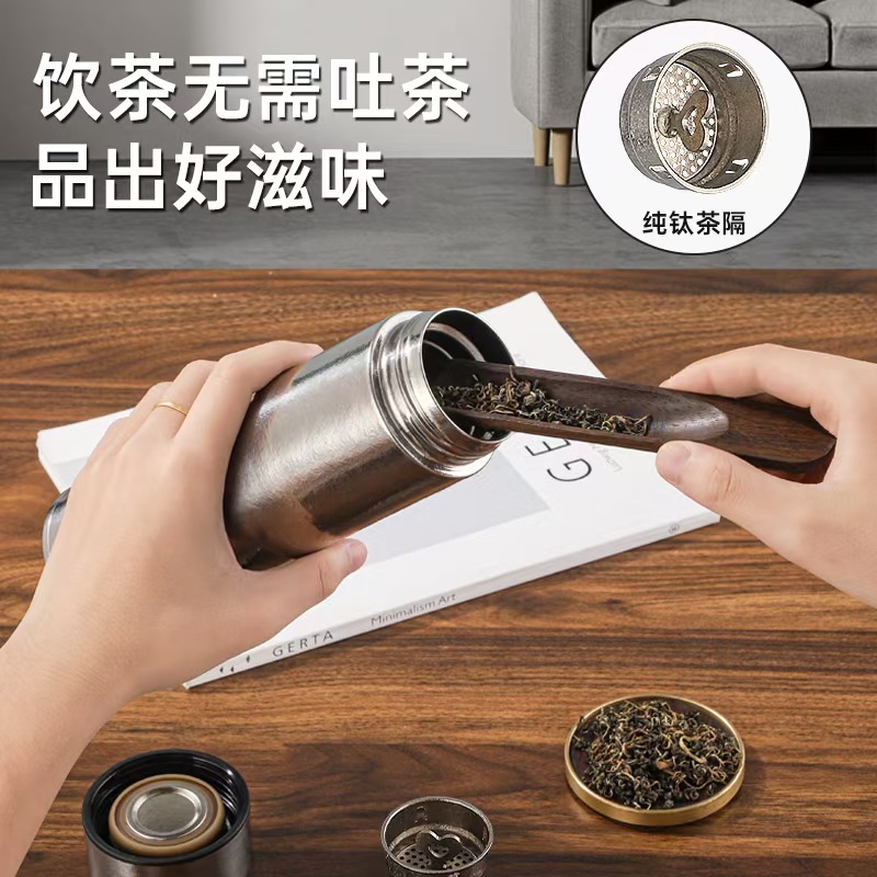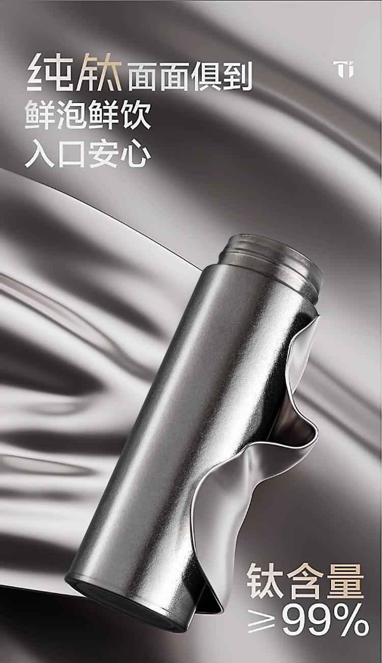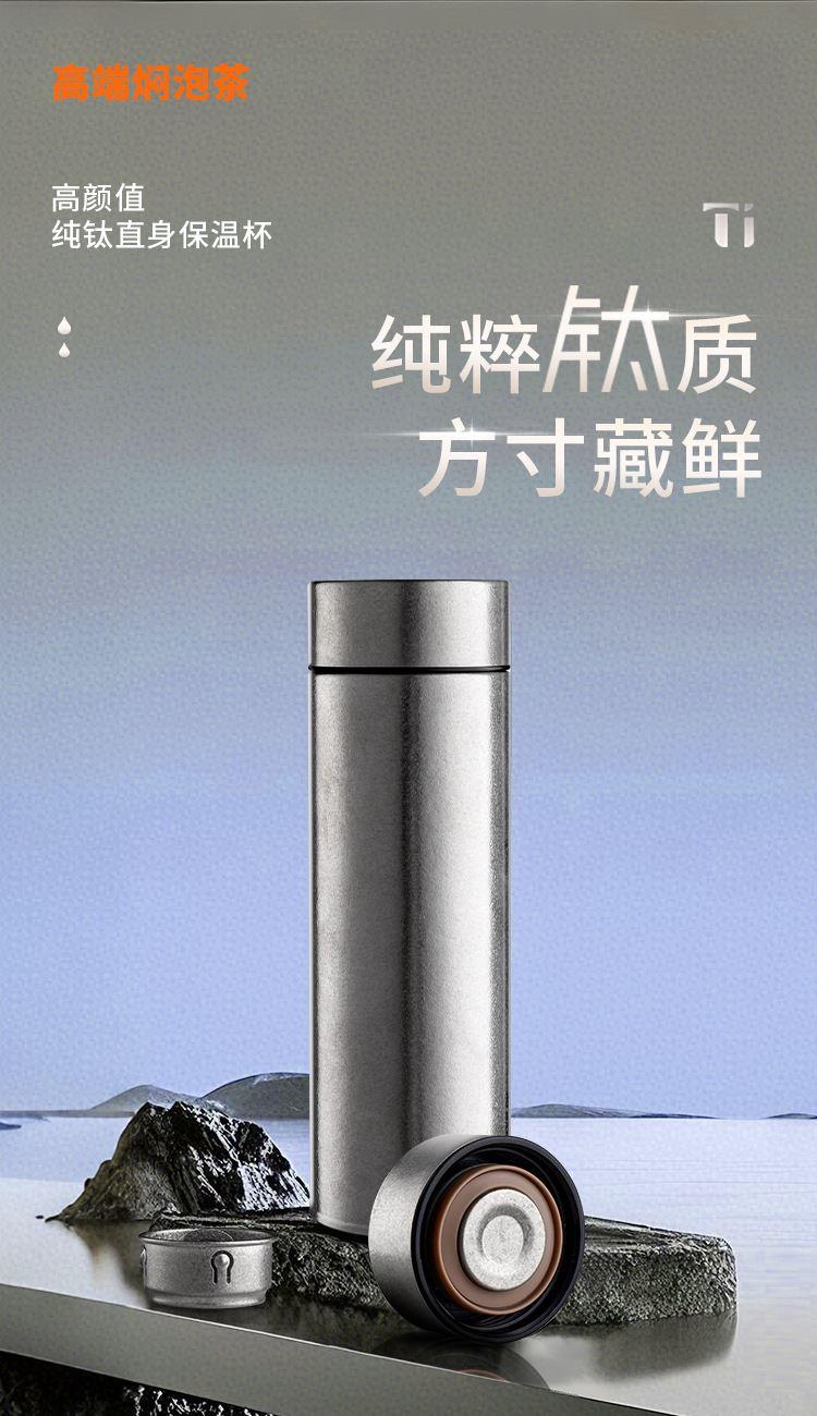 保温杯容量:480ML 材质:99.8%纯钛 颜色: 本色 包装:礼盒 品质:精品杯 •选用航天材质纯钛环保保新功能,高温轰烤结精工艺,无尾真空技术处理。 •杯口圆润光滑,精工细作,食品级PP塑料盖安全无异味。 •高温结精工艺,无任何漆面 ,雾面质感思腻尔温润。 •未成年人请在大人指导下或告知后使用。