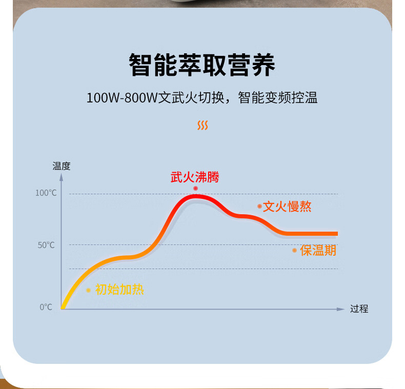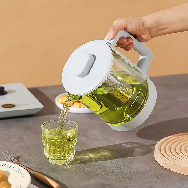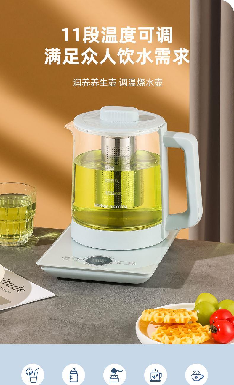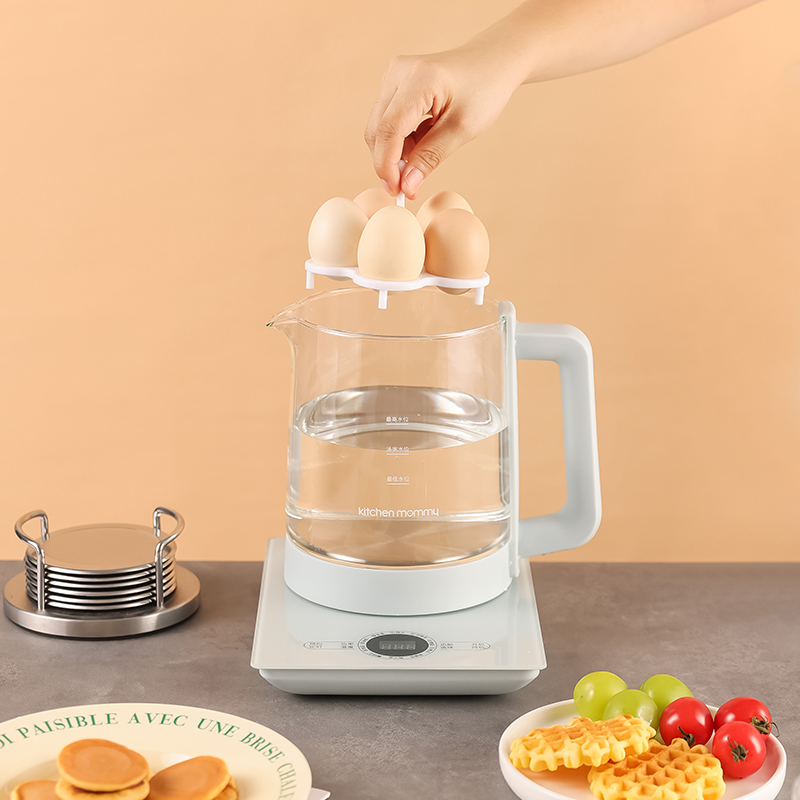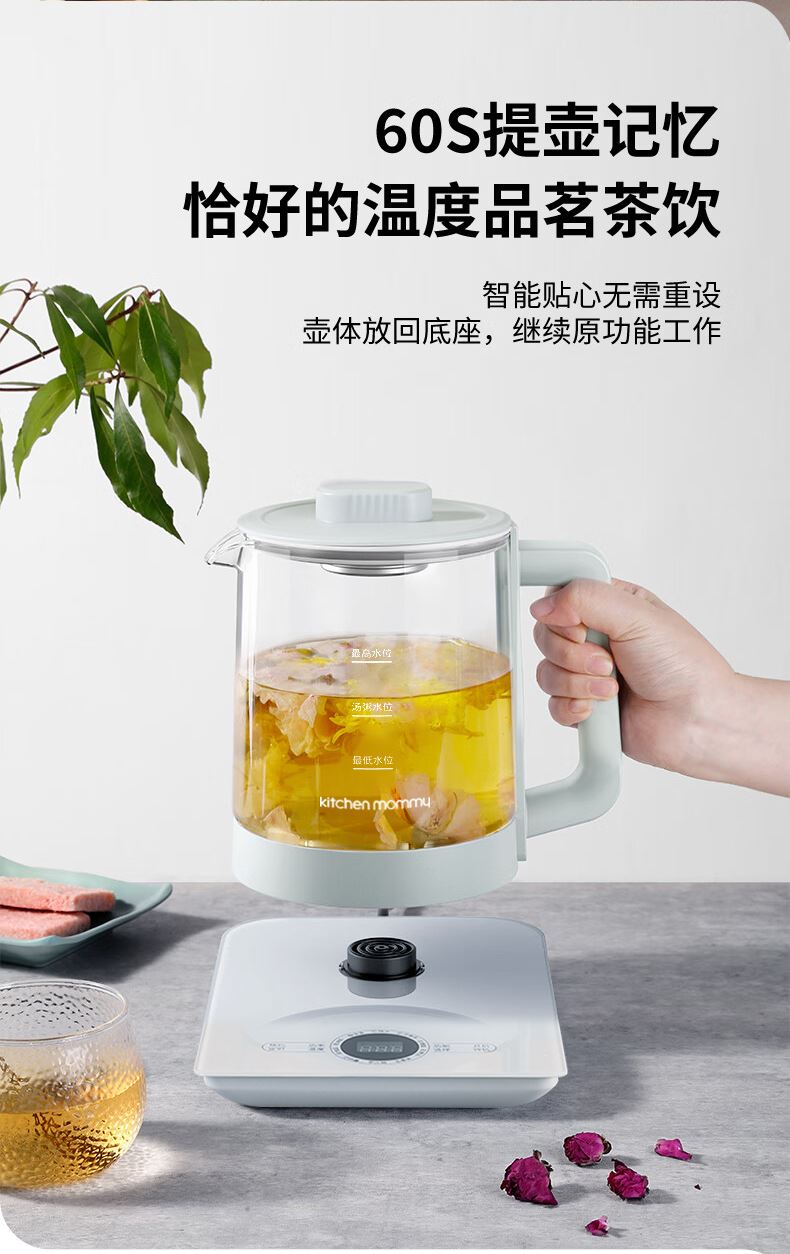 功率:800W 电压:220V 容量:1.5L 毛重:1.6Kg 材质:外壳全新PP+高硼硅玻璃+304不锈钢 彩盒包装尺寸:283*215*255 mm 外箱包装尺寸:590*450*535mm 推荐理由: 1、5环控温,静炖细煮,不溢出 2、钢化玻璃面板,极具档次感和易清洁 3、高硼硅玻璃壶身,骤热骤冷不破裂 4、新增煮粥 煲汤 药膳且不溢出,功能强大 5、1.5升大容量,外观造型经典,赏心悦目 6、触控式按键,轻松控制