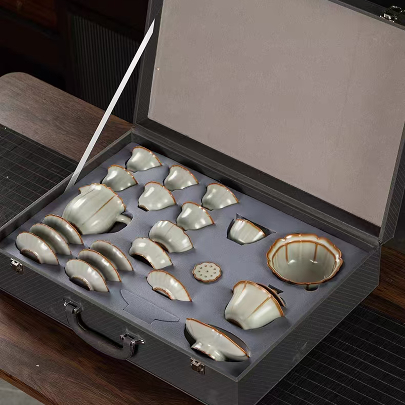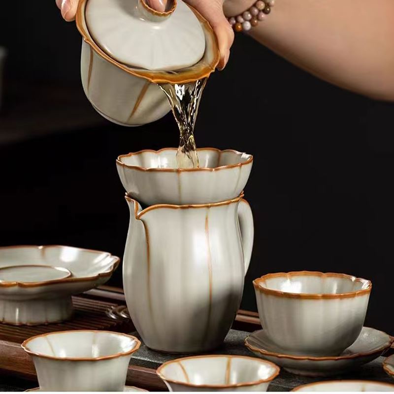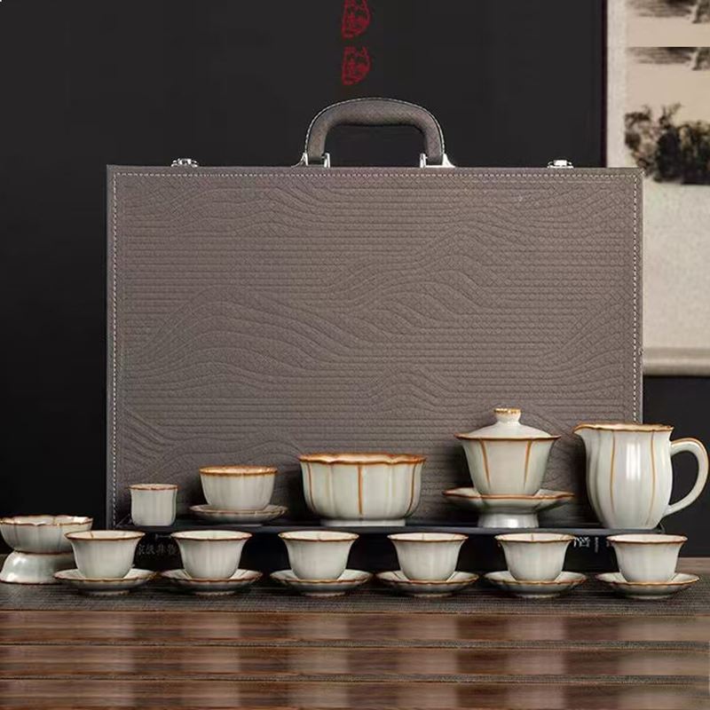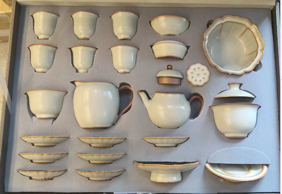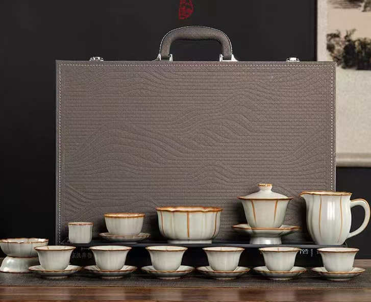 鹏翼22头亚黄汝瓷茶具